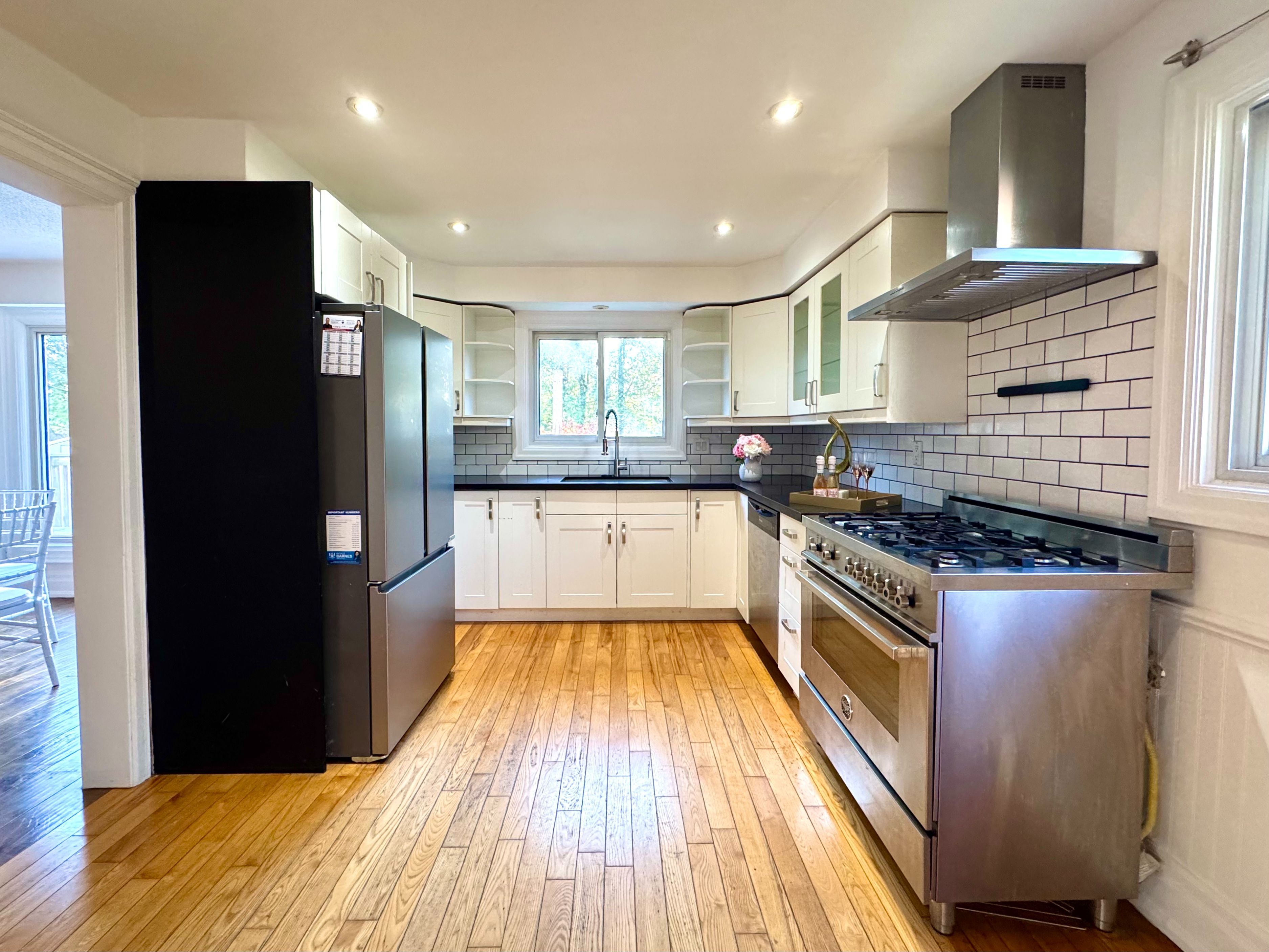 Embrace the ultimate lakeside living lifestyle in this 4 beds + 3 baths home where the tranquil lakefront awaits at the end of your street!! Premium 65x116 ft lot! W/ss upgraded appliances & quartz counters. Open concept fr / lr with large windows, enticing gas fp & garden door w/o to private 24x12 deck and beautifully landscaped front and back offers a seamless blend of indoor/outdoor living spaces perfect for year round enjoyment!! Sun all day long with shady spots to keep cool!!. Stunning dr with bay window. Amazing open staircase to 2nd floor. Main bedroom has 3pc ensuite & w/i closet. Large secondary bdrms. Convenient main floor laundry w/2pc bath, dir garage entry, sep full size back garage dr, inviting open concept family room w/gas fireplace, ideal for creating memories & relaxing after a long day!! Finished open concept bsmt has extra large rec room w/wet bar, lots of pot lights . 5th bedroom / office in bsmt. Don't miss out on this incredible opportunity to own a well built home in a sought after location*steps to waterfront(7th house up from lake) with miles of waterfront walking/bike paths, rotary park, splash pad, beach ,boat, launch, parks, schools, transit all in walking distance. Whole house freshly painted.