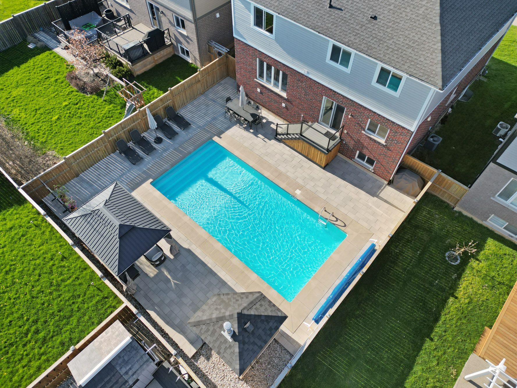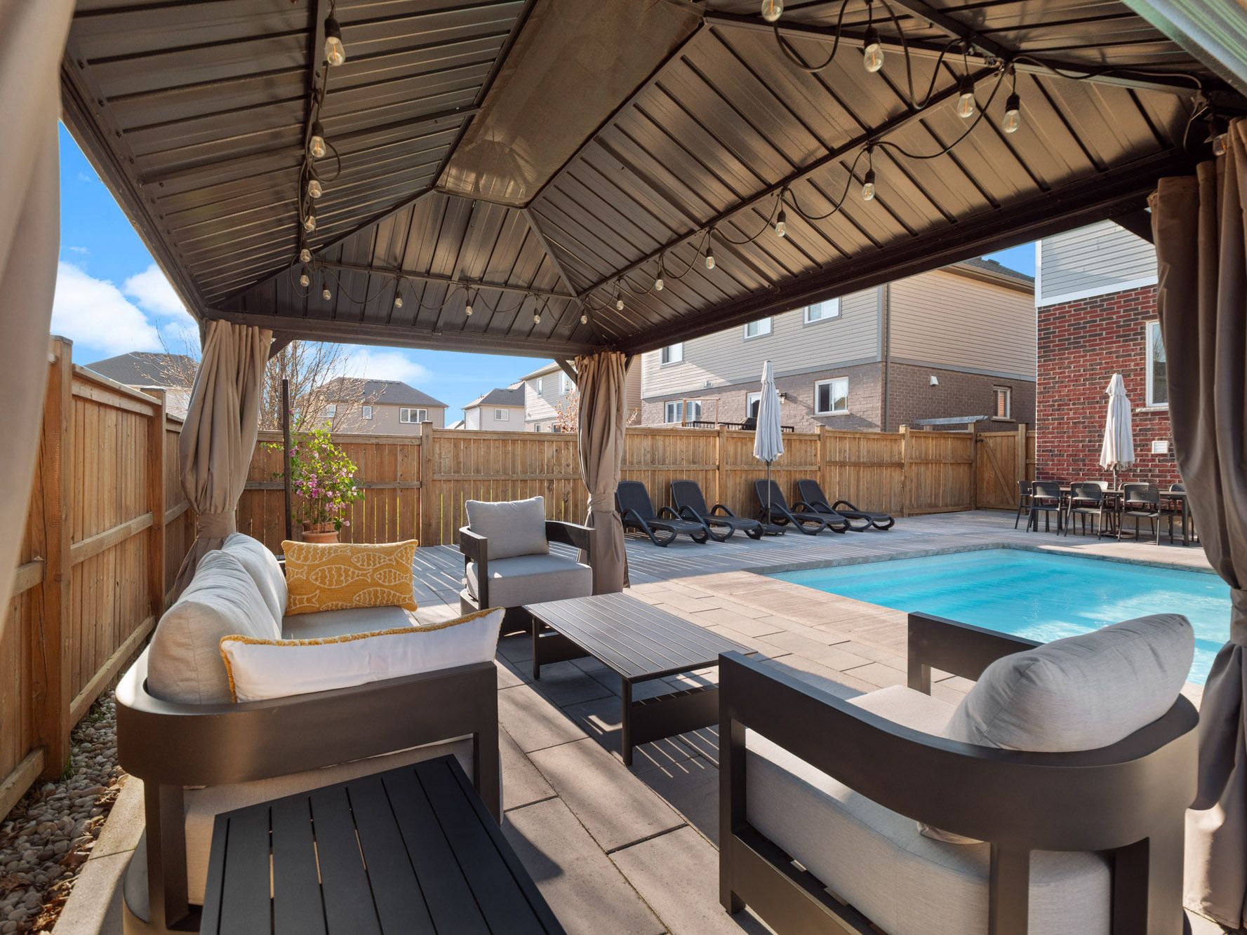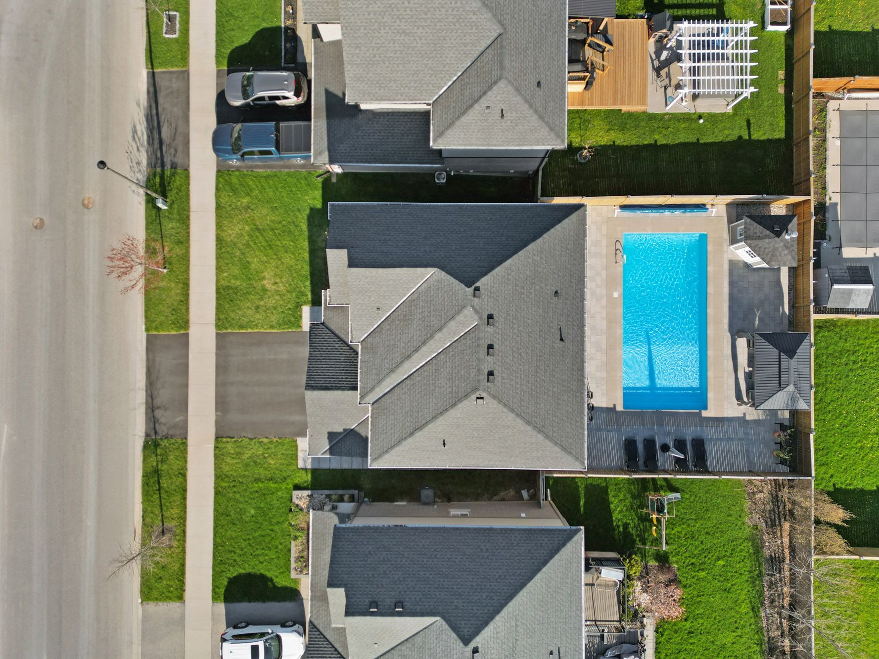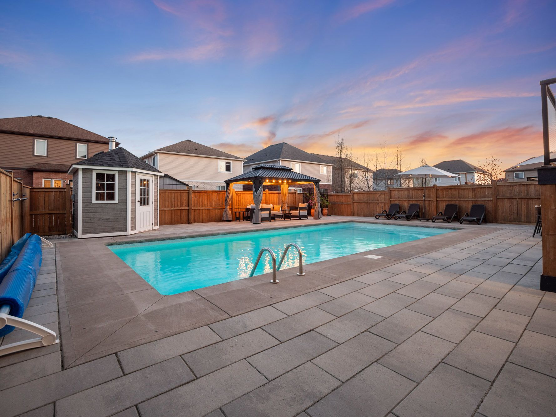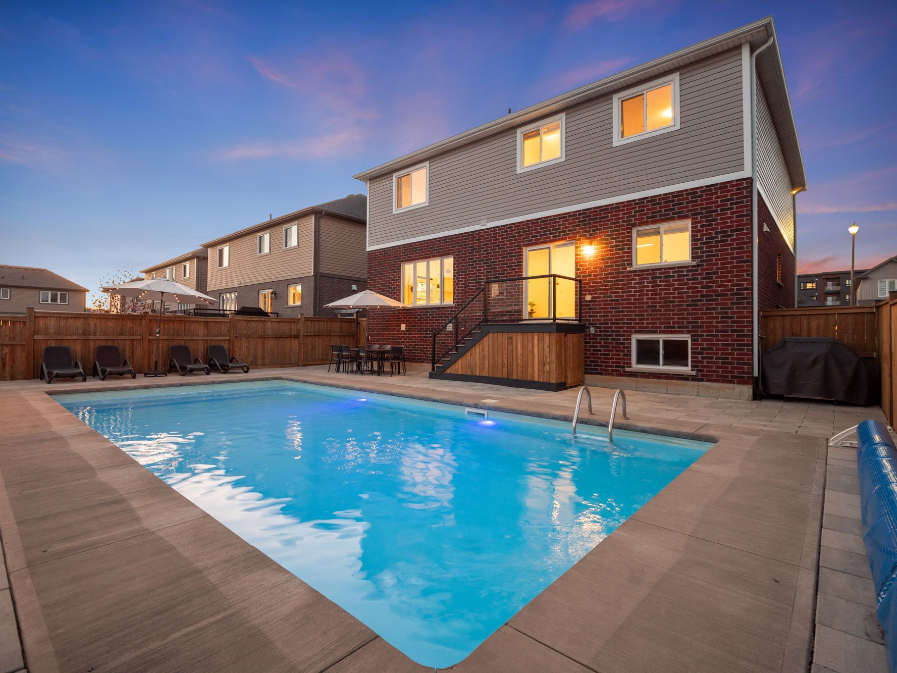 Originally built in 2018, this nearly 2,500 sq. Ft., four-bedroom, two-storey home has been thoughtfully and fully renovated in recent years. White oak engineered hardwood flows through the living areas, which, paired with the neutral colour palette, creates a continuity of design that makes this an easy home to move into. The custom kitchen, with quartz counters, a waterfall island, high-end appliances, and quartz backsplash has an adjacent butler's pantry which leads through to the formal dining room. The living room, complete with linear fireplace and built-in shelving, is full of natural light. Directly inside from the double garage, you'll find a laundry room you'll actually look forward to being in! With the aid of a designer, it was completely renovated in 2025 with quartz counters, folding counter, ample storage, and a cubby for coats. A powder room with a custom marble sink rounds out this level. Upstairs, you'll find four bedrooms, each spacious enough for a king-sized suite. The primary suite spans over 400 sq. Ft. And includes double walk-in closets and a sumptuous ensuite with floor-to-ceiling porcelain tiles, quartz-topped vanity, a curbless tiled shower, and a freestanding soaker tub. The other three bedrooms share yet another stylish bathroom, this one a four-piece with tiled tub surround, a tempered glass divider, and a tiled accent wall behind the quart-topped vanity. All of this and we haven't even mentioned the fabulous backyard! Professionally installed hardscape surrounds a 16' x 34' heated, saltwater pool with full-width stairs. You'll find a custom pool shed and a 13' x 10' gazebo, equipped with electrical supply. As you pull up, this home gives off strong curb appeal, with the brick front, soffit accent lighting, and landscaped garden. The pride of ownership is clearly evident throughout. We think you'll love what you see! Be sure to check out the video tour as well.