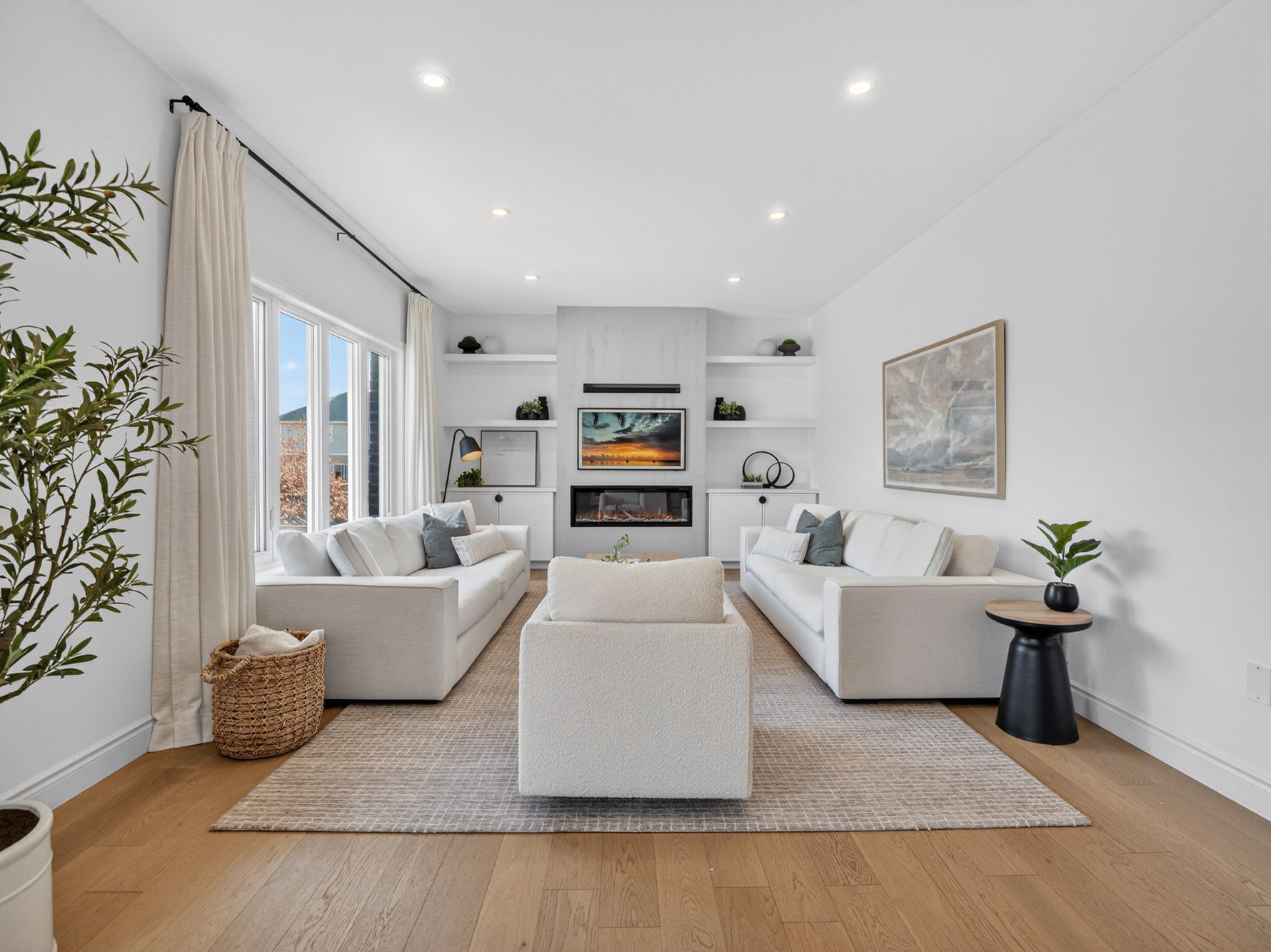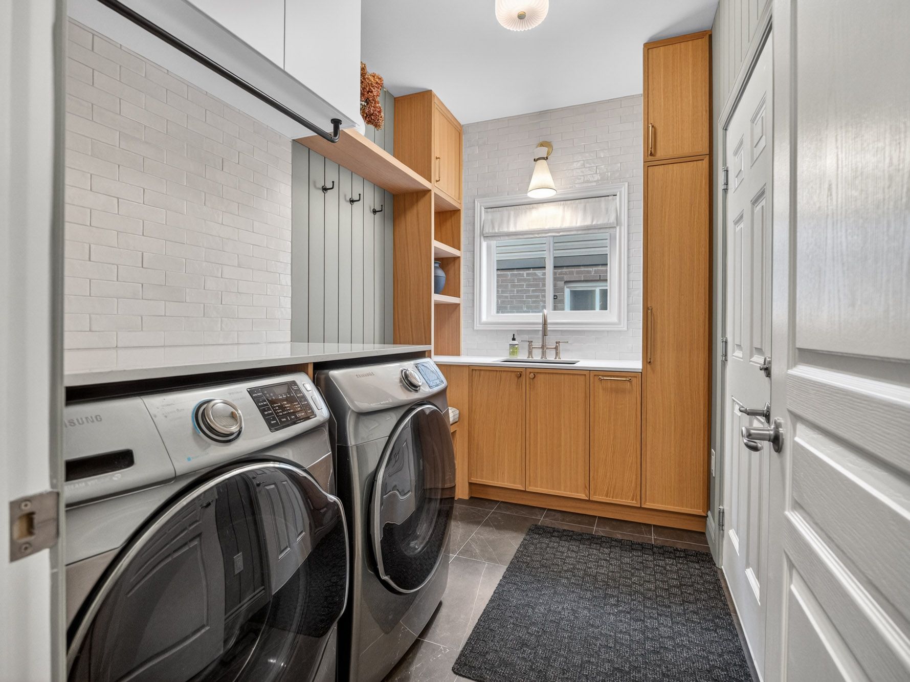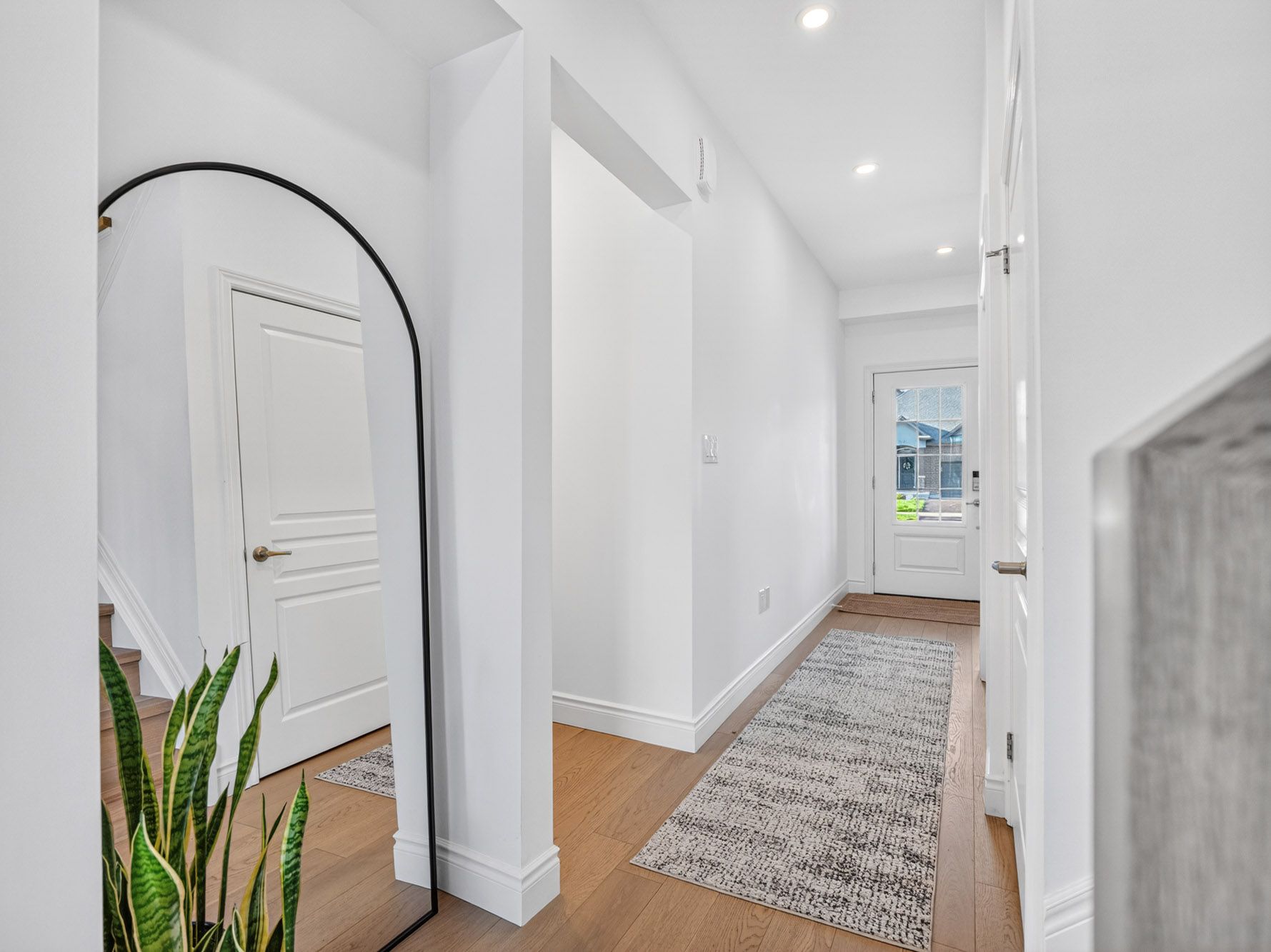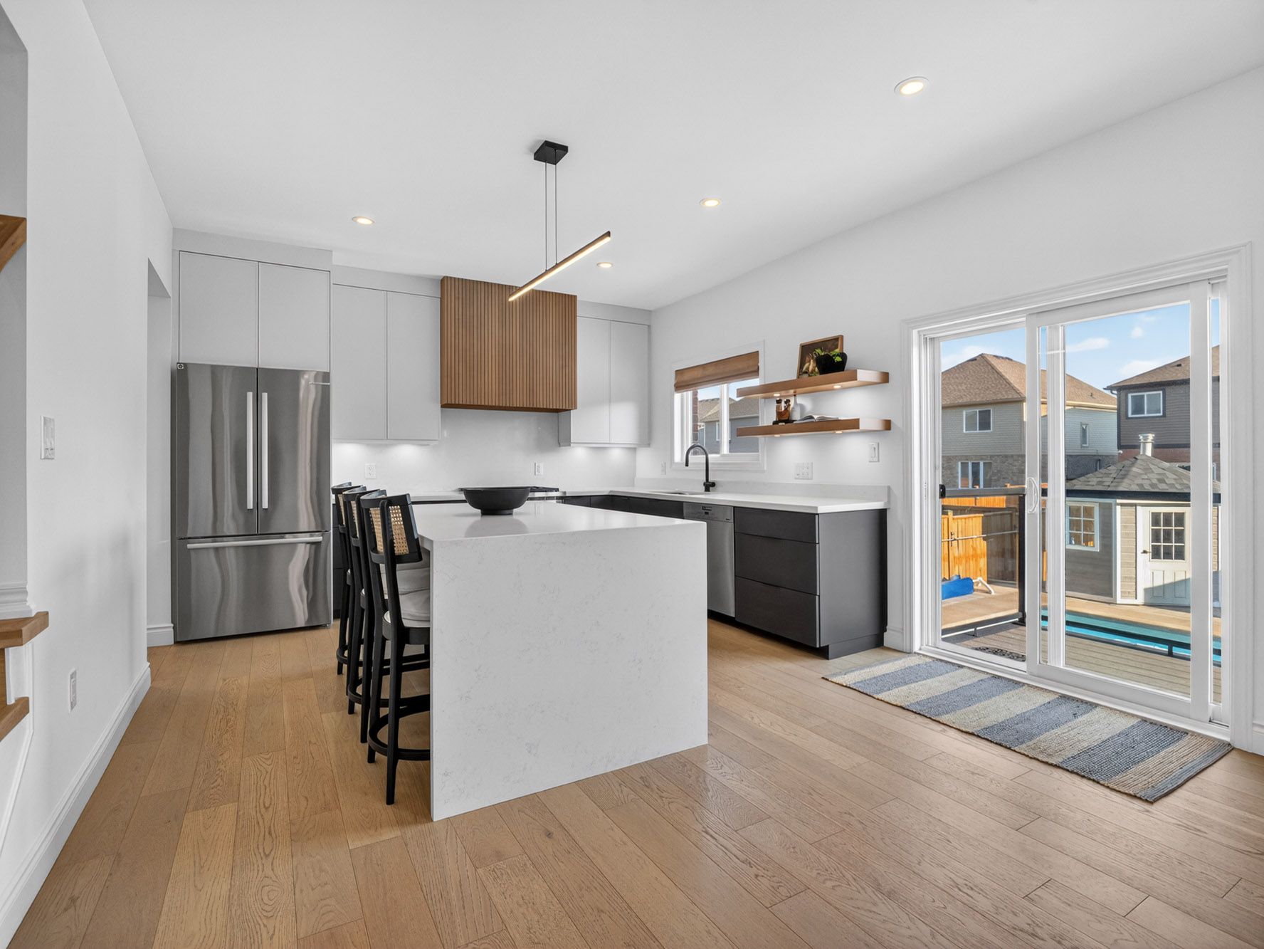 Originally built in 2018, this nearly 2,500 sq. Ft., four-bedroom, two-storey home has been thoughtfully and fully renovated in recent years. White oak engineered hardwood flows through the living areas, which, paired with the neutral colour palette, creates a continuity of design that makes this an easy home to move into. The custom kitchen, with quartz counters, a waterfall island, high-end appliances, and quartz backsplash has an adjacent butler's pantry which leads through to the formal dining room. The living room, complete with linear fireplace and built-in shelving, is full of natural light. Directly inside from the double garage, you'll find a laundry room you'll actually look forward to being in! With the aid of a designer, it was completely renovated in 2025 with quartz counters, folding counter, ample storage, and a cubby for coats. A powder room with a custom marble sink rounds out this level. Upstairs, you'll find four bedrooms, each spacious enough for a king-sized suite. The primary suite spans over 400 sq. Ft. And includes double walk-in closets and a sumptuous ensuite with floor-to-ceiling porcelain tiles, quartz-topped vanity, a curbless tiled shower, and a freestanding soaker tub. The other three bedrooms share yet another stylish bathroom, this one a four-piece with tiled tub surround, a tempered glass divider, and a tiled accent wall behind the quart-topped vanity. All of this and we haven't even mentioned the fabulous backyard! Professionally installed hardscape surrounds a 16' x 34' heated, saltwater pool with full-width stairs. You'll find a custom pool shed and a 13' x 10' gazebo, equipped with electrical supply. As you pull up, this home gives off strong curb appeal, with the brick front, soffit accent lighting, and landscaped garden. The pride of ownership is clearly evident throughout. We think you'll love what you see! Be sure to check out the video tour as well.