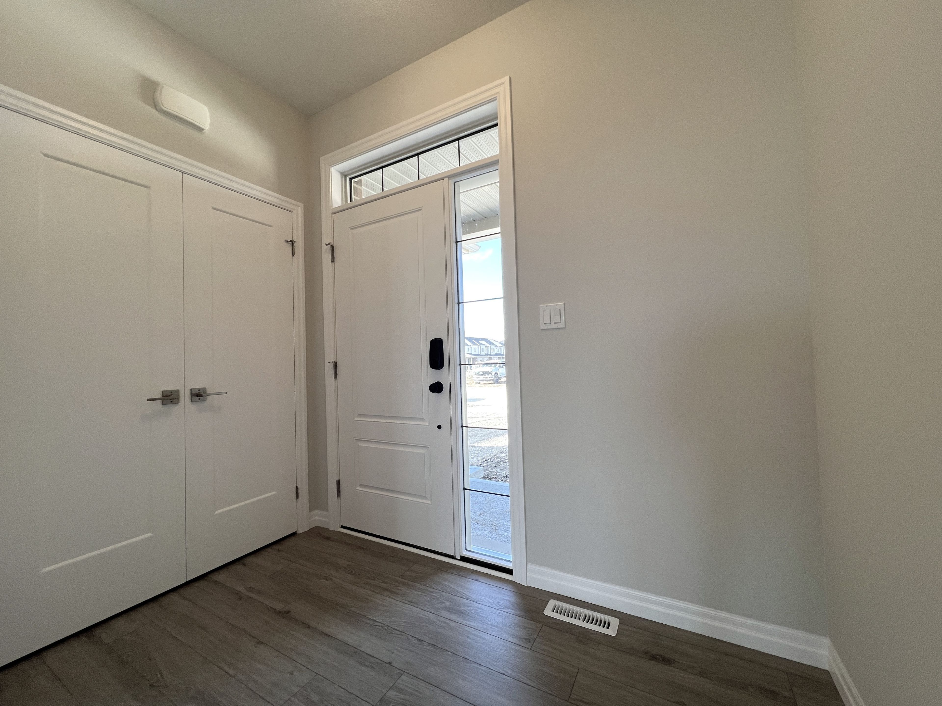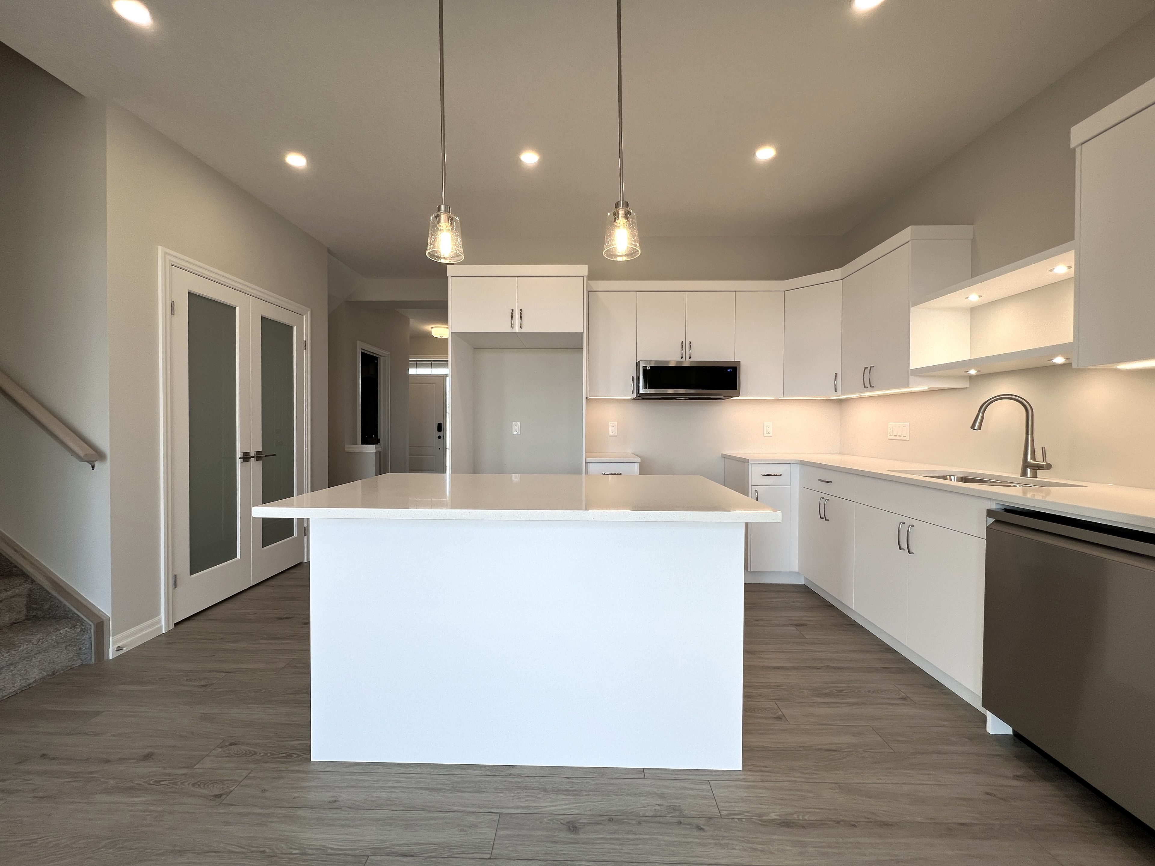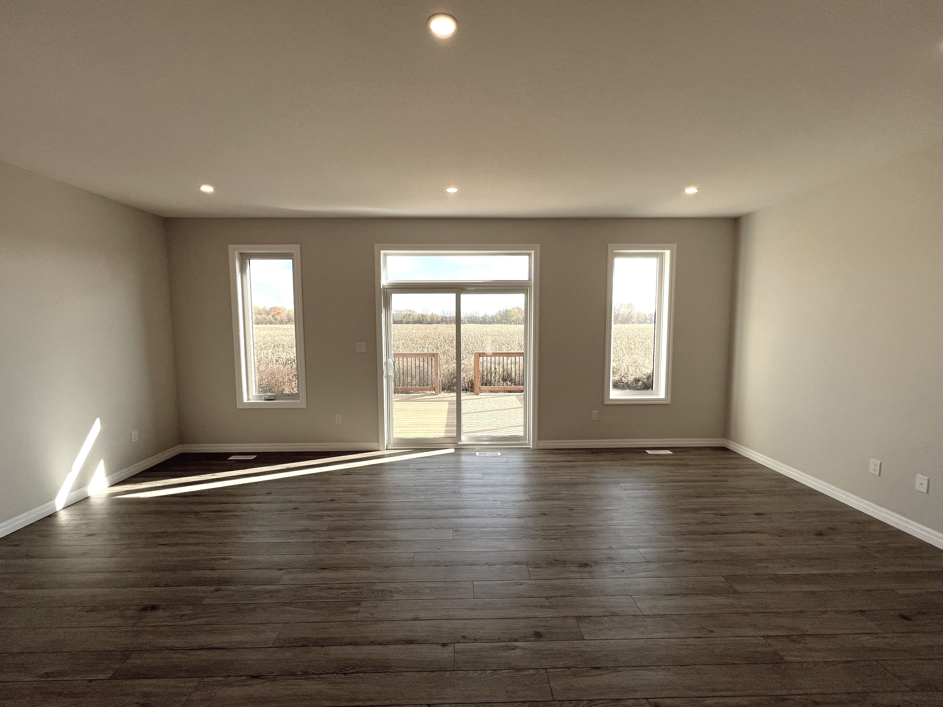 Freehold (no condo fees) town interior unit crafted by hayhoe homes offers 3 bedrooms, 2. 5 bathrooms, and a single car garage. The inviting entrance features a covered porch and spacious foyer that leads to the open concept main floor with 9' ceilings, powder room, and designer kitchen showcasing quartz countertops, an island and pantry, opening to the large great room with sliding glass doors for access to the rear deck. Upstairs, the primary suite includes a large walk-in closet and private 3-piece ensuite with a walk-in shower, along with two additional bedrooms, a 4-piece main bathroom, and convenient bedroom-level laundry. The unfinished basement provides excellent development potential for a future family room and bathroom. Additional highlights include luxury vinyl plank flooring (as per plan), tarion new home warranty, central air conditioning & hrv, plus many upgraded features throughout. Located in the northcrest estates community, just minutes from shopping, restaurants, parks, trails, and highway access. Taxes to be assessed.