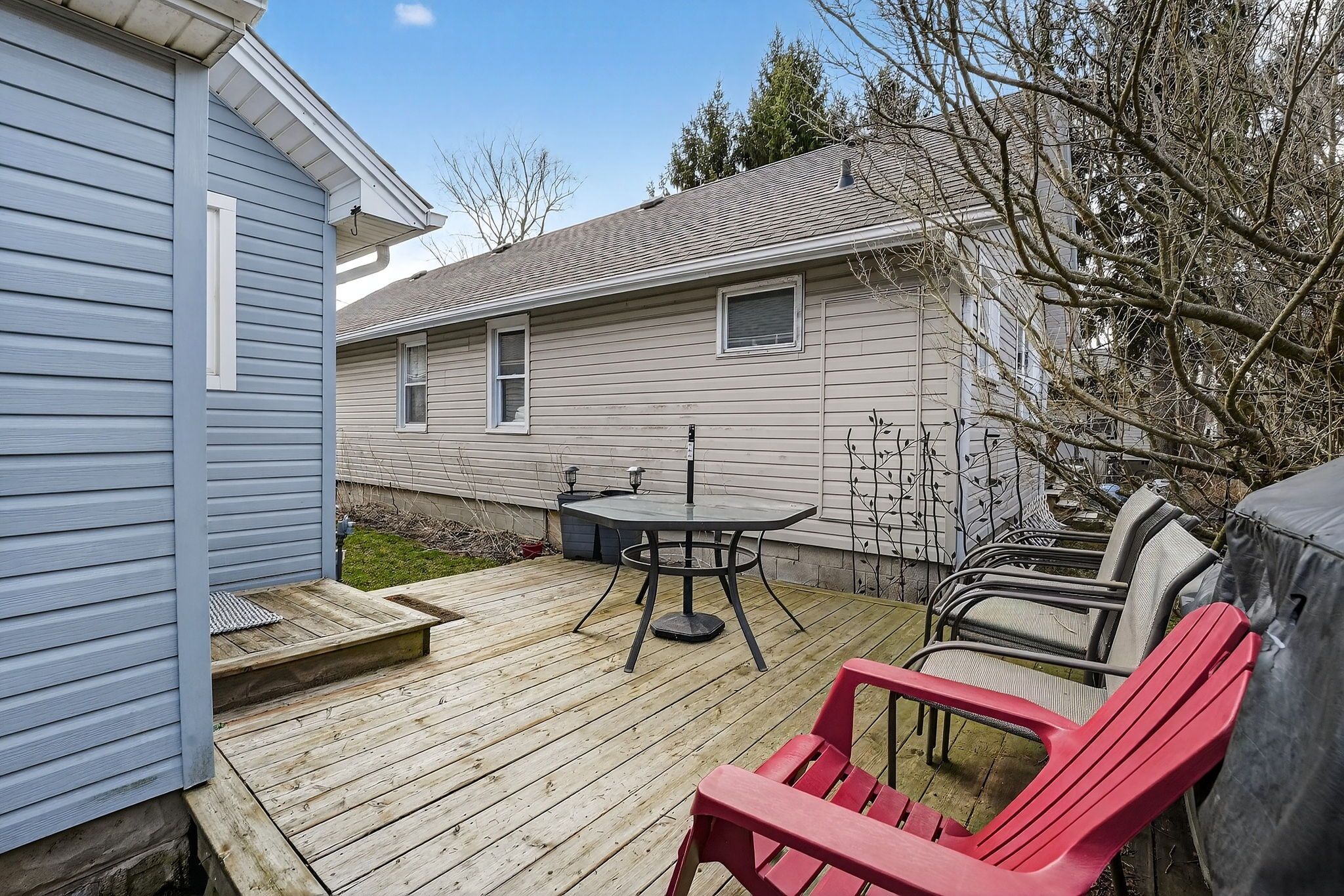 • Low-maintenance backyard with a deck, just minutes from the beach.