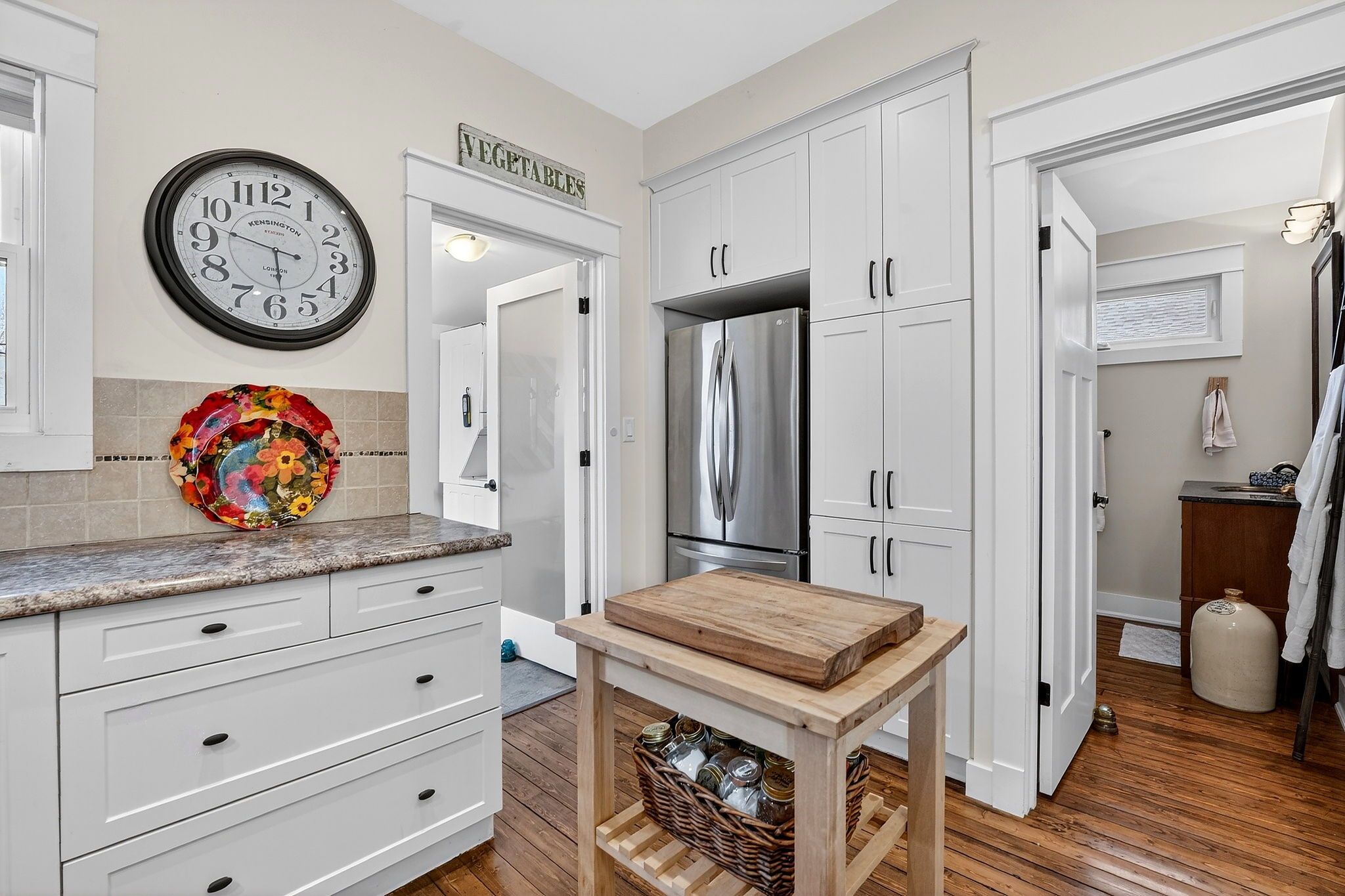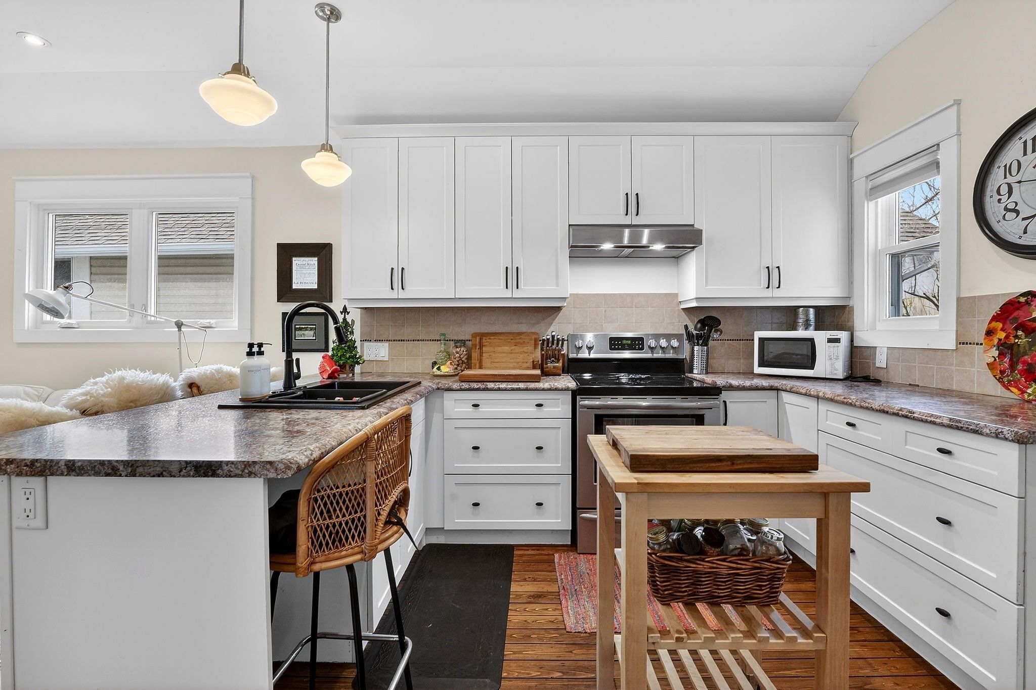 • Open-concept living space with 9-foot ceilings and original character flooring.