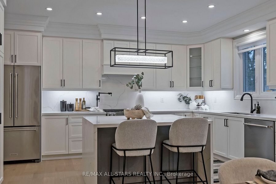 Welcome to 75 cemetery rd, a never-lived-in custom masterpiece offering nearly 4,800 sq ft of refined, family-focused living on an extraordinary 249-ft deep lot. A rare opportunity to own a home that blends luxury, comfort, and long-term potential. Arrive to striking stone and brick curb appeal, a multi-vehicle driveway, and a double attached garage with mudroom access, designed for real life. Unwind on the covered front porch and take in warm westerly sunsets behind sleek tinted glass railings-your daily moment of calm. Step inside to a home that feels both elevated and inviting. Light oak wide-plank floors, dramatic coffered and waffle ceilings, rich trim work, designer lighting, and soft led pot lights create a warm, upscale atmosphere throughout. Every detail has been carefully selected to impress and endure. The heart of the home is the chef-inspired kitchen, where a stunning waterfall quartz island, full-slab quartz backsplash, porcelain tile flooring, stainless steel appliances, and a spacious pantry with rollouts come together to host everything from quiet mornings to unforgettable gatherings. The family room anchors the space with a custom built-in entertainment center and included big-screen tv, while the main-floor office offers with custom shelving and built-in desk is perfect for today's flexible work from home lifestyle. Retreat to the luxurious primary suite, featuring a coffered ceiling, spa-like 5-piece ensuite, professionally designed closet organizer, and picture windows overlooking the expansive backyard-it's your private and relaxing sanctuary at the end of the day. The fully finished l-shaped basement extends the living space with a large recreation area, office, 3-piece bath, and thoughtfully organized storage-ideal for entertaining, relaxing, or accommodating growing families. Complete with central air, central vacuum, and security system, this exceptional home is move-in ready yet offers endless opportunity to personalize the outdoor space.