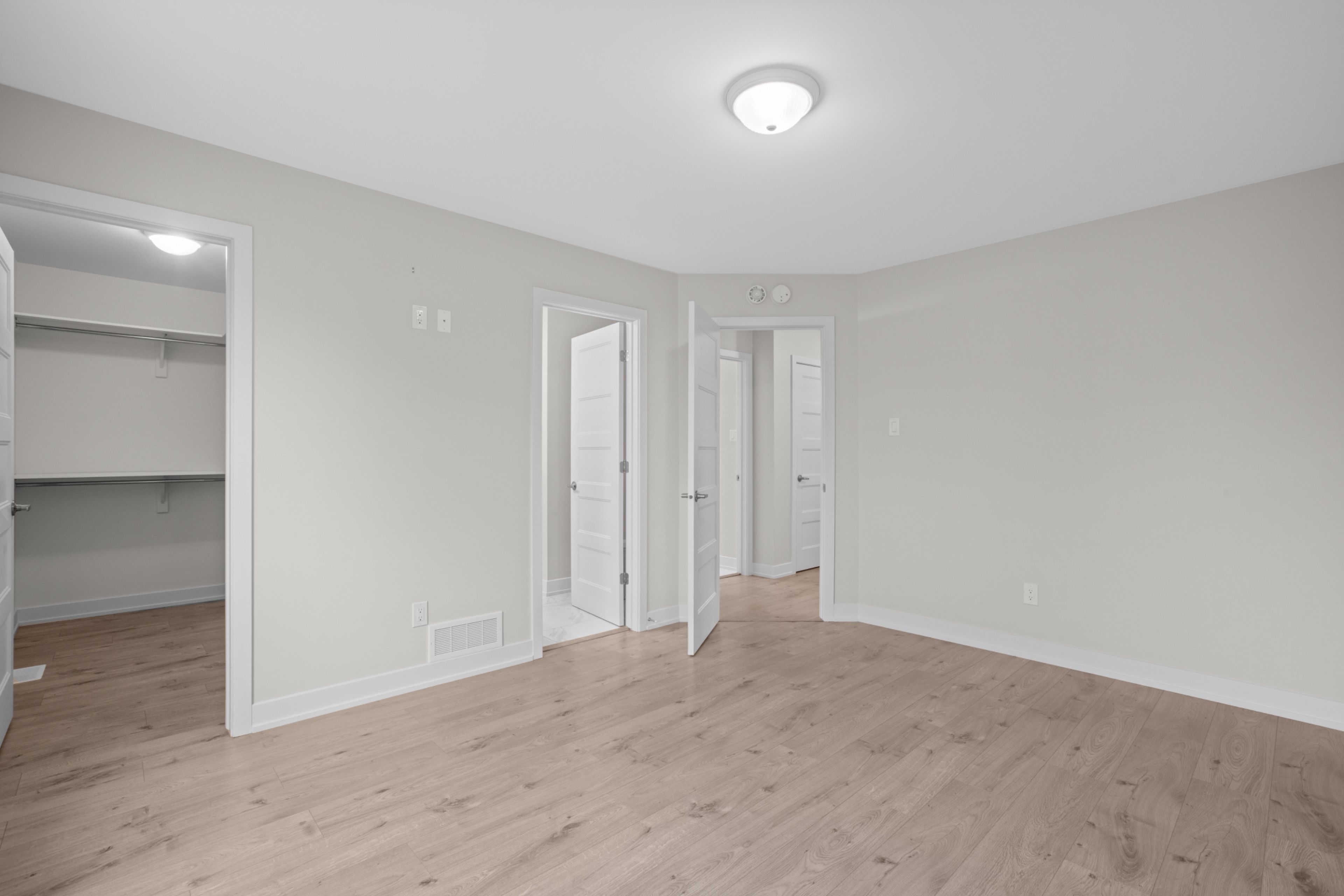 • Primary suite features walk-in closet and private ensuite bathroom.