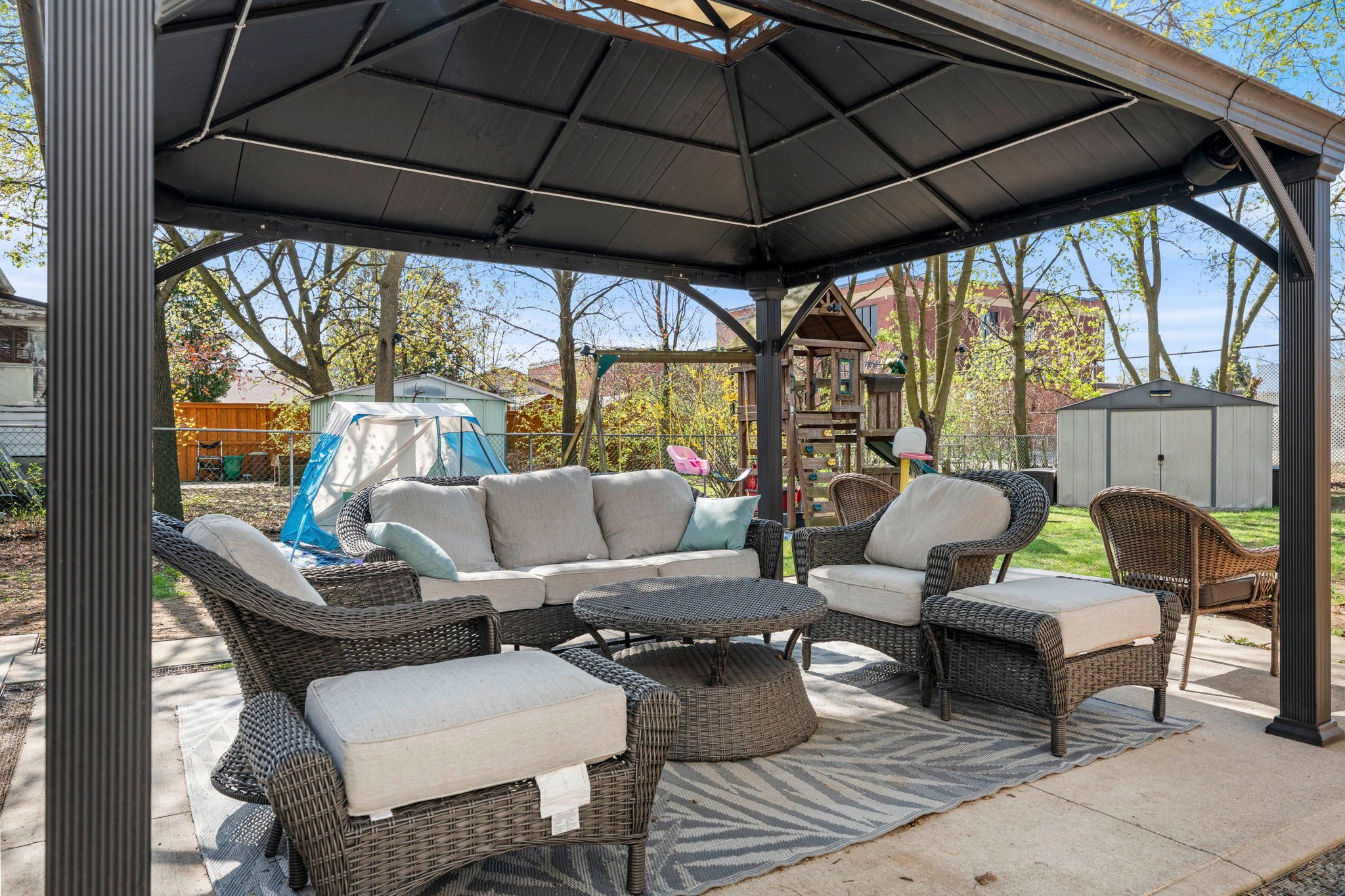 • Wired gazebo for customizable outdoor entertainment options.