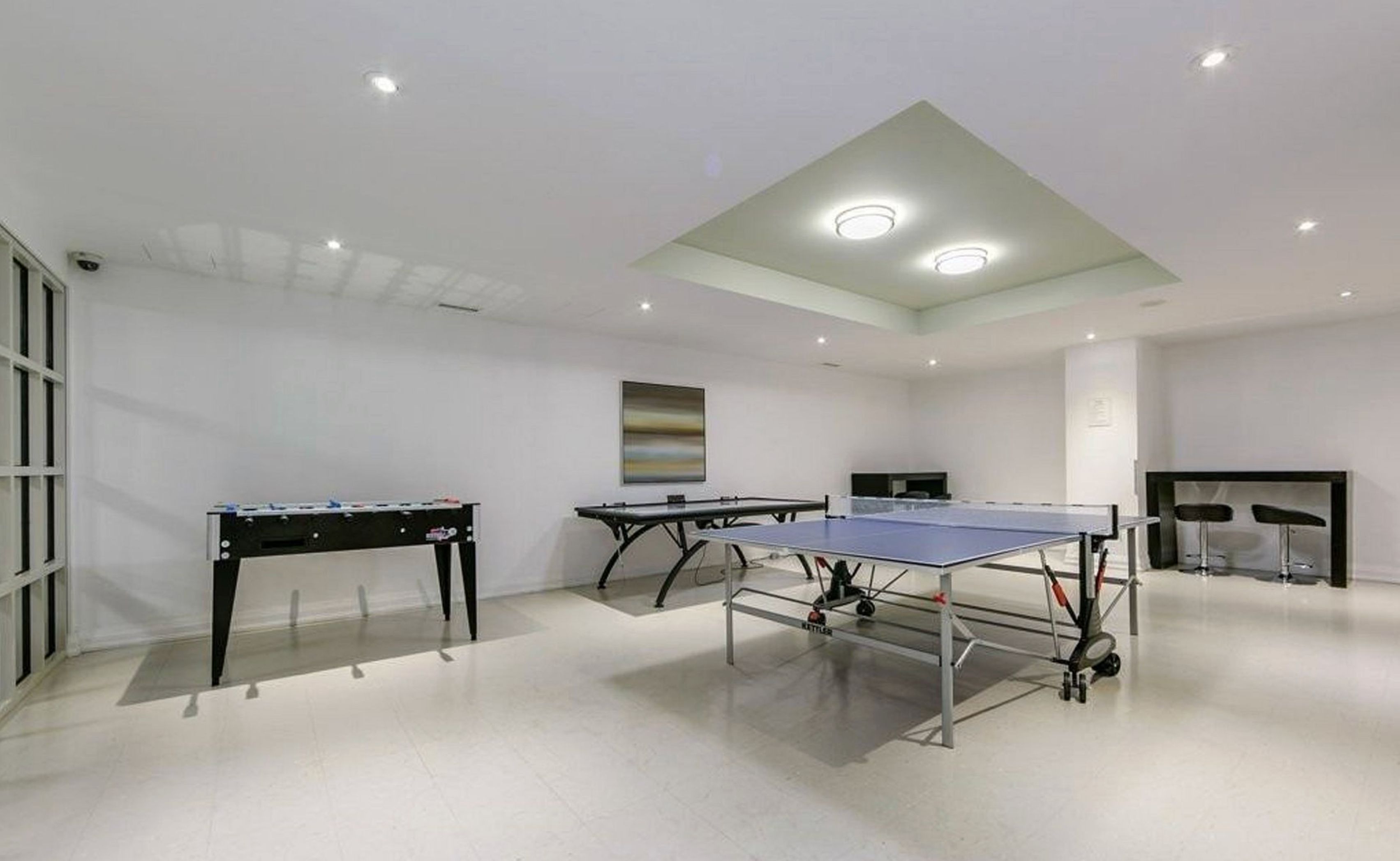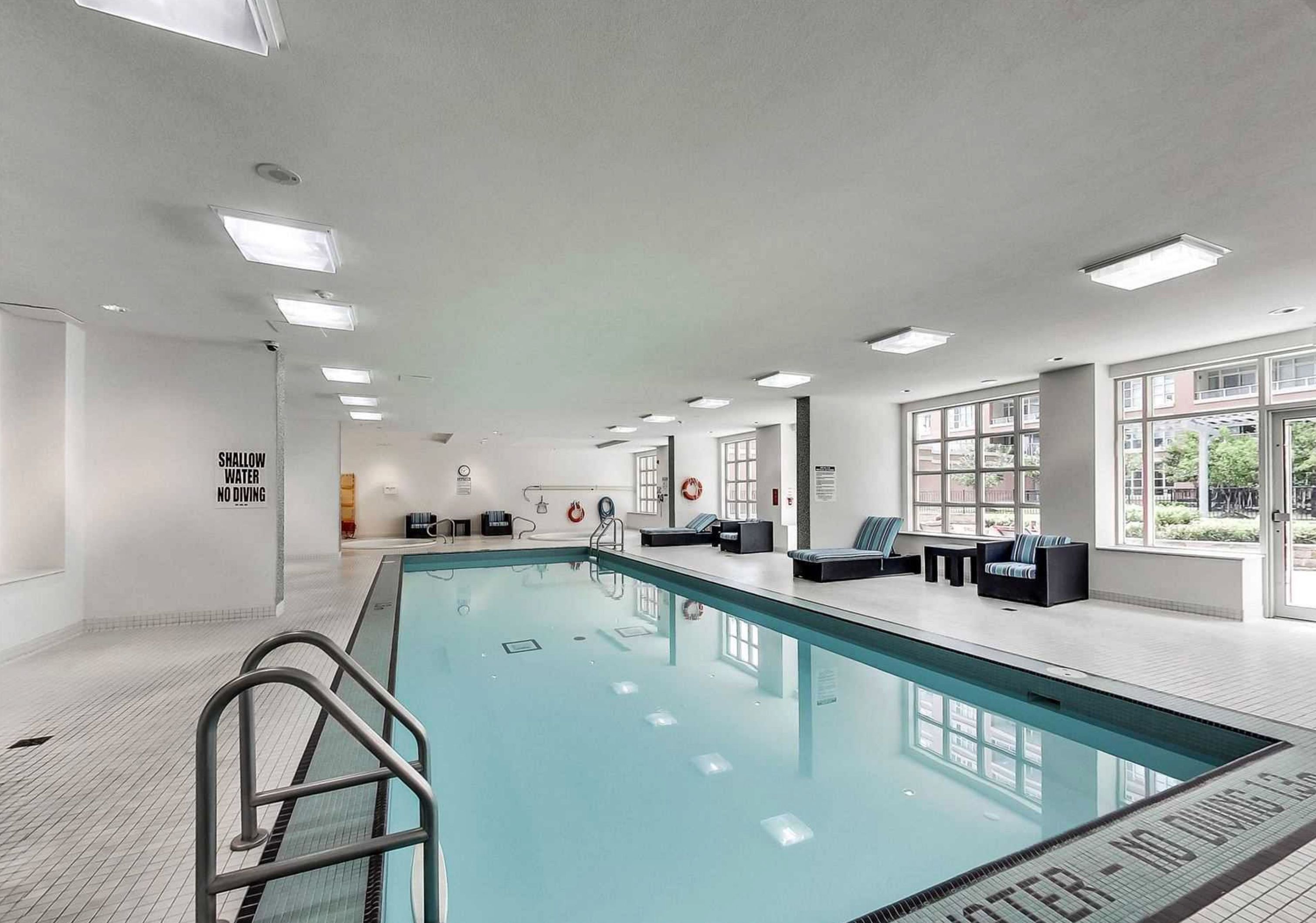 • Building amenities include a gym, indoor pool, and rooftop deck.