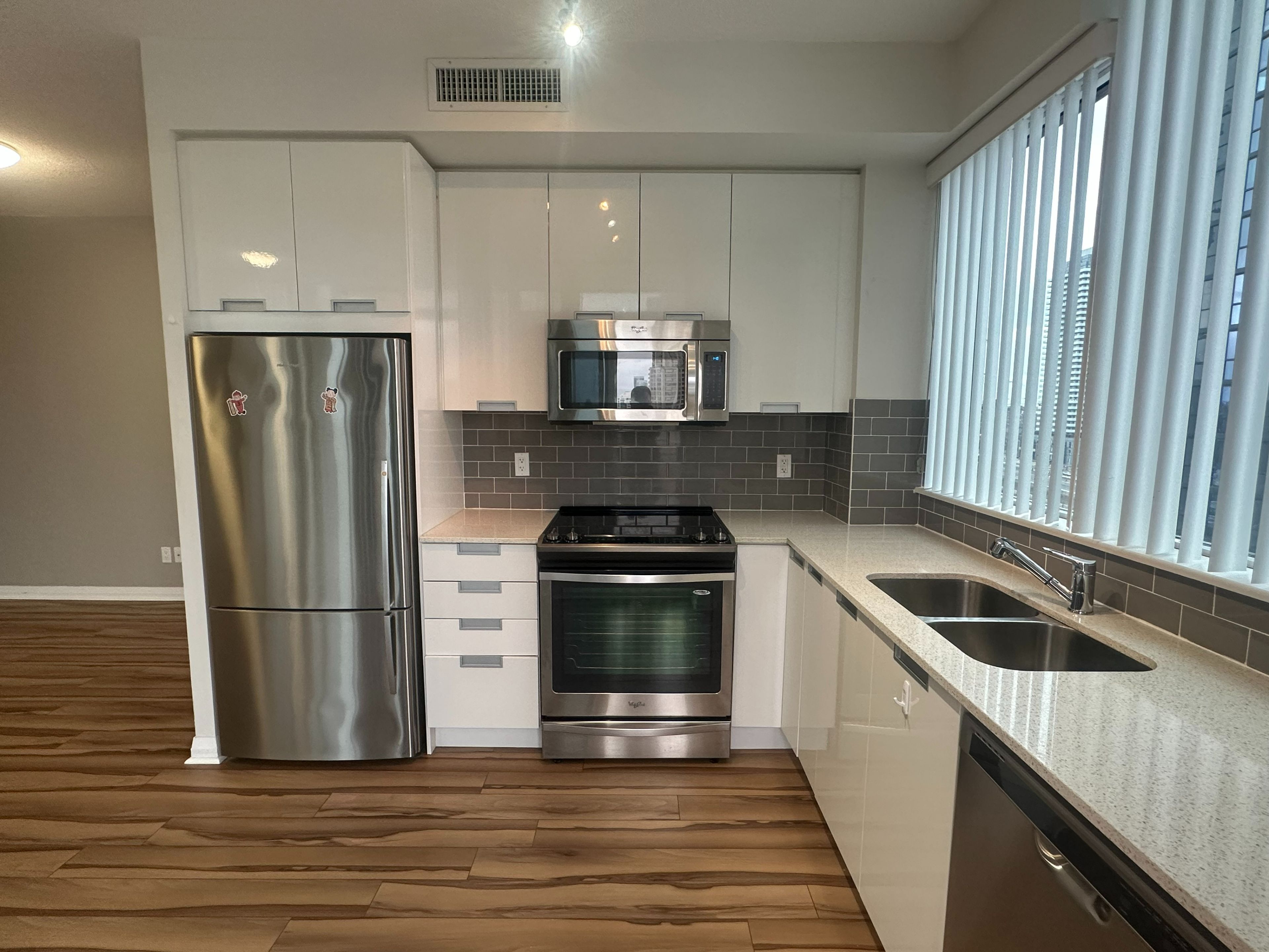 • Modern kitchen featuring stainless steel appliances and open design.