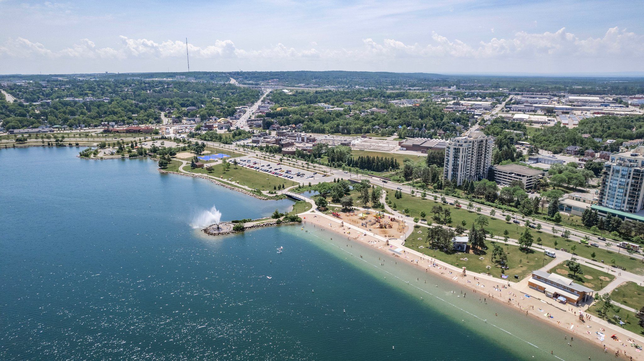 Welcome to lakeside living in barrie, where breathtaking views of lake simcoe await you along the scenic trail of life. Enjoy delightful walks that lead you to the pristine beach, lush parks, and the vibrant waterfront, all just steps from your door. With downtown amenities just a stone's throw away, this location truly has it all. Indulge in easy living within the adjoining complex, which boasts a gym, an inviting indoor pool, and an upper rooftop terrace perfect for soaking in stunning sunsets. This turn-key facility features beautifully maintained grounds and a secure entry that greets you with an impressive grand foyer, harmonizing modern elegance with comfort. Step inside to discover a charming galley kitchen adorned with a stylish tiled floor and a convenient pantry. You'll appreciate the practicality of an in-unit washer and dryer, along with a thoughtfully designed laundry and storage closet. The interior is both cozy and peaceful, featuring ceramic tile, efficient gas heating, air conditioning, and a temperature controller that ensures your comfort year-round. Enjoy the serene views from your balcony, where the river meanders towards the lake-just a short stroll from the beach. The ensuite includes a four-piece and the second suite, a three-piece bathroom, ensuring comfort and convenience. Meanwhile, all rooms are bathed in natural light from its oversized windows, making it a perfect sanctuary. The boardwalk is easily accessible from the service entry, providing convenient access for pets and deliveries through the back door, while the nearby trail of life invites you to explore nature.. And barrie's downtown.