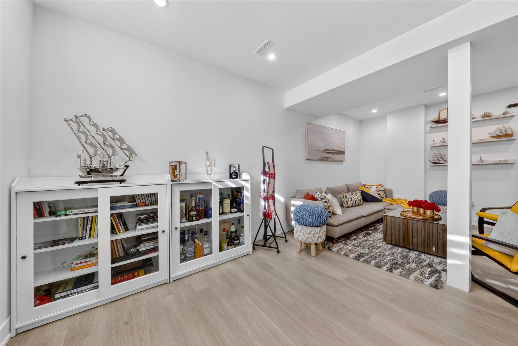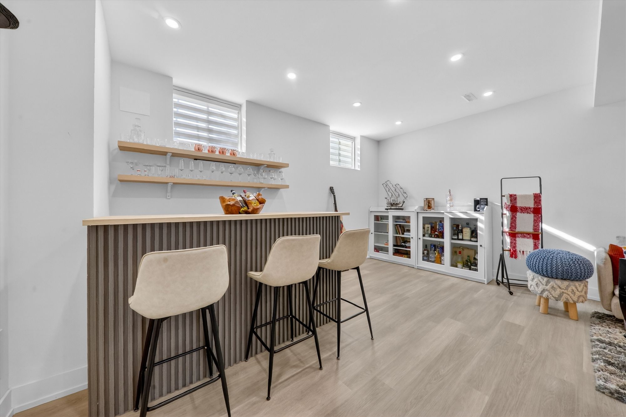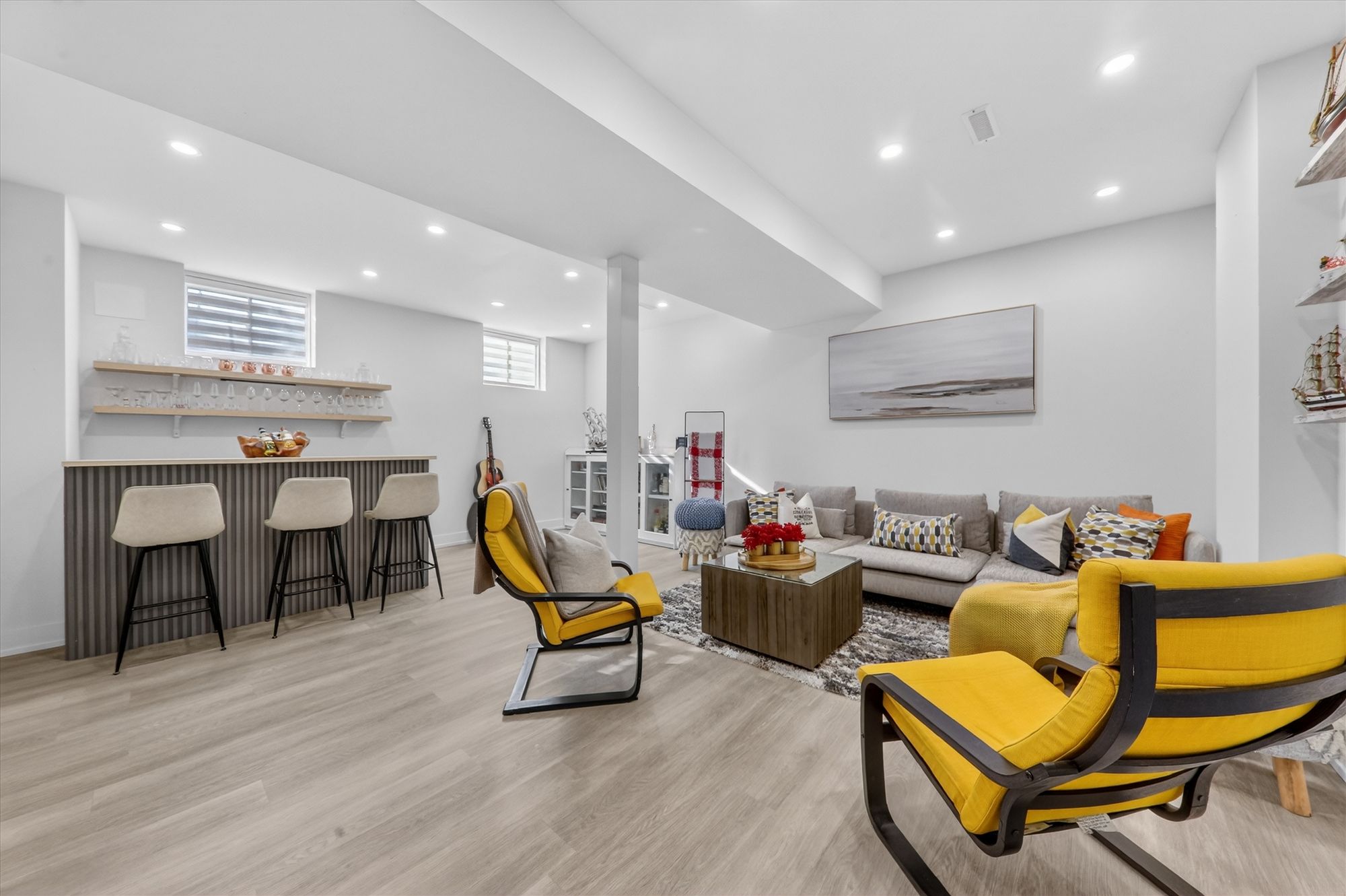 • Finished basement with a stylish bar, great for entertaining.