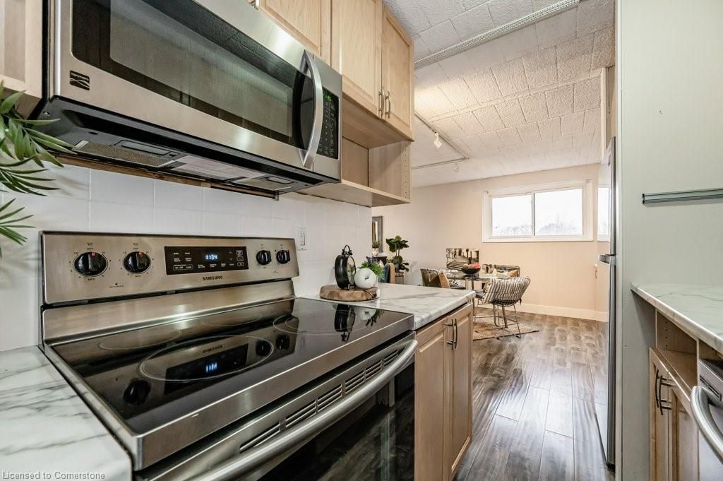 Low condo fee includes heat, hydro & water!!! An exceptional opportunity for first-time homebuyers and astute investors, this charming 2-bedroom condominium is nestled in the victoria hills community central to everything in kitchener- waterloo. The low condo fees include all utility expenses, ensuring effortless living. This well-appointed apartment boasts a spacious living and dining area, complemented by two generously proportioned bedrooms and a large 4-piece bathroom. This unit is move-in-ready and has been nicely renovated including flooring, kitchen, built-in cabinetry & bathroom. This is one of the largest layouts in the building. There is also a private balcony off the sliders in the living area. One exclusive parking space is included, with an additional parking spot available for a small fee of $40 per month. Residents appreciate the convenience of on-site pay-as-you-go laundry facilities, a seasonal storage room, and a spacious recreation room. Conveniently located close to everything including the expressway, universities, shopping and in close proximity to great schools, major retail centres, public transit, picturesque parks, and scenic trails, and more! This condo has it all!