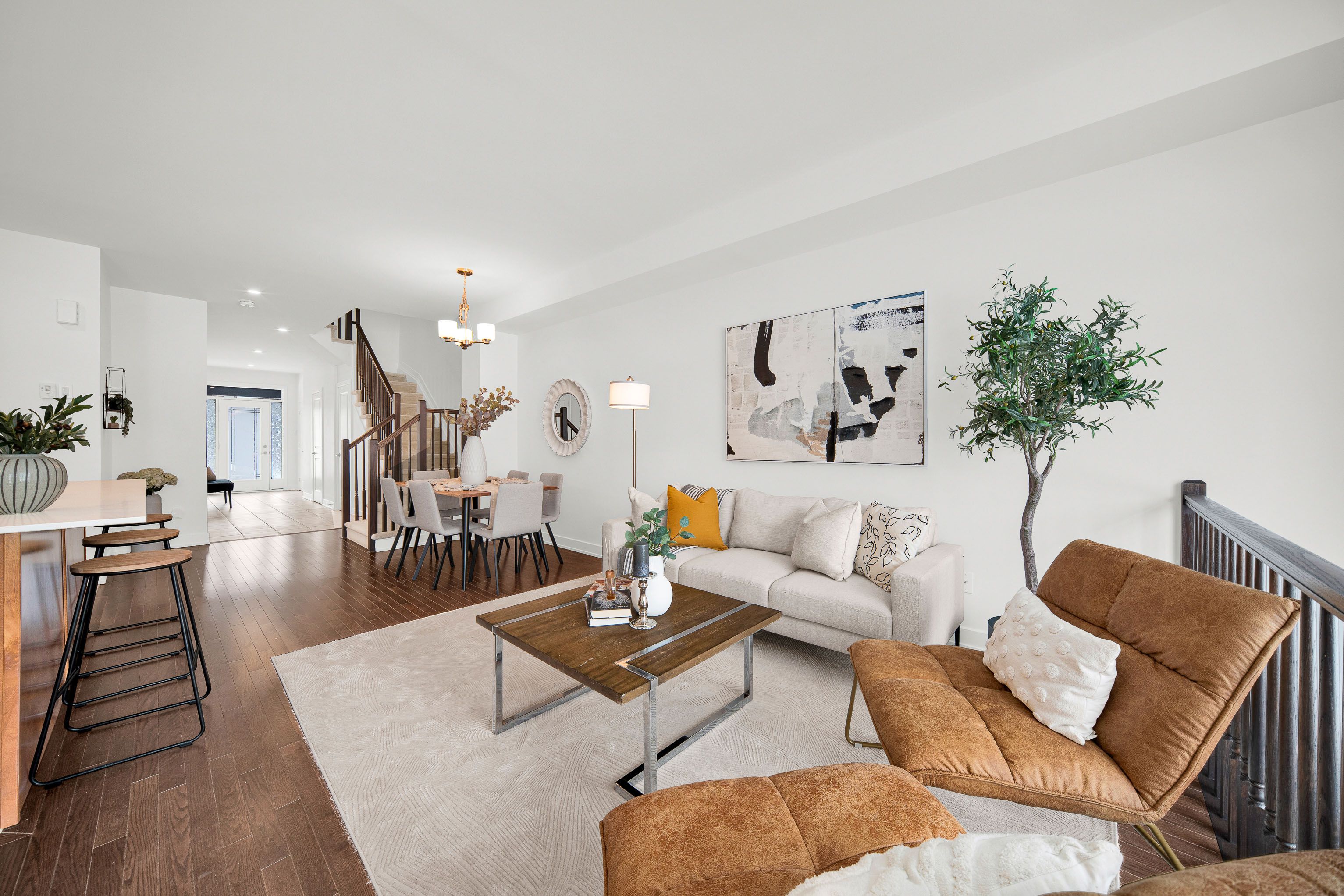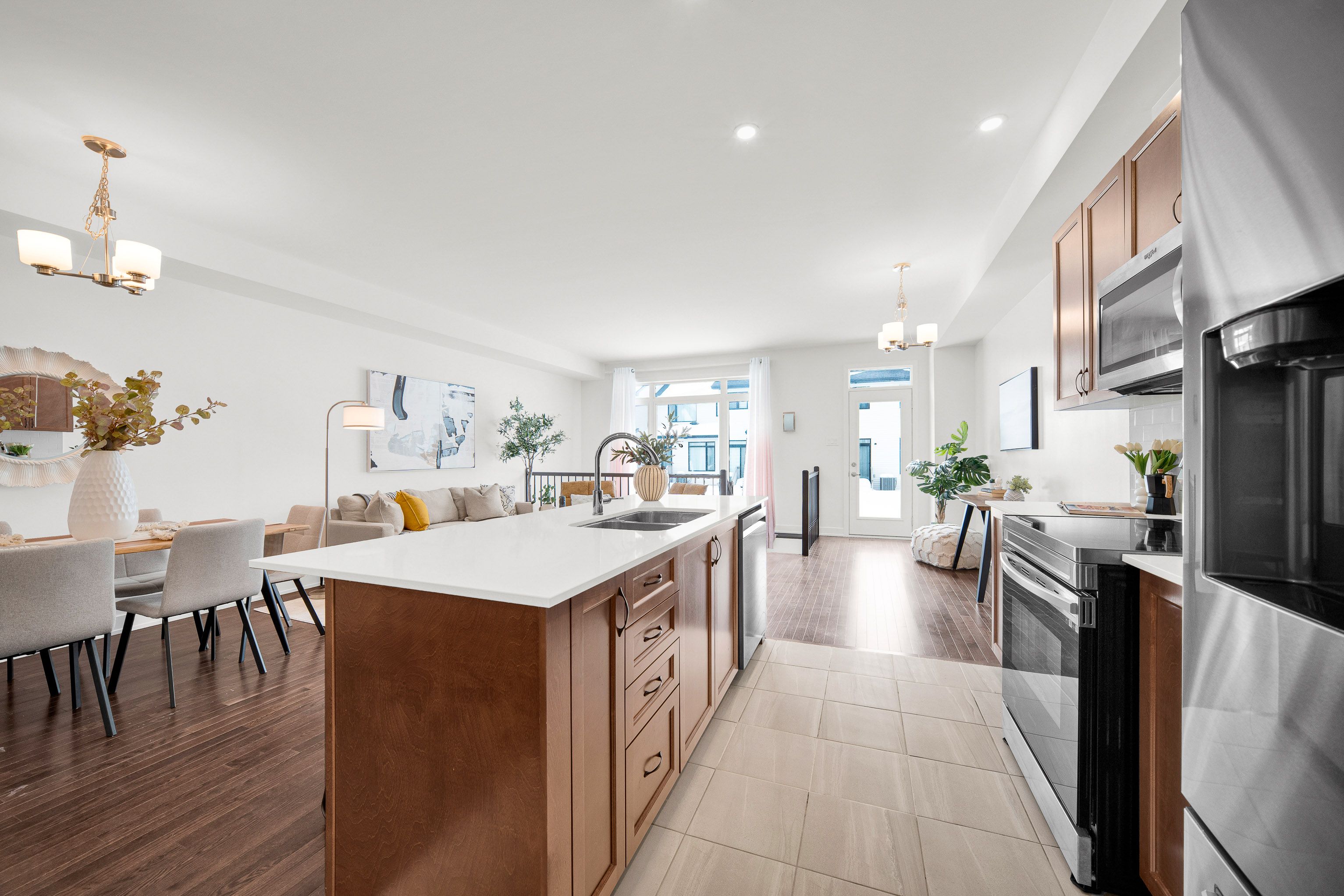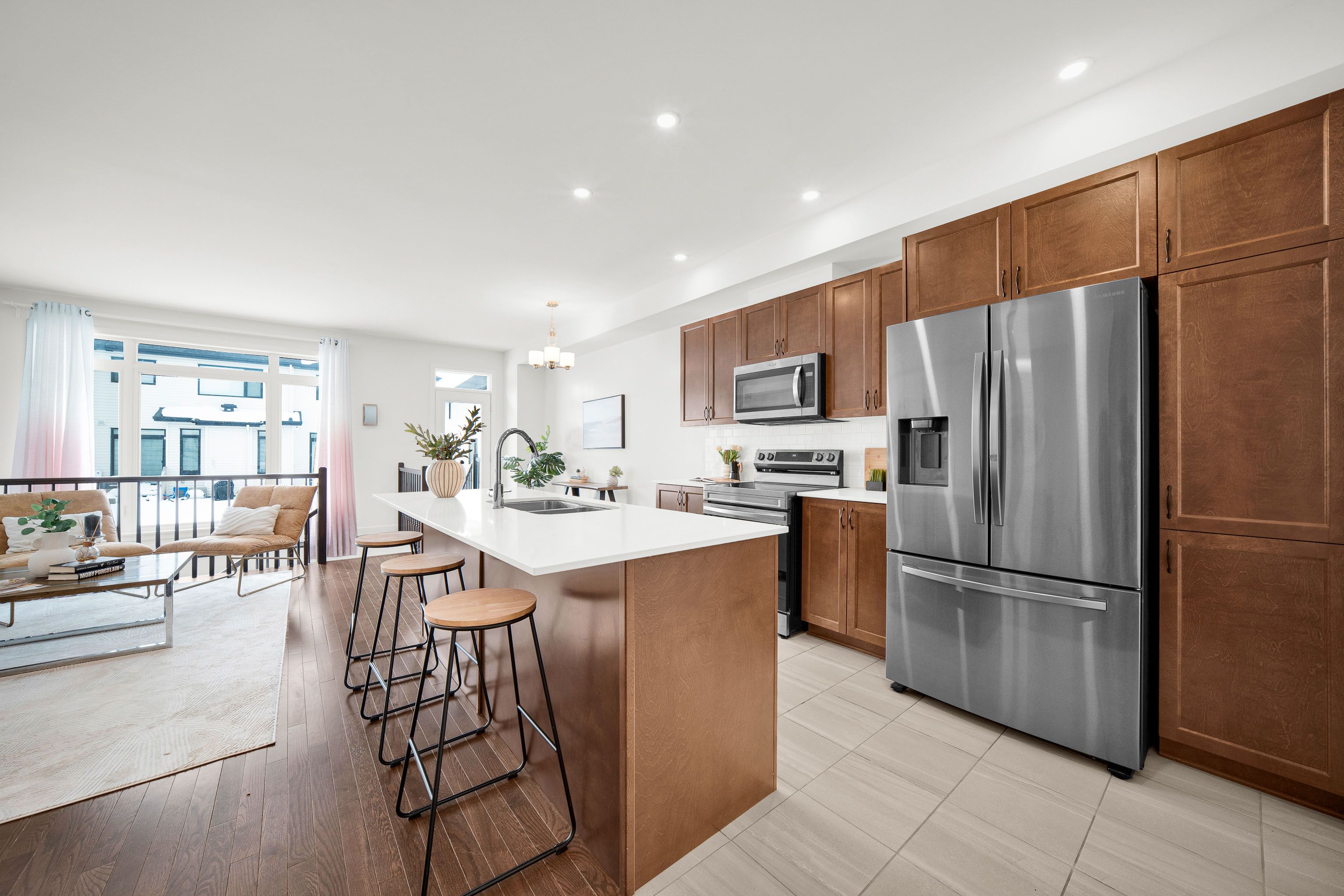 Set in the heart of riverside south, 75 heirloom street offers a refined balance of modern design, functional layout, and low-maintenance living. Built in 2022, this claridge gregoire model features 2,160 sq. Ft. Of finished living space, including a 455 sq. Ft. Fully finished basement - ideal for a media room, home gym, or office. Curb appeal is enhanced by interlock landscaping at the front, providing a clean, polished look along with valuable additional parking-a rare and highly practical upgrade for townhome living. Inside, the main level is bright and inviting with 9-foot ceilings, hardwood flooring, and an oversized rear window that fills the space with natural light. Designed for both everyday comfort and entertaining, the main floor features a well-appointed kitchen with custom stainless steel appliances, a walk-in pantry, and a quartz island with seating for four, complemented by a separate eat-in area for family meals or flexible daily use. The layout flows seamlessly into the dining and living areas, creating a comfortable and welcoming atmosphere. Upstairs, the home offers three well-proportioned bedrooms, including a primary suite with a walk-in closet and a spa-inspired ensuite with double sinks. A second-floor laundry room with custom cabinetry adds convenience right where it's needed. The fully interlocked backyard is designed for easy, low-maintenance outdoor enjoyment-perfect for dining, relaxing, or hosting friends without the upkeep. The location further elevates the appeal. Situated in a fast-growing community, the home is just minutes from parks, schools, and everyday amenities, with lrt access nearby and a large commercial area currently under construction - enhancing both convenience and long-term value. With its newer construction, thoughtful upgrades, and prime riverside south setting, 75 heirloom street presents an exceptional opportunity for modern living.