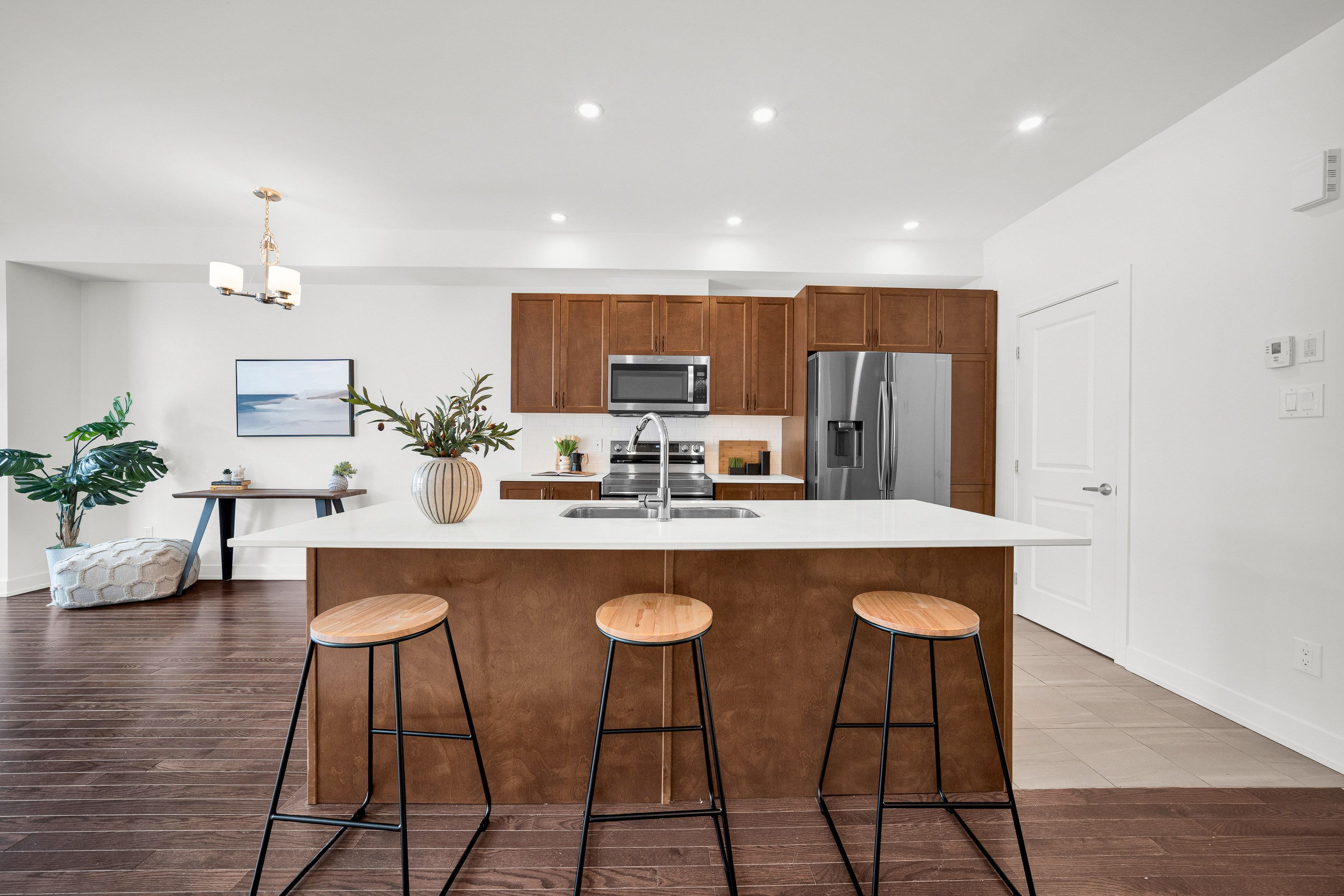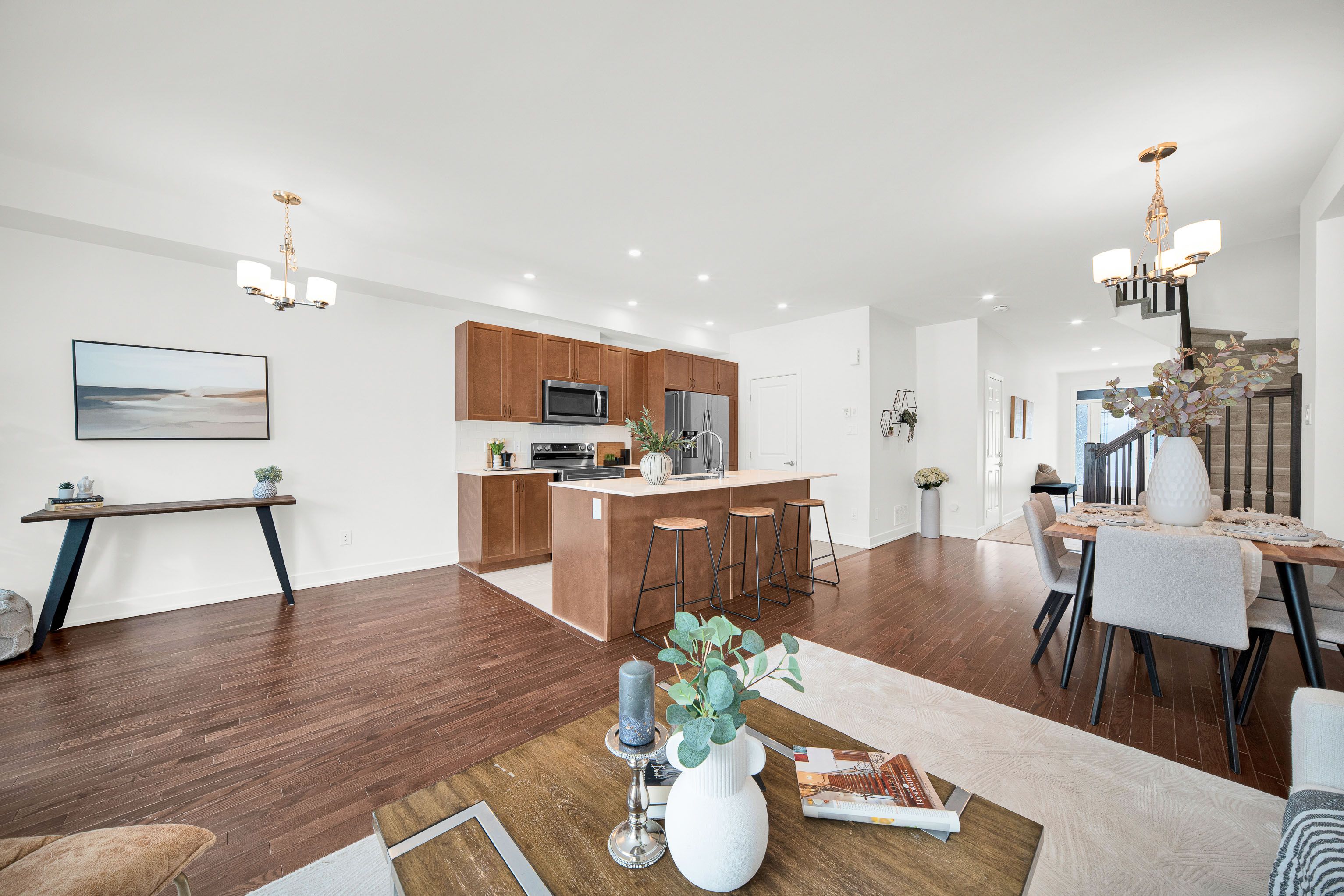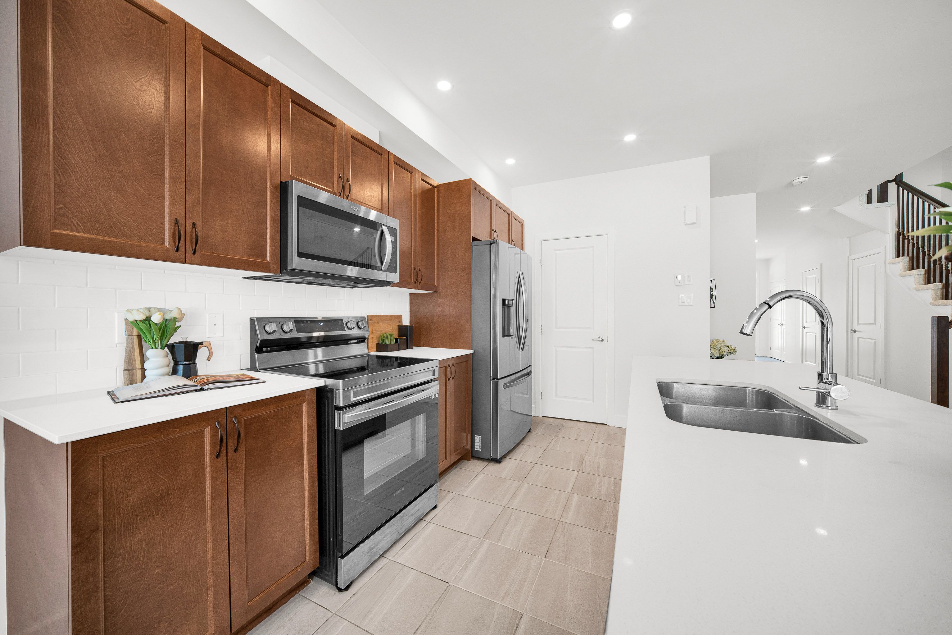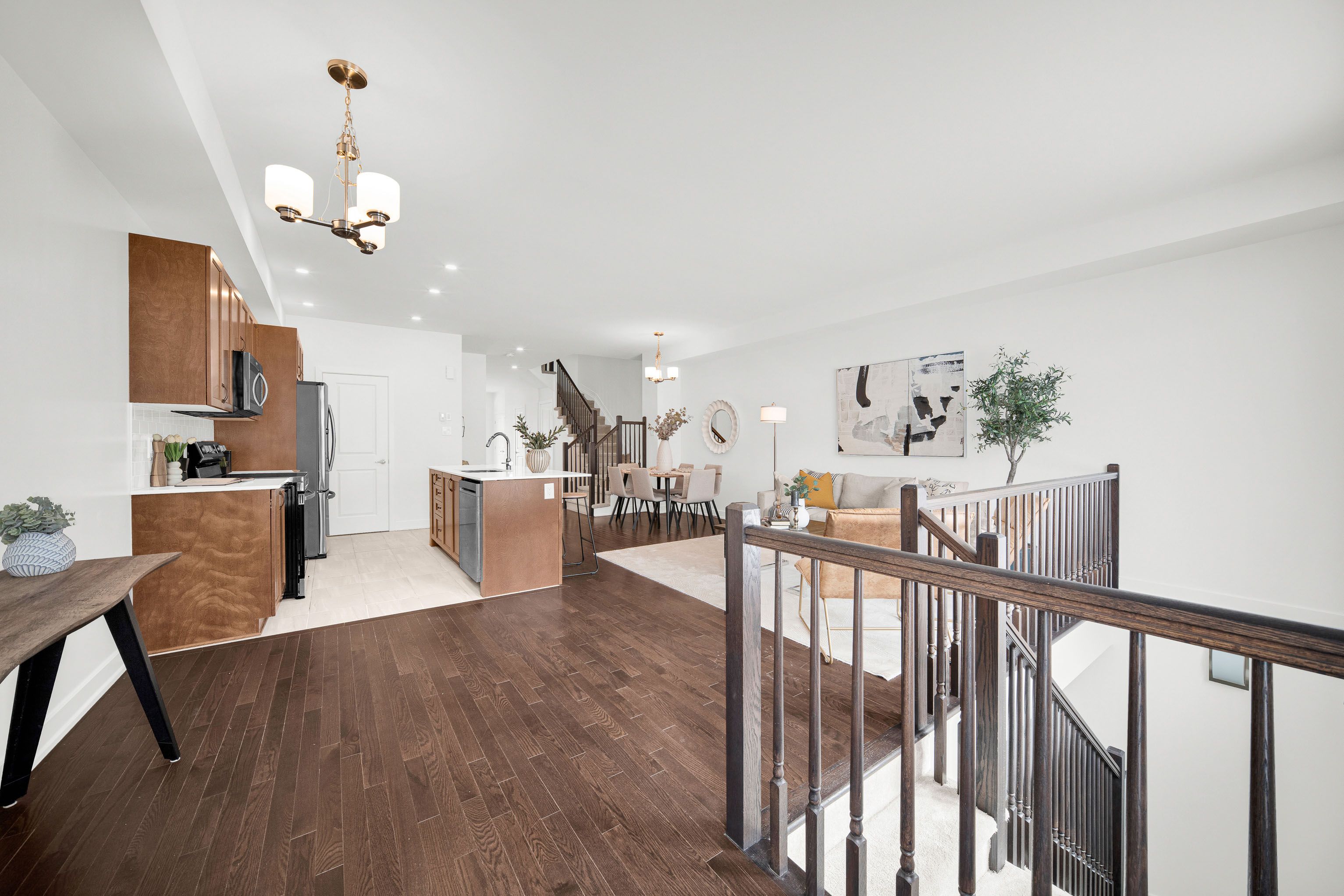 Set in the heart of riverside south, 75 heirloom street offers a refined balance of modern design, functional layout, and low-maintenance living. Built in 2022, this claridge gregoire model features 2,160 sq. Ft. Of finished living space, including a 455 sq. Ft. Fully finished basement - ideal for a media room, home gym, or office. Curb appeal is enhanced by interlock landscaping at the front, providing a clean, polished look along with valuable additional parking-a rare and highly practical upgrade for townhome living. Inside, the main level is bright and inviting with 9-foot ceilings, hardwood flooring, and an oversized rear window that fills the space with natural light. Designed for both everyday comfort and entertaining, the main floor features a well-appointed kitchen with custom stainless steel appliances, a walk-in pantry, and a quartz island with seating for four, complemented by a separate eat-in area for family meals or flexible daily use. The layout flows seamlessly into the dining and living areas, creating a comfortable and welcoming atmosphere. Upstairs, the home offers three well-proportioned bedrooms, including a primary suite with a walk-in closet and a spa-inspired ensuite with double sinks. A second-floor laundry room with custom cabinetry adds convenience right where it's needed. The fully interlocked backyard is designed for easy, low-maintenance outdoor enjoyment-perfect for dining, relaxing, or hosting friends without the upkeep. The location further elevates the appeal. Situated in a fast-growing community, the home is just minutes from parks, schools, and everyday amenities, with lrt access nearby and a large commercial area currently under construction - enhancing both convenience and long-term value. With its newer construction, thoughtful upgrades, and prime riverside south setting, 75 heirloom street presents an exceptional opportunity for modern living.