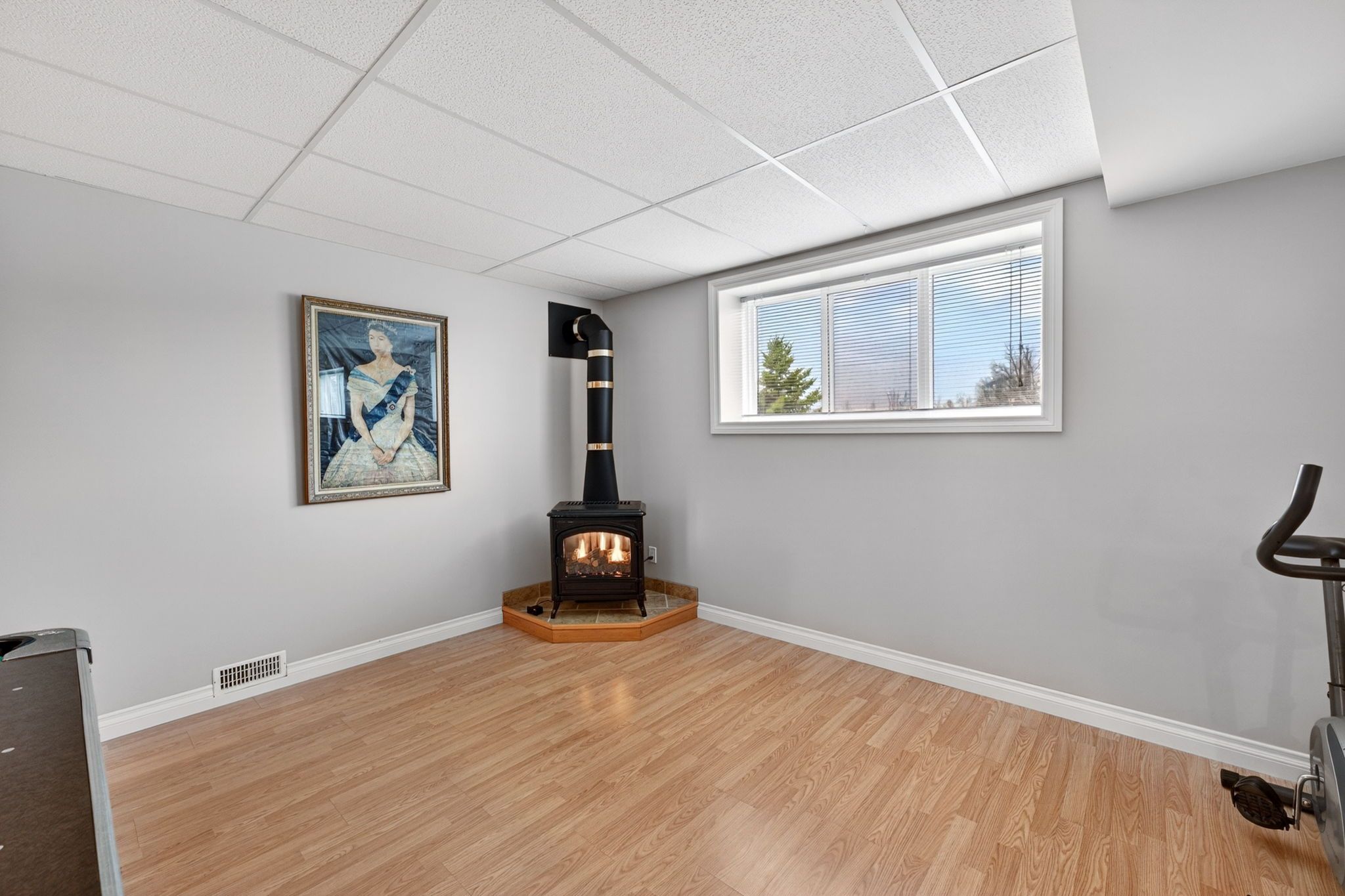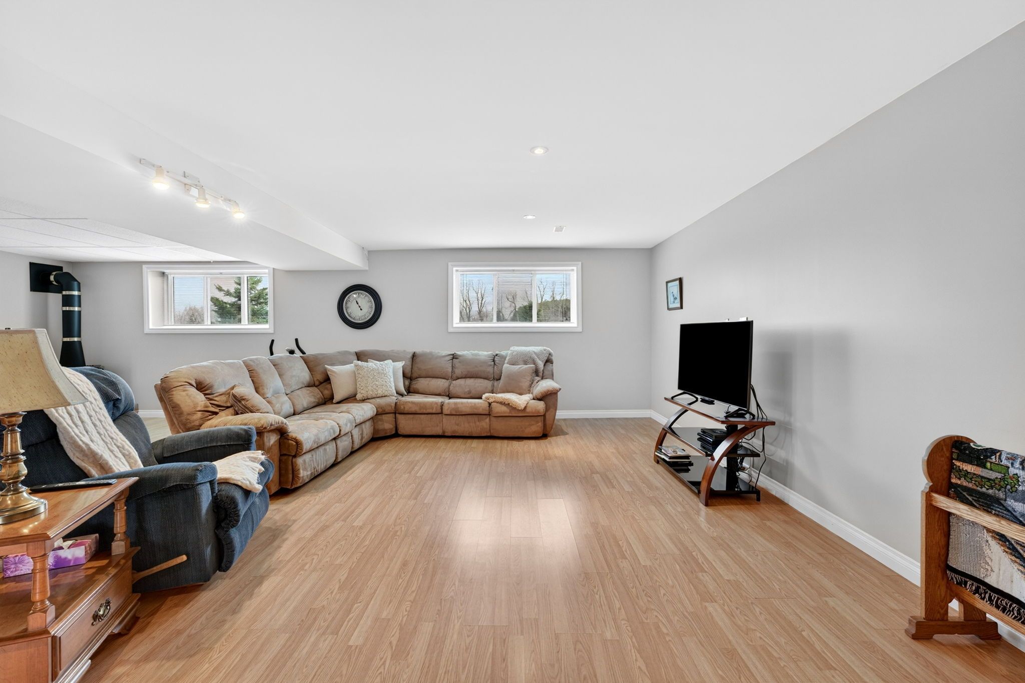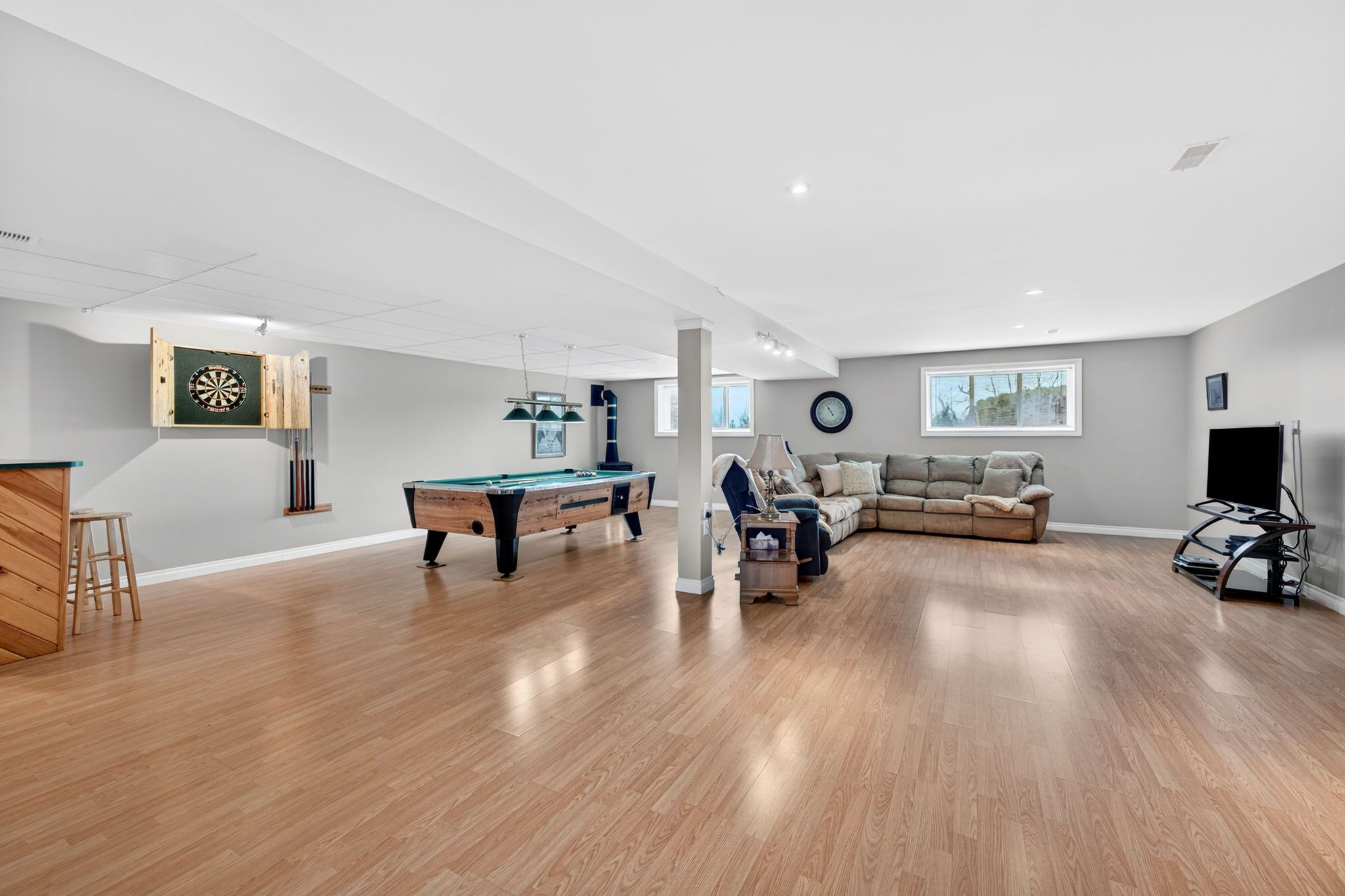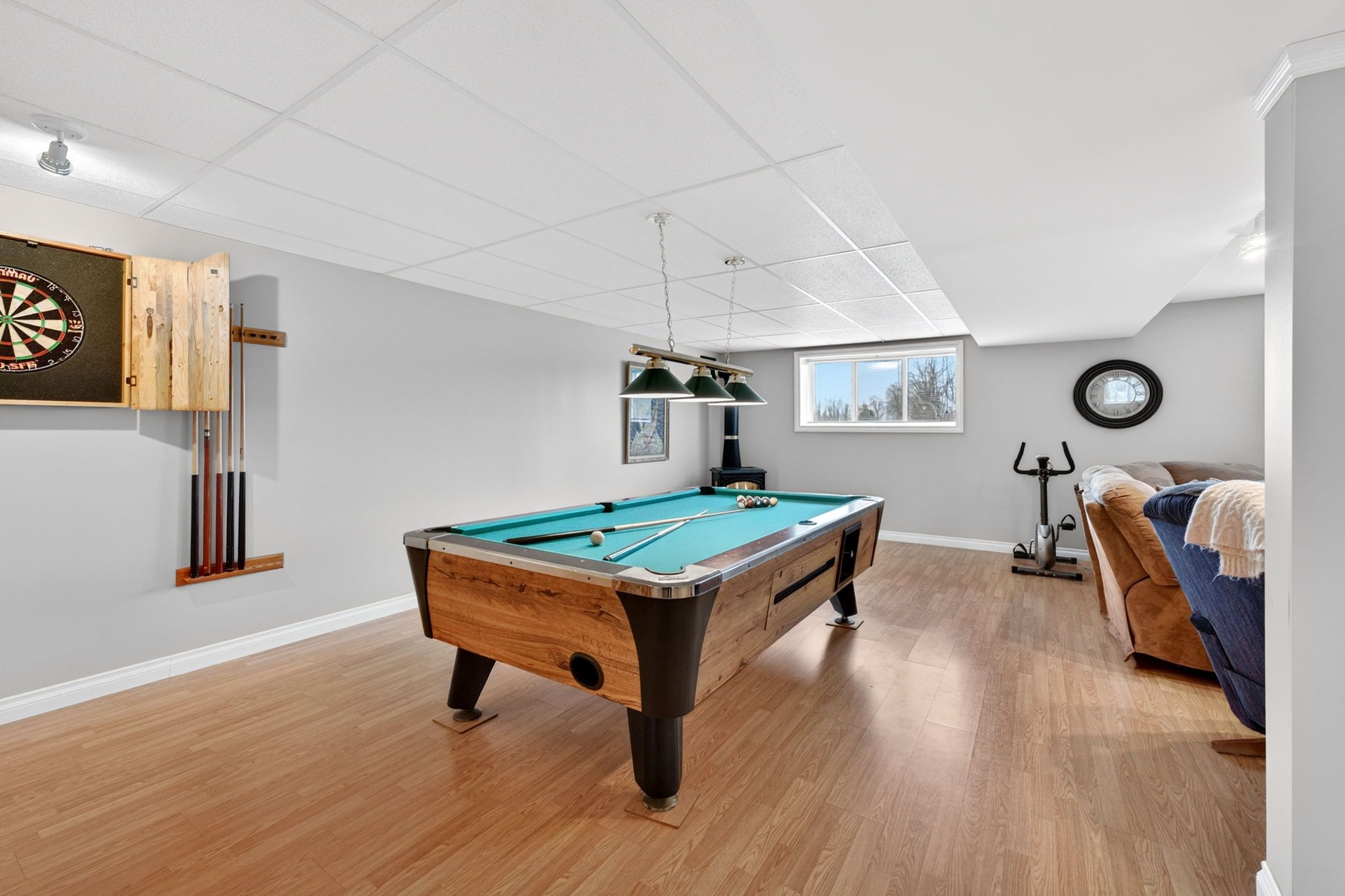 • Finished basement includes recreation room, extra bedroom, and ample storage.