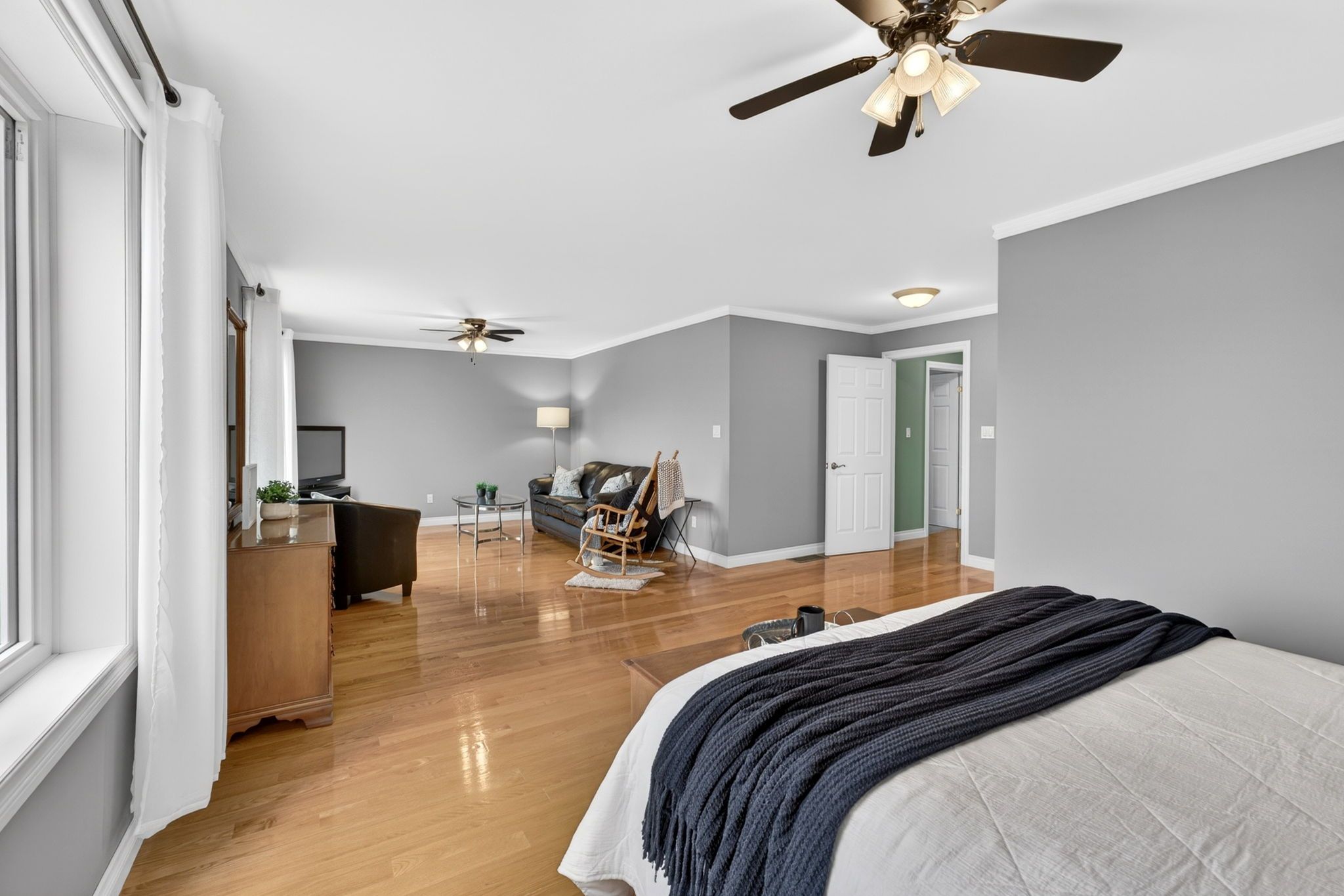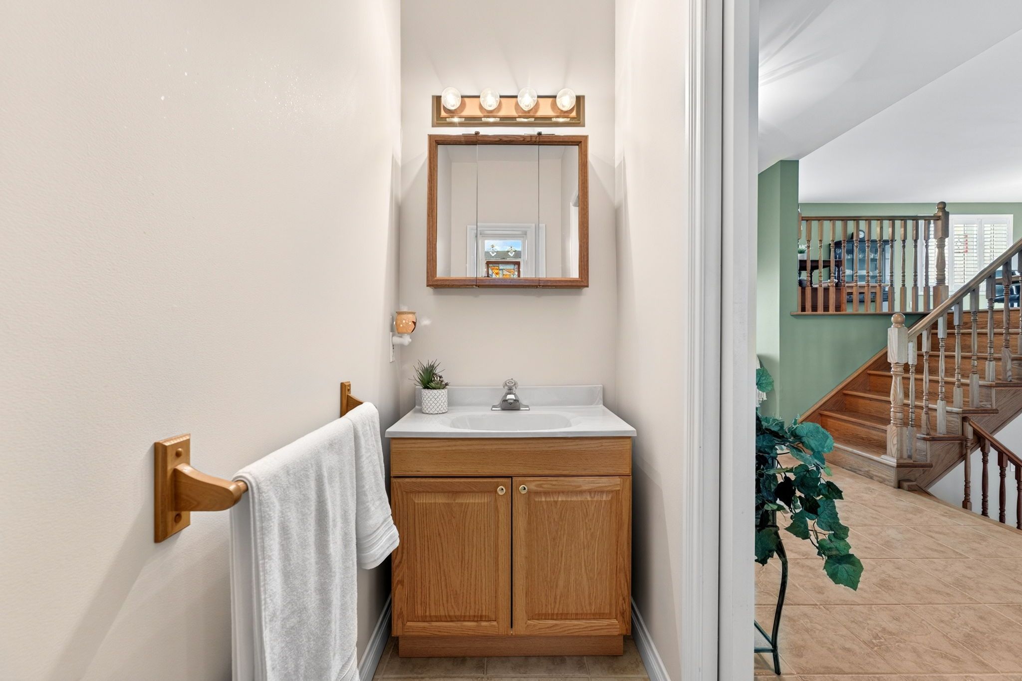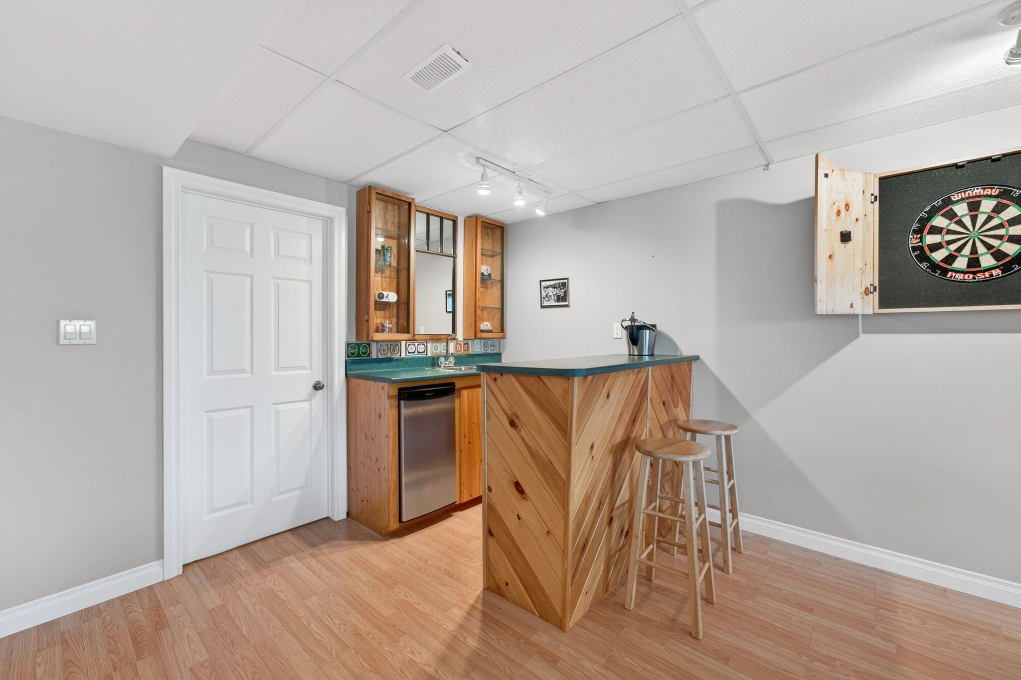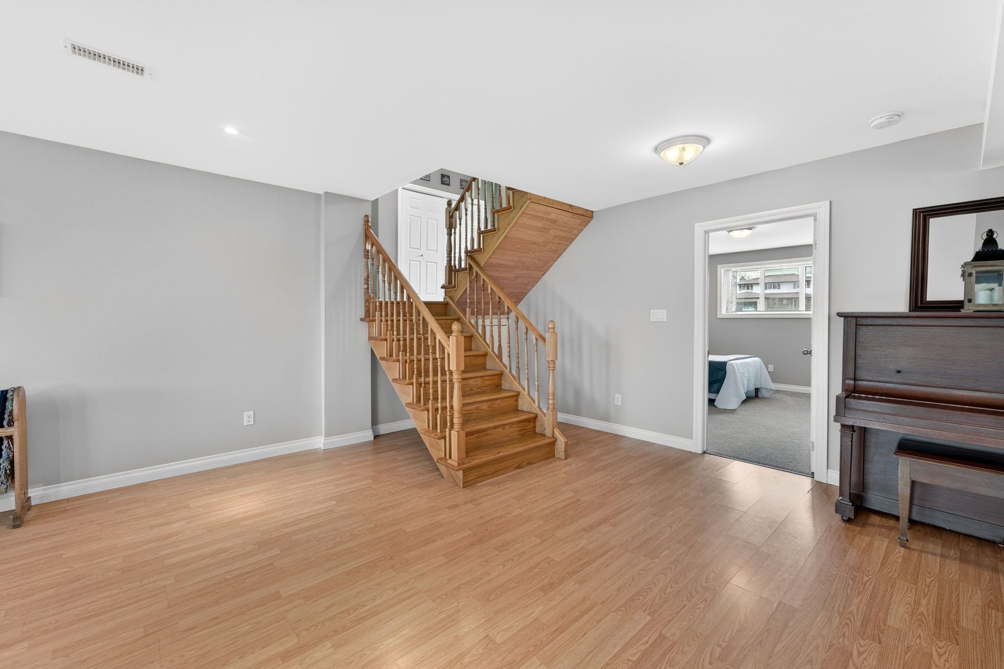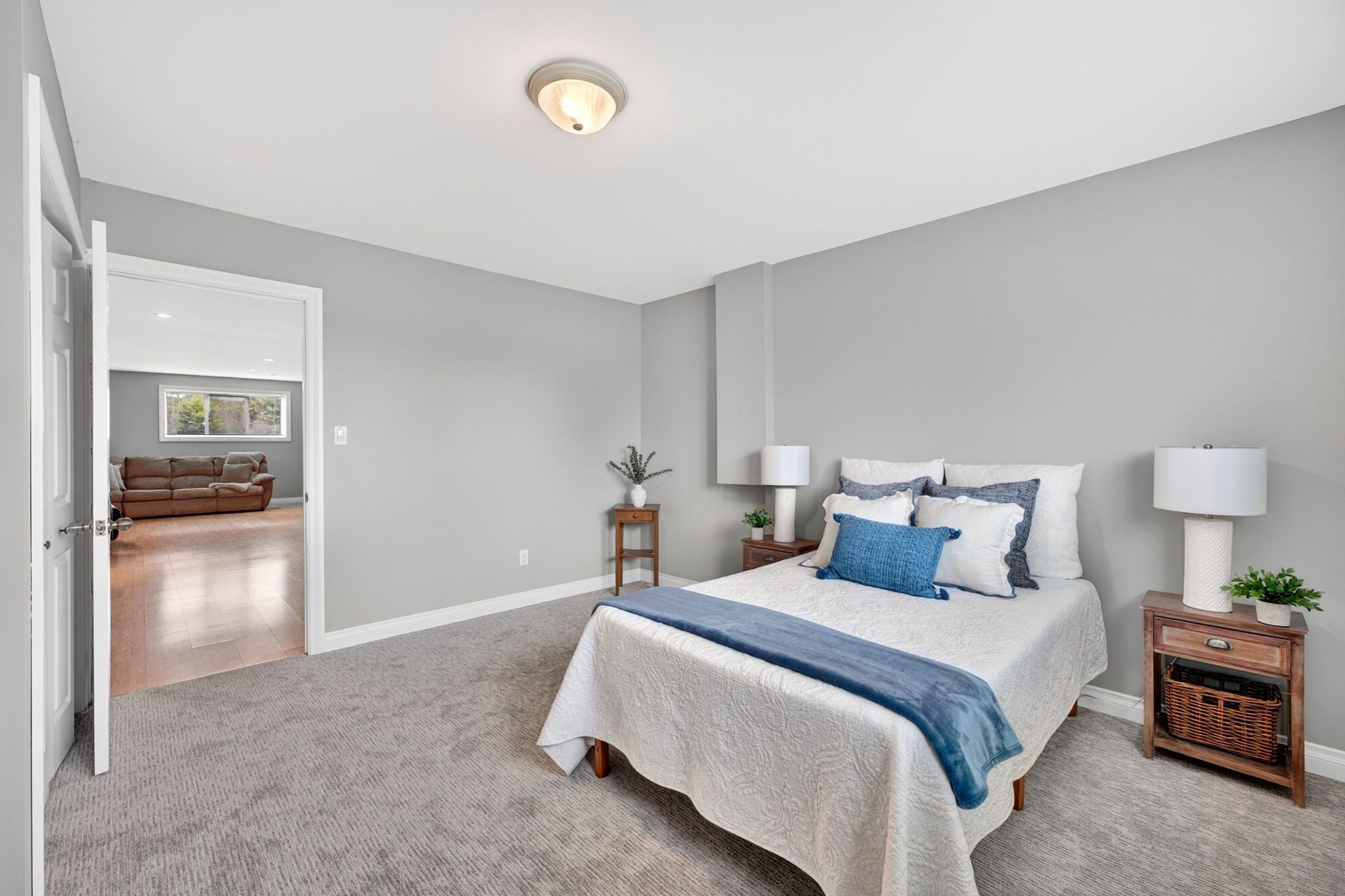 • Finished basement includes recreation room, extra bedroom, and ample storage.