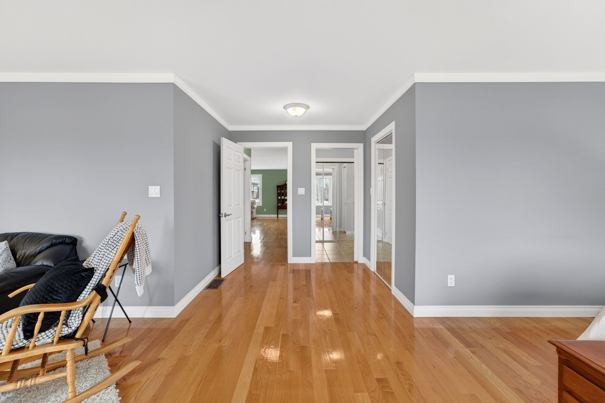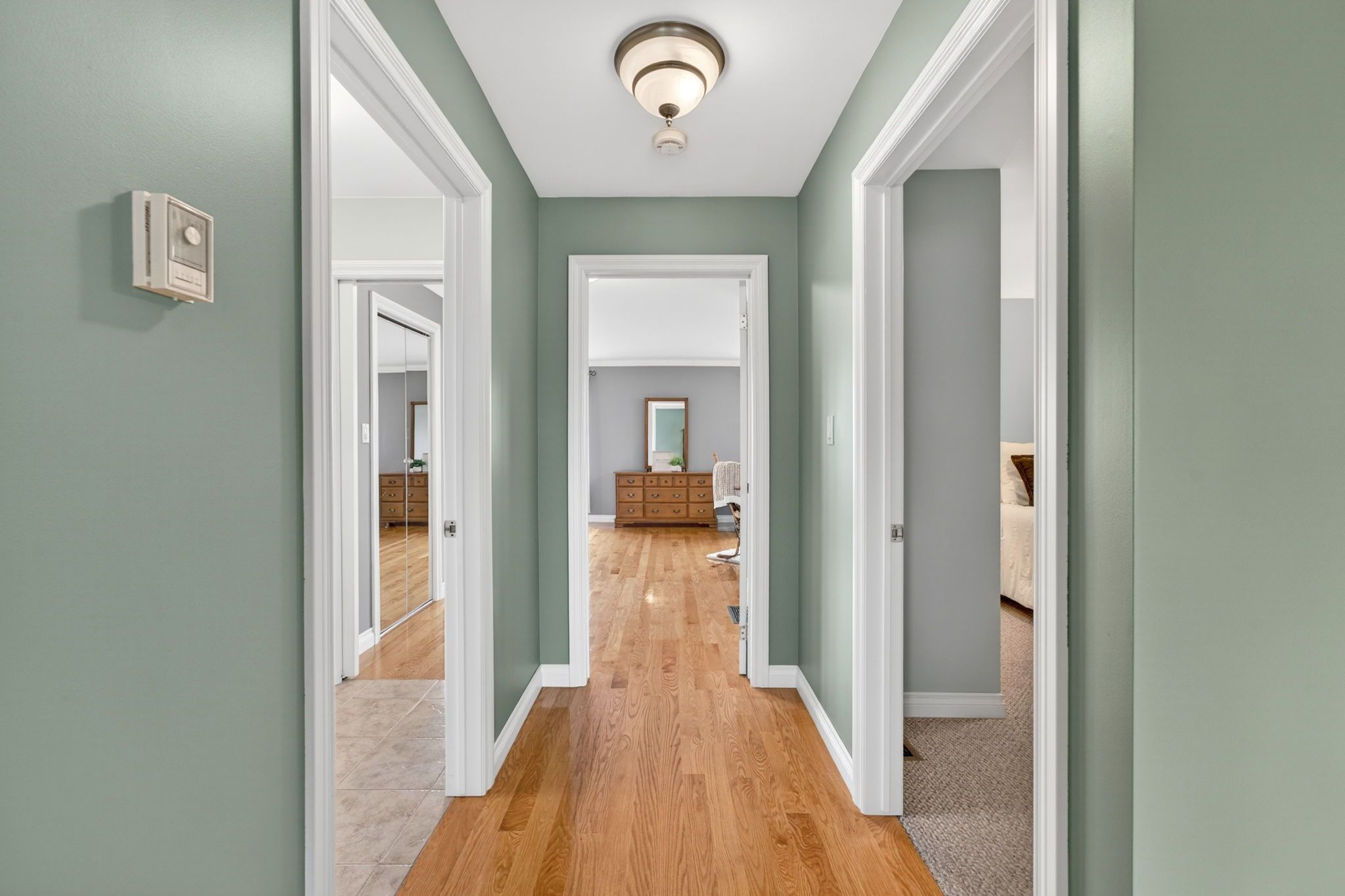 • Gleaming hardwood floors and vaulted ceilings create an open, airy feel.