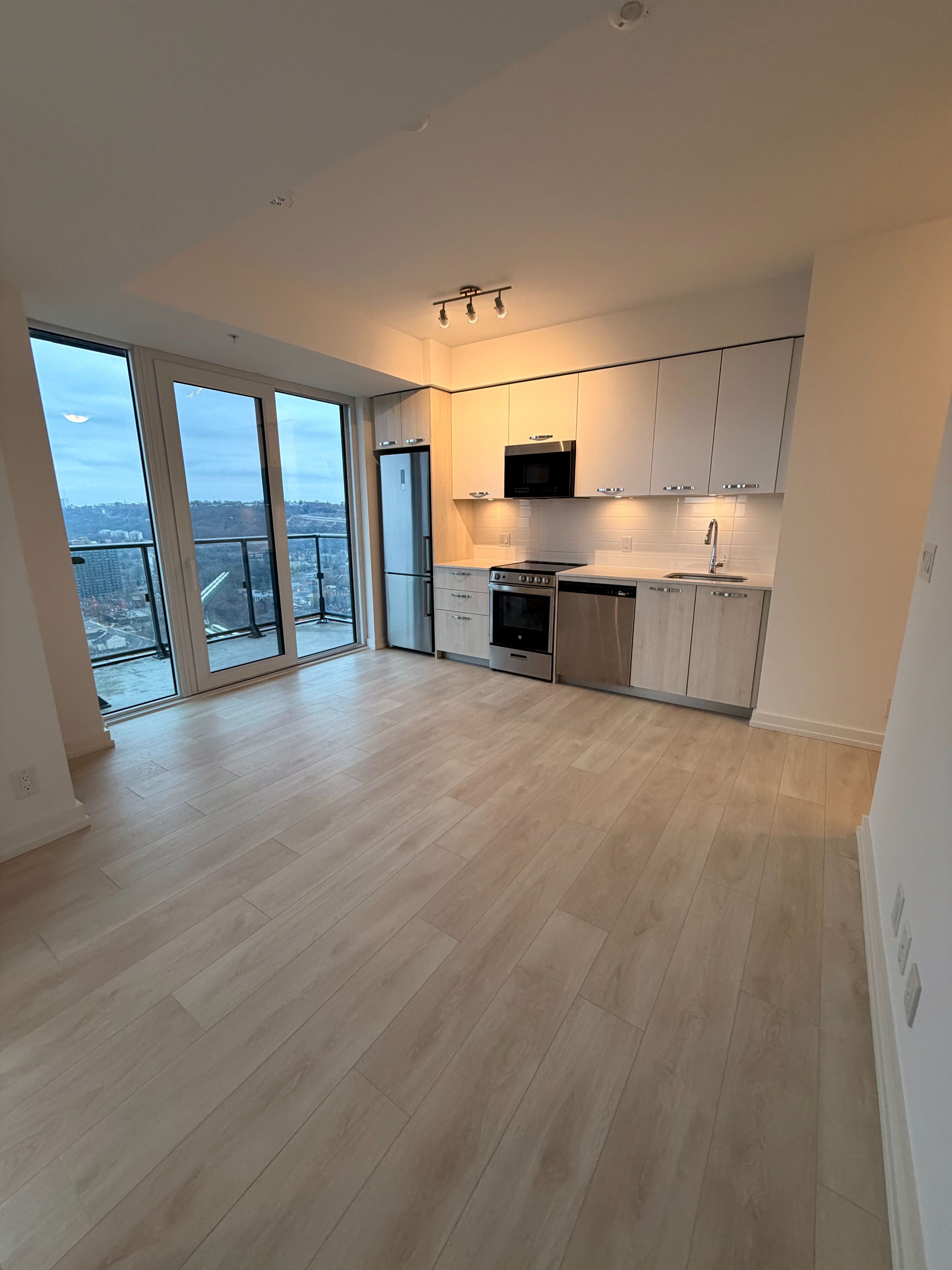 Perched on the 26th floor of the iconic 75 james street south, this corner suite offers a seamless blend of luxury, light, and breathtaking panoramic views. Floor-to-ceiling windows wrap the space, showcasing stunning lake views from both bedrooms, while the living area and balcony capture beautiful sunrises over the escarpment. A second private balcony off the primary bedroom provides a peaceful retreat overlooking the water. Inside, elegant finishes define the home. The sleek modern kitchen features stainless steel appliances, under-mounted cabinet lighting, and contemporary detailing, flowing into a bright open-concept living and dining area-ideal for entertaining or relaxing above the city. Residents enjoy over 16,000 sq ft of premium amenities, including a rooftop terrace with 270 views, gazebos, fire pits, and a full bbq station. Additional features include a movie theatre, party rooms, games room, kids' play area, pet spa, and 24/7 concierge service. Unbeatable location directly across from the hamilton go station-just steps away. Positioned on main street's main transit corridor and moments to vibrant james street, top dining, the waterfront, scenic trails, and the td coliseum. Experience elevated city living where design, convenience, and views come together.