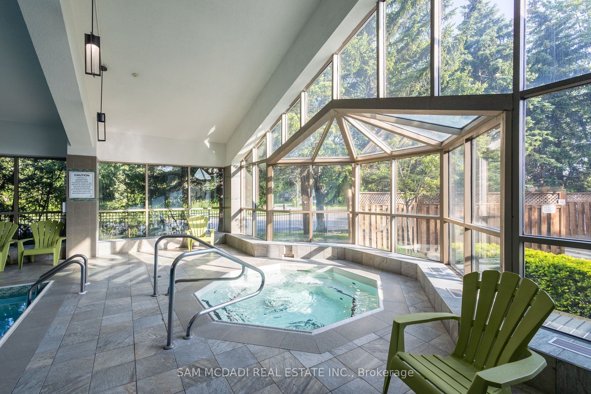 Own instead of renting and start investing in your future with this bright, spacious corner suite in a well cared for and welcoming condo community. This sun filled, open-concept layout is ideal for both everyday living and entertaining. The move-in-ready unit features two bedrooms, two full bathrooms, and hardwood flooring throughout. The updated kitchen boasts stainless steel appliances, a stone backsplash, pot lights, and a breakfast bar that flows seamlessly into the dining and living areas, creating a warm and inviting atmosphere. The bright solarium provides valuable extra space, ideal for working from home, a kids' play zone, or a relaxing retreat, whatever suits your needs! The primary bedroom includes a generous closet with custom organizers and a private 4 piece ensuite with a bathtub and separate shower. The second bedroom boasts large windows and a closet. Bonus! Maintenance fees include heat, hydro, water, vip cable/internet with rogers, central air conditioning, building insurance, parking and common elements. Additional conveniences include ensuite laundry with extra storage, one parking space and a private storage locker. Residents can take advantage of an impressive selection of amenities such a a fitness centre, indoor pool, sauna, party room, guest suites, visitor parking, on site security and even a car wash! The building has been updated with modernized lobby and hallways, and offers security coverage during evenings, weekends and holidays. Ideally situated just steps from public transit, shopping, dining, schools, the future lrt, this location delivers everyday convenience. Quick access to major highways, mississauga hospital, downtown mississauga, square one, port credit, and surrounding hubs makes commuting and errands effortless.