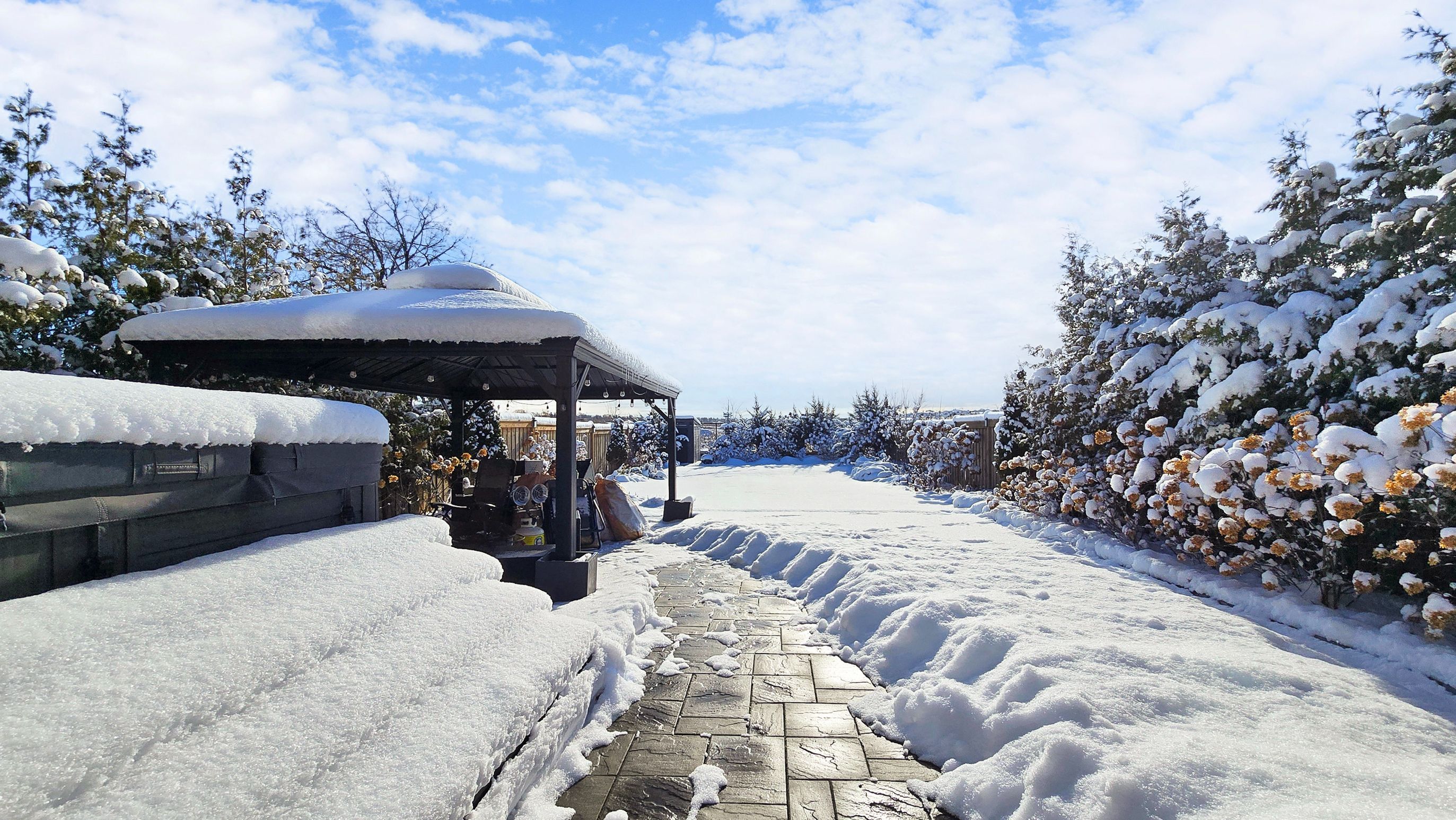 • Private backyard retreat with interlocked patio, gazebo, and hot tub.