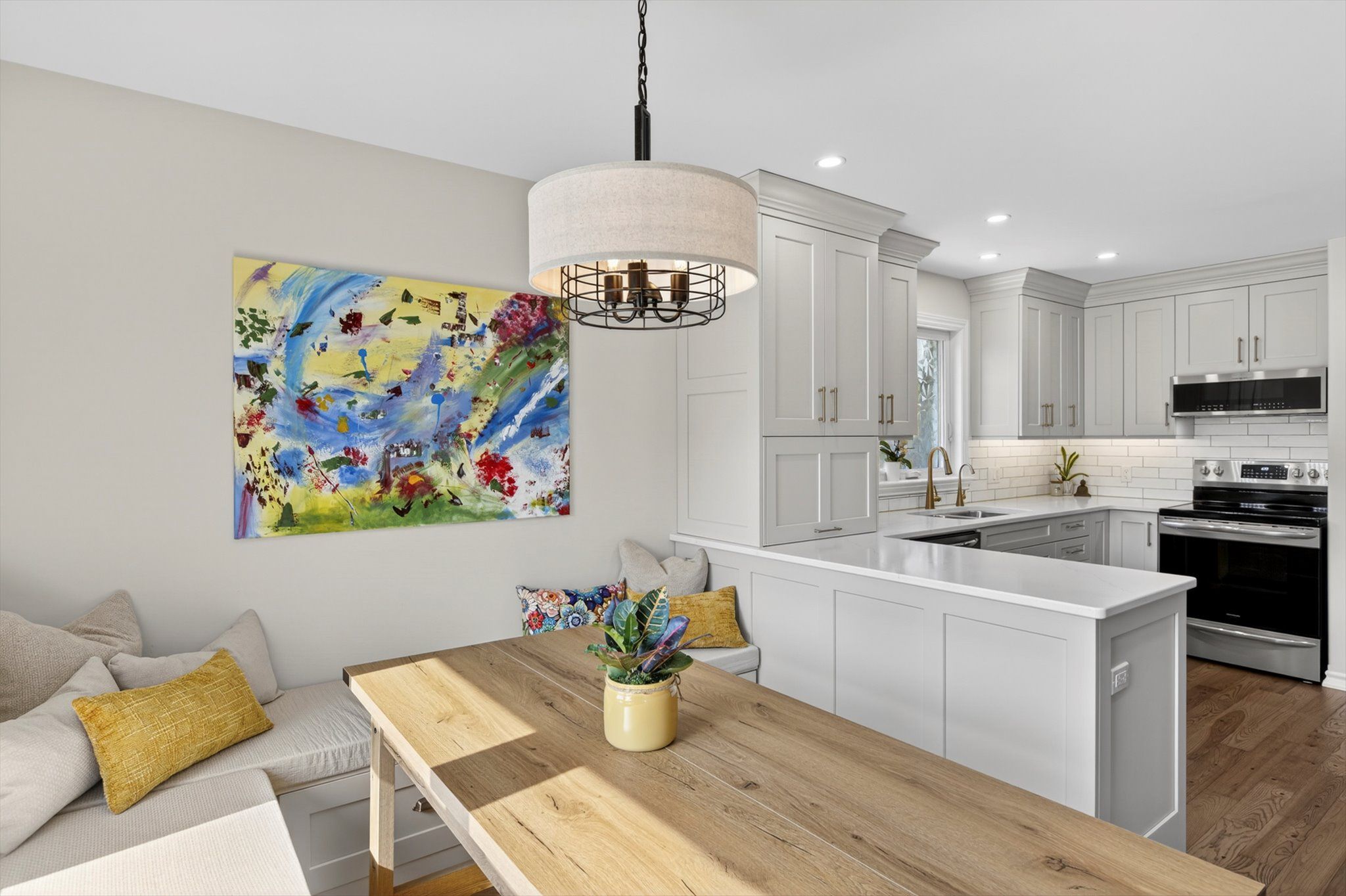 • Bright open-concept living area with a newly installed kitchen.