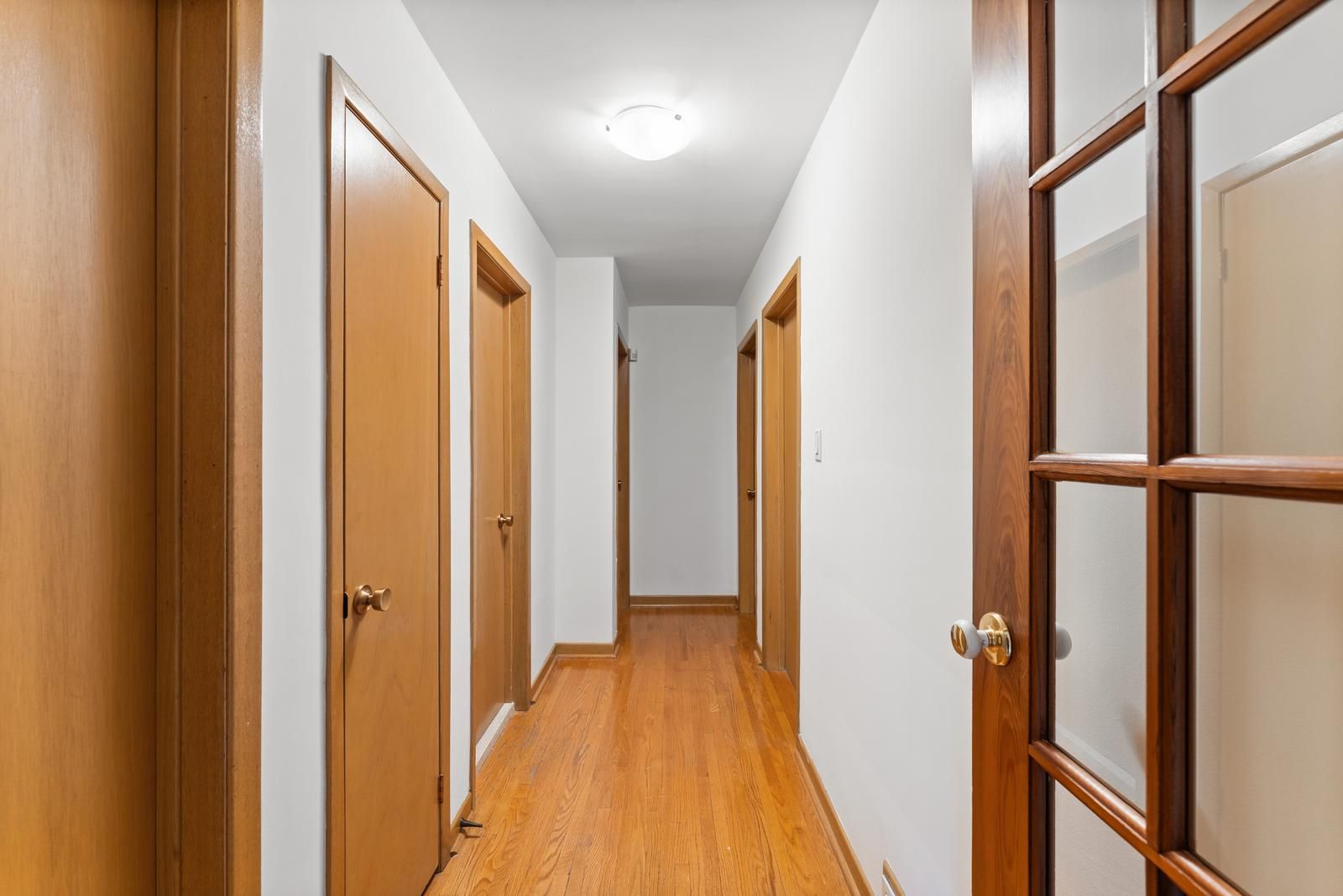 Welcome to this beautiful detached bungalow nestled in a sought-after community, hitting the market for the first time. This residence features gleaming hardwood flooring throughout the main living areas, freshly painted interiors that radiate warmth and elegance, and newly installed flooring in the spacious basement. This home has a separate entrance to the lower level, it offers excellent flexibility - ideal for additional income, in-law accommodation, or truly accommodating a two-family scenario. Surrounded by similar homes in the area, this is a rare opportunity!