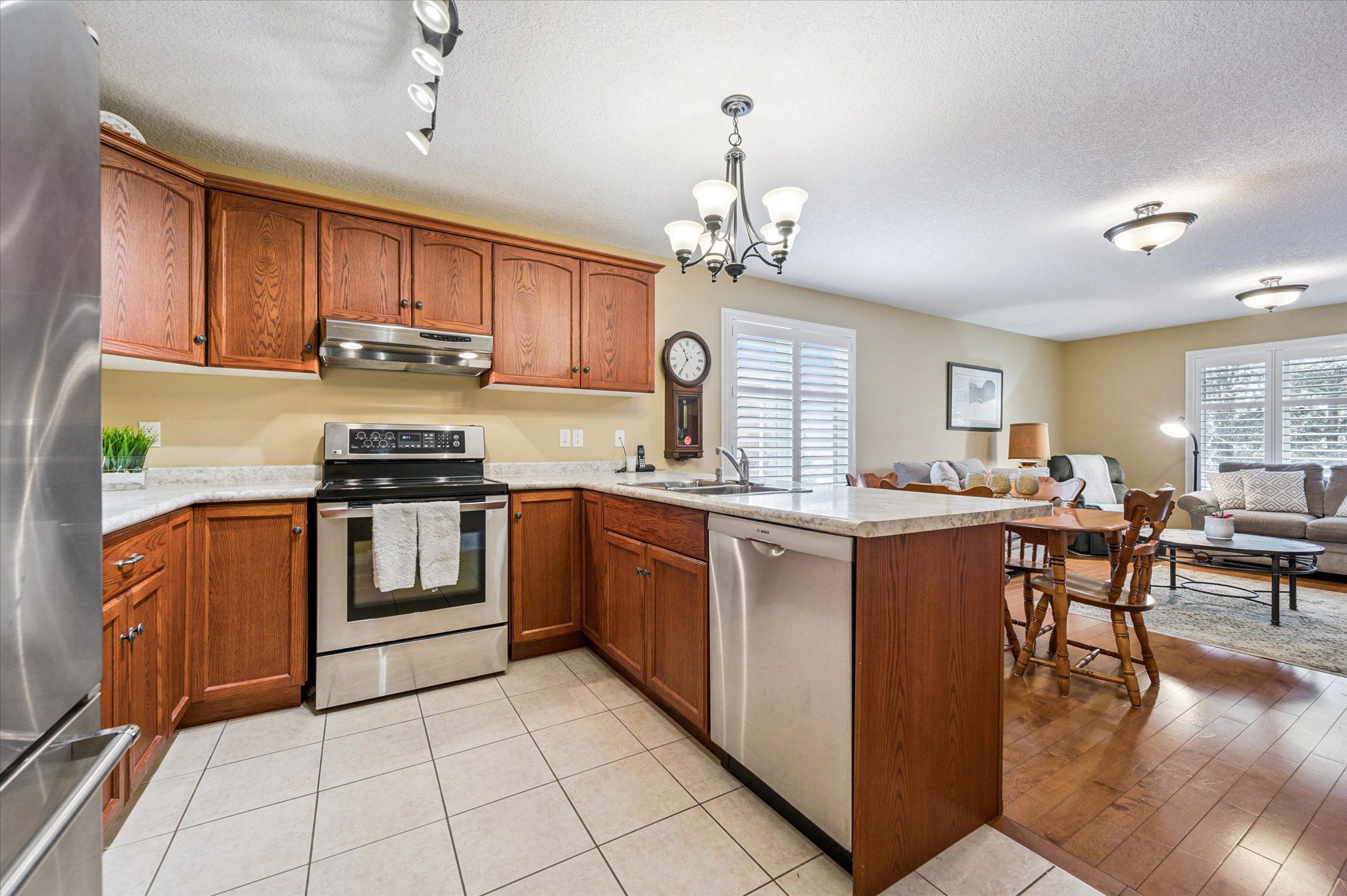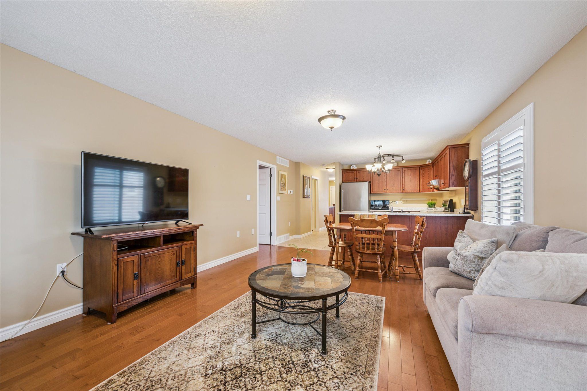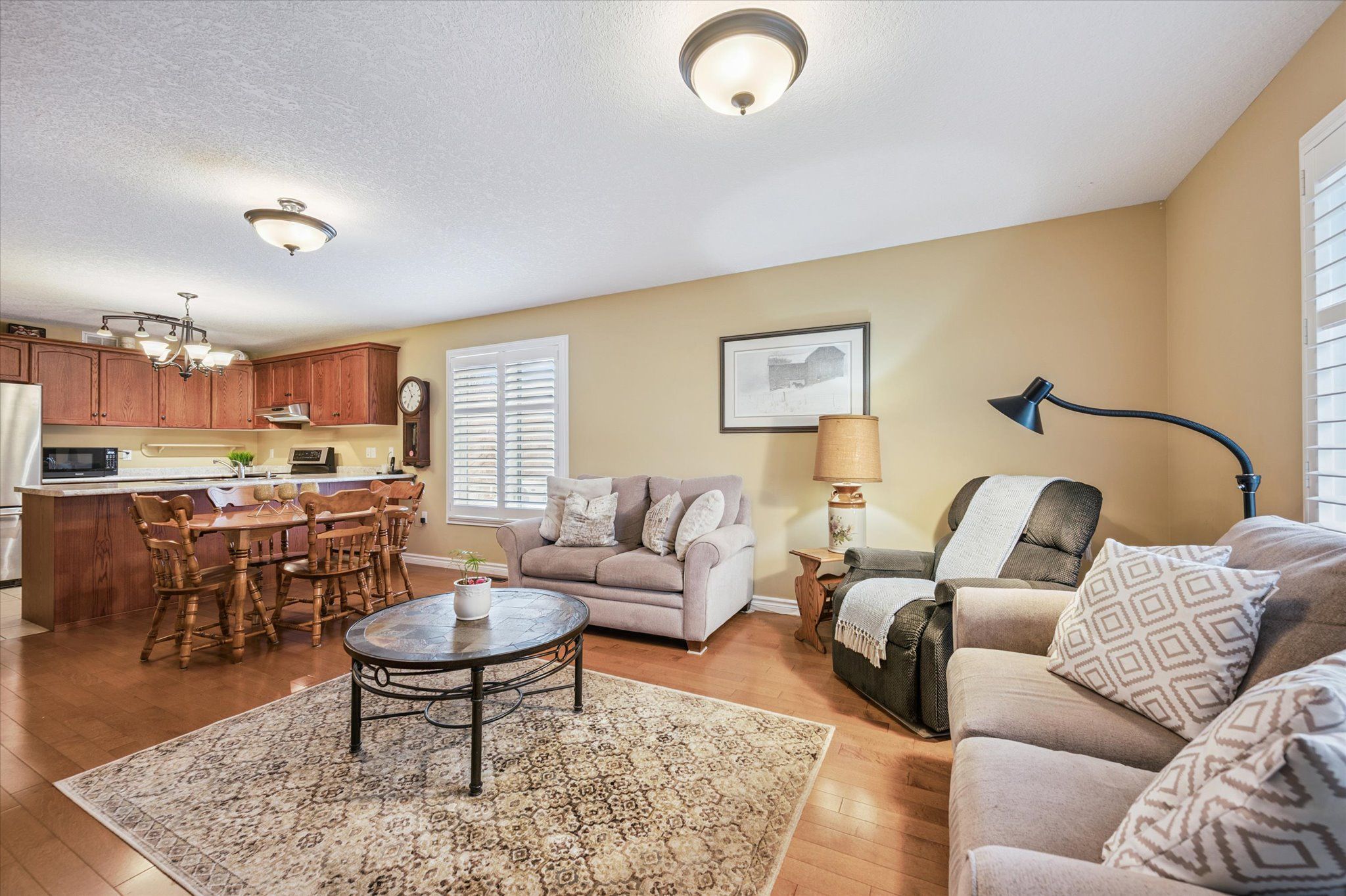 Lovely keating-built bungalow townhome offering exceptional quality and a functional layout for the discerning buyer. This well-maintained home features gleaming hardwood and ceramic flooring throughout the main level. The spacious primary bedroom includes a private ensuite bath and walk in closet. Open-concept kitchen and dining area flow seamlessly into the inviting family room with a walkout to a private deck overlooking the rear yard and the scenic cataract trail beyond. Additional main-floor features include a formal living room and a convenient laundry/mudroom accessed off the attached single-car garage. The finished lower level provides excellent additional living space and features a generous second bedroom, 3-piece bathroom, large recreation room with walkout to the backyard, and a substantial utility room offering abundant storage. Freehold ownership means no monthly fees. Ideally located within walking distance to the shops and restaurants of historic downtown elora and the beautiful grand river. Quality homes like this rarely come to market, book a showing today.