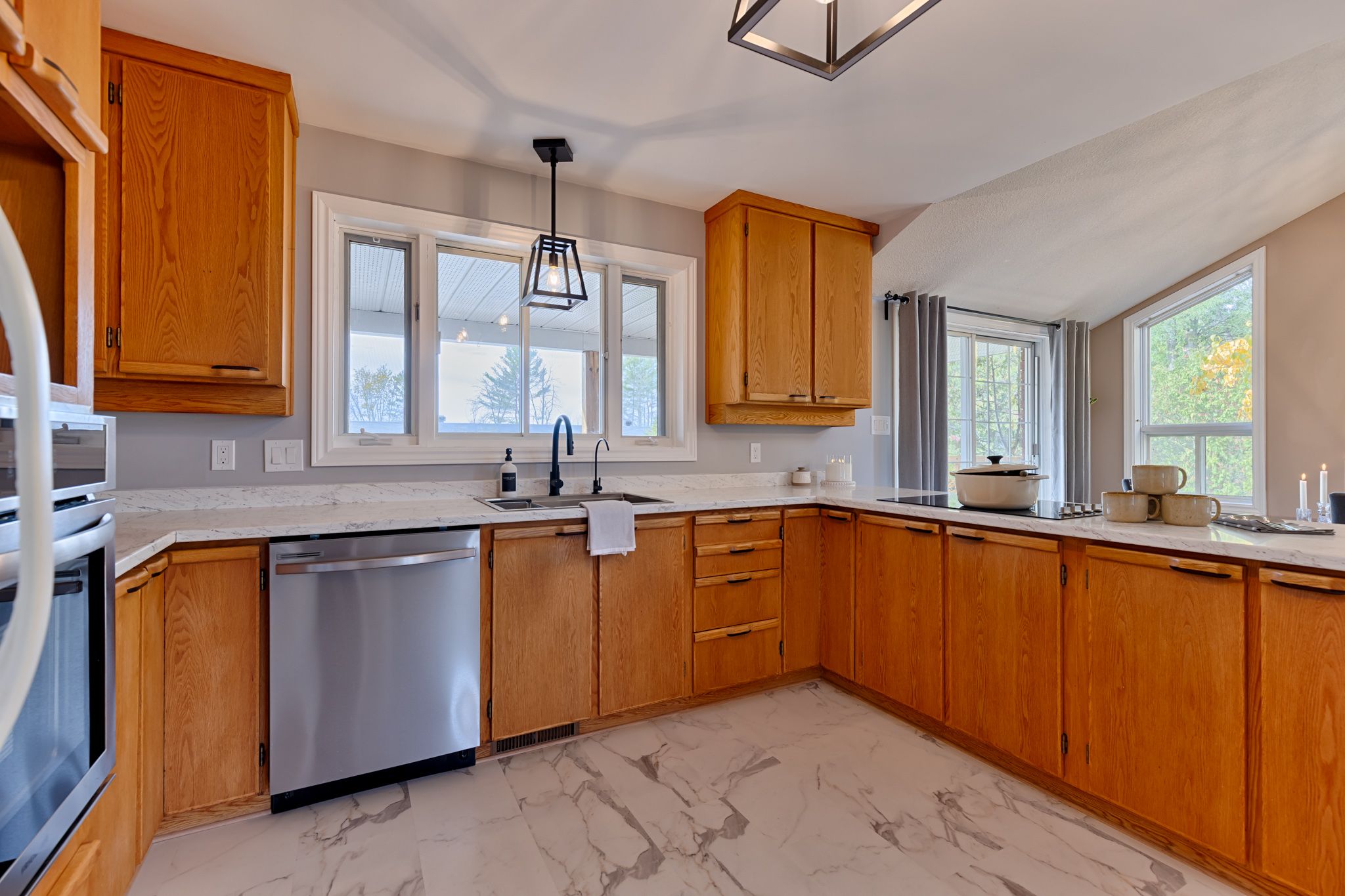 Where home meets opportunity! Set on 1. 6 acres, this all-brick bungalow blends timeless style with the freedom to live, work, and play all in one inviting space. Step inside and feel natural light pour through large windows, brightening every corner of the open-concept main floor. The kitchen, with its solid wood cabinetry, new cooktop, and built-in oven, flows effortlessly into the dining and living areas-perfect for gathering with family or entertaining friends. From the dining area, step out the patio door to your private backyard, ideal for morning coffee or unwinding at day's end. Three bedrooms and one and a half baths, along with main floor laundry, make everyday living simple and efficient. The lower level is designed for relaxation and creativity. The family room, complete with a freestanding gas fireplace and built-in wet bar, offers a cozy space for movies or evenings with friends. Convenient access from the garage keeps the main floor clutter-free. Beyond this, a versatile bonus room with double garden doors leading outside provides endless possibilities, a games area, hobby space, or retreat for car or motorcycle enthusiasts. Outside, the property continues to impress. A 5-bay garage, with one bay finished and heated, offers exceptional space for vehicles, tools, or creative projects. The remaining bays provide excellent dry storage and potential for further finishing. Behind it, a secondary outbuilding offers even more room for large item storage ideal for an rv, equipment, or workshop expansion. With general commercial zoning, this property opens the door to endless possibilities: a home based business, hobby shop, or studio, all without sacrificing the peace and space of country living. It's the kind of property that lets your family grow, your work thrive, and your dreams expand all in one address. Because here, you're not just finding a home... You're finding room to live the life you've been building.