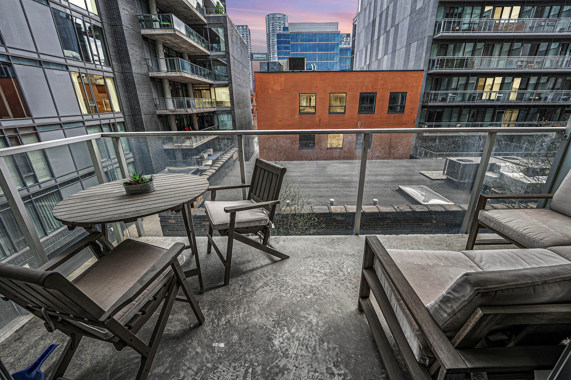 • Private terrace with city and sunset views, ideal for relaxation.