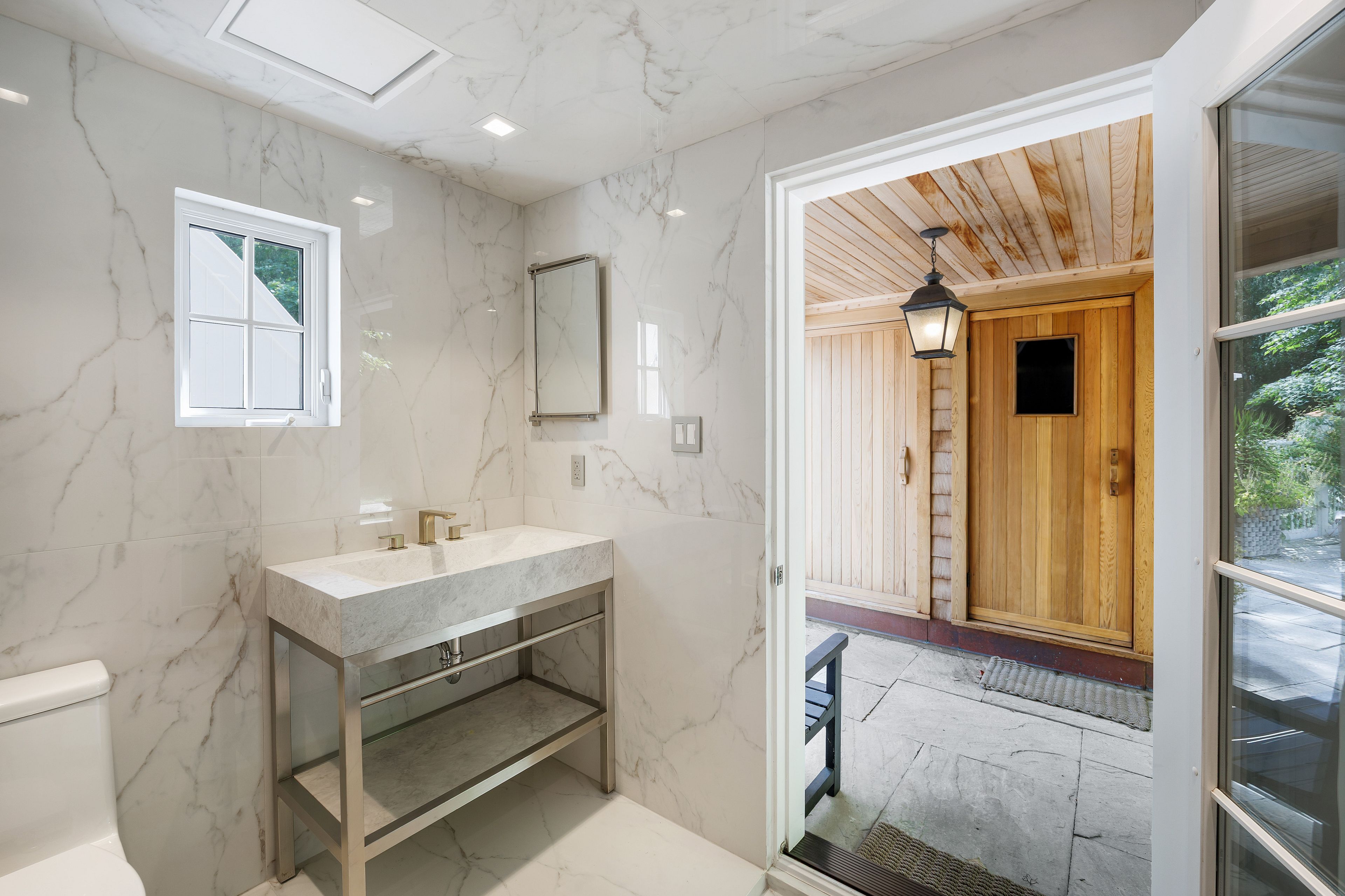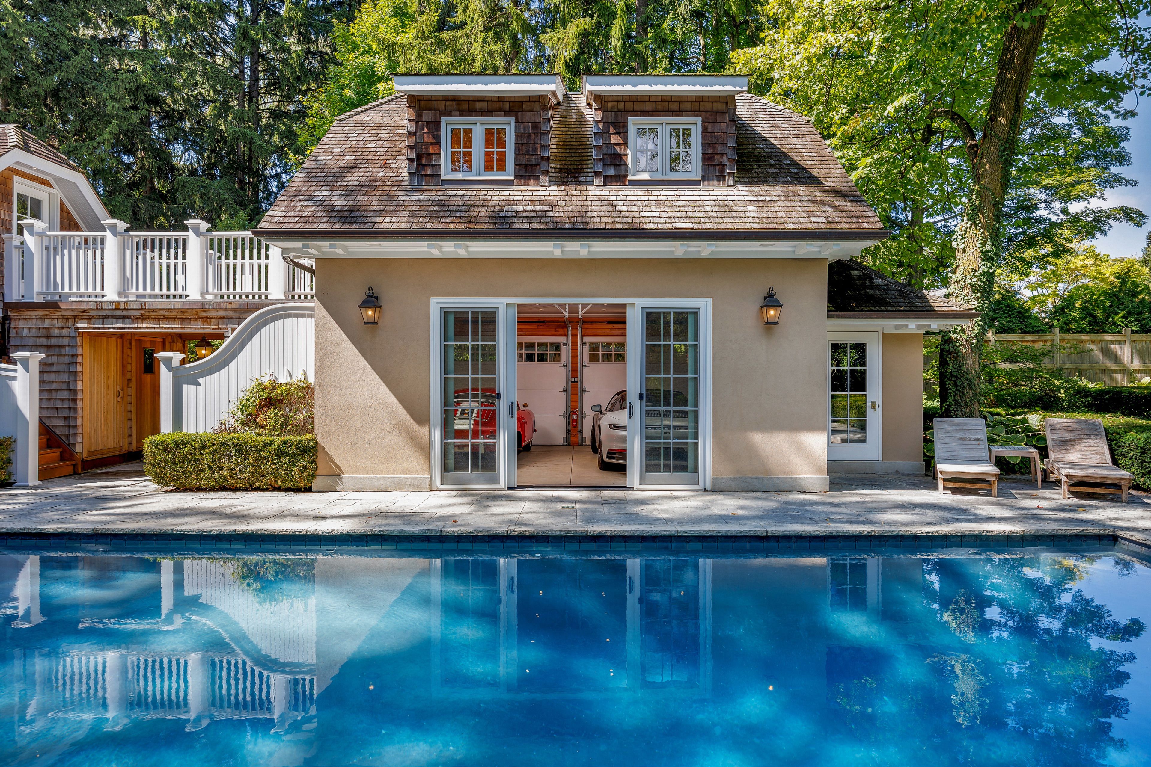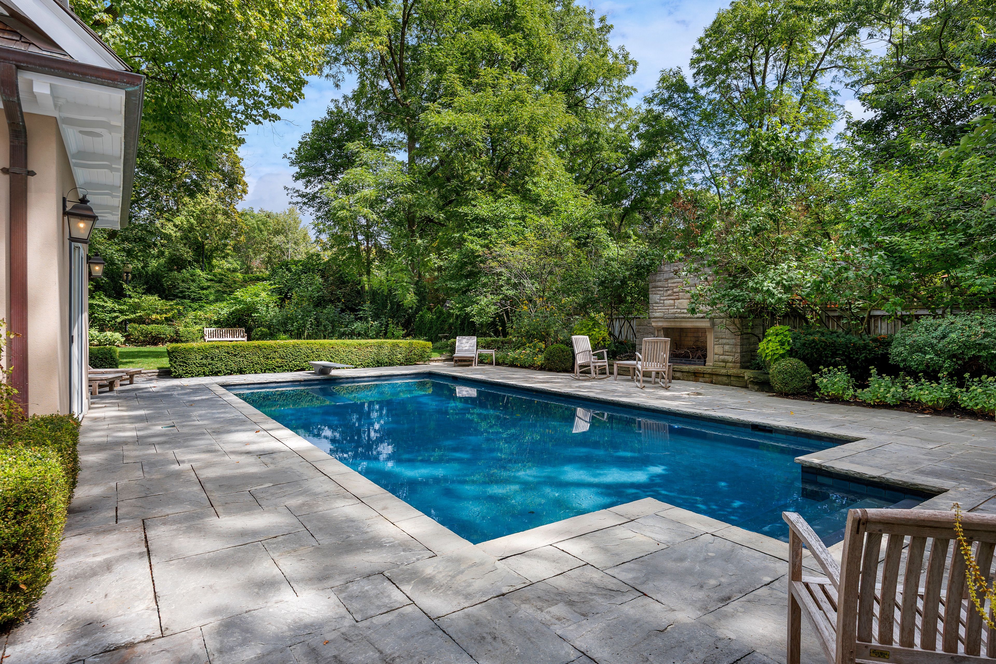 • Stunning grounds with a saltwater pool, outdoor shower, and fireplace.