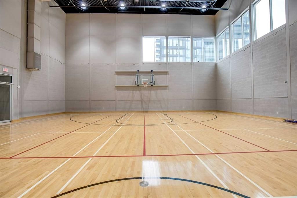 • Building features an indoor pool, gym, and various recreational facilities.