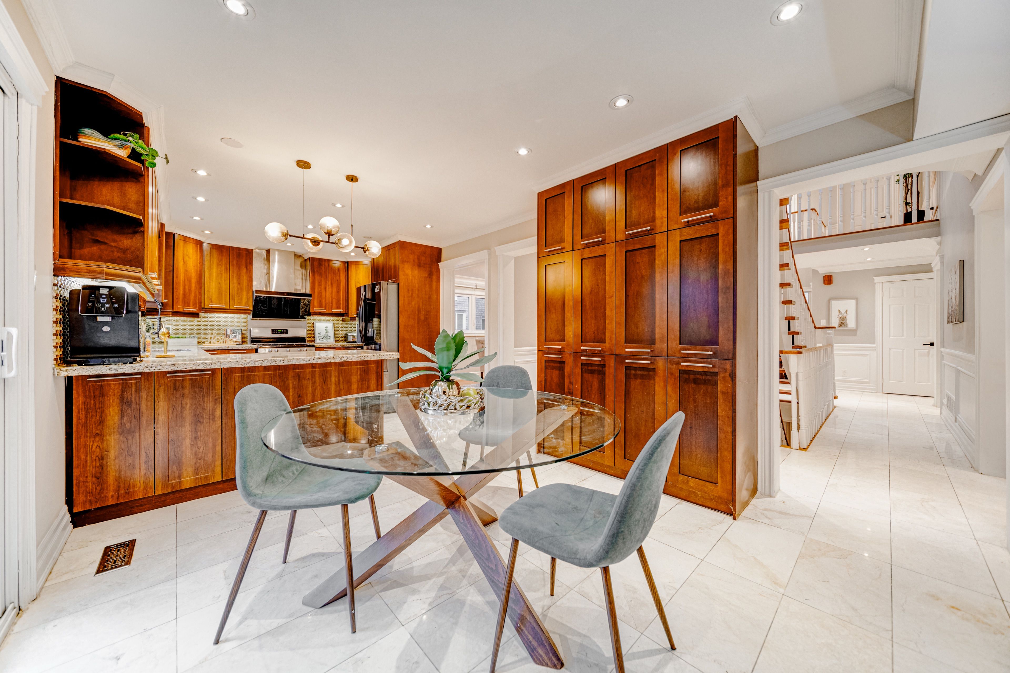 For families seeking the perfect home in the heart of the beverley glen community, 75 rockwood crescent is a rare find that balances luxury with traditional needs. This 3,570 sq. Ft. Estate offers a spacious 5+3 bedroom layout, ideal for a growing family. The main floor is designed for hosting, featuring formal living and dining areas adorned with crown moldings and pot lights. The cinematic family room and gourmet chef's kitchen-complete with stone countertops-offer the perfect setting for large holiday dinners and gatherings. A significant advantage is the main-floor executive office with a private 3-piece bathroom, providing a quiet space for work or a comfortable guest suite for visiting relatives. The second floor houses five generous bedrooms, including a primary sanctuary with a spa-like 5-piece ensuite. For those looking for long-term value, the 2021-finished basement features a separate entrance, a second kitchen, and three bedrooms-offering incredible potential for an in-law suite or rental income. Outside, the 8-car parking capacity easily accommodates guests. Best of all, you are steps from top-tier schools like wilshire elementary and westmount collegiate, and within walking distance to local parks and community hubs. Perfectly positioned near hwy 407 and the promenade, this turnkey residence offers the space, prestige, and location that families in this vibrant neighborhood truly value.