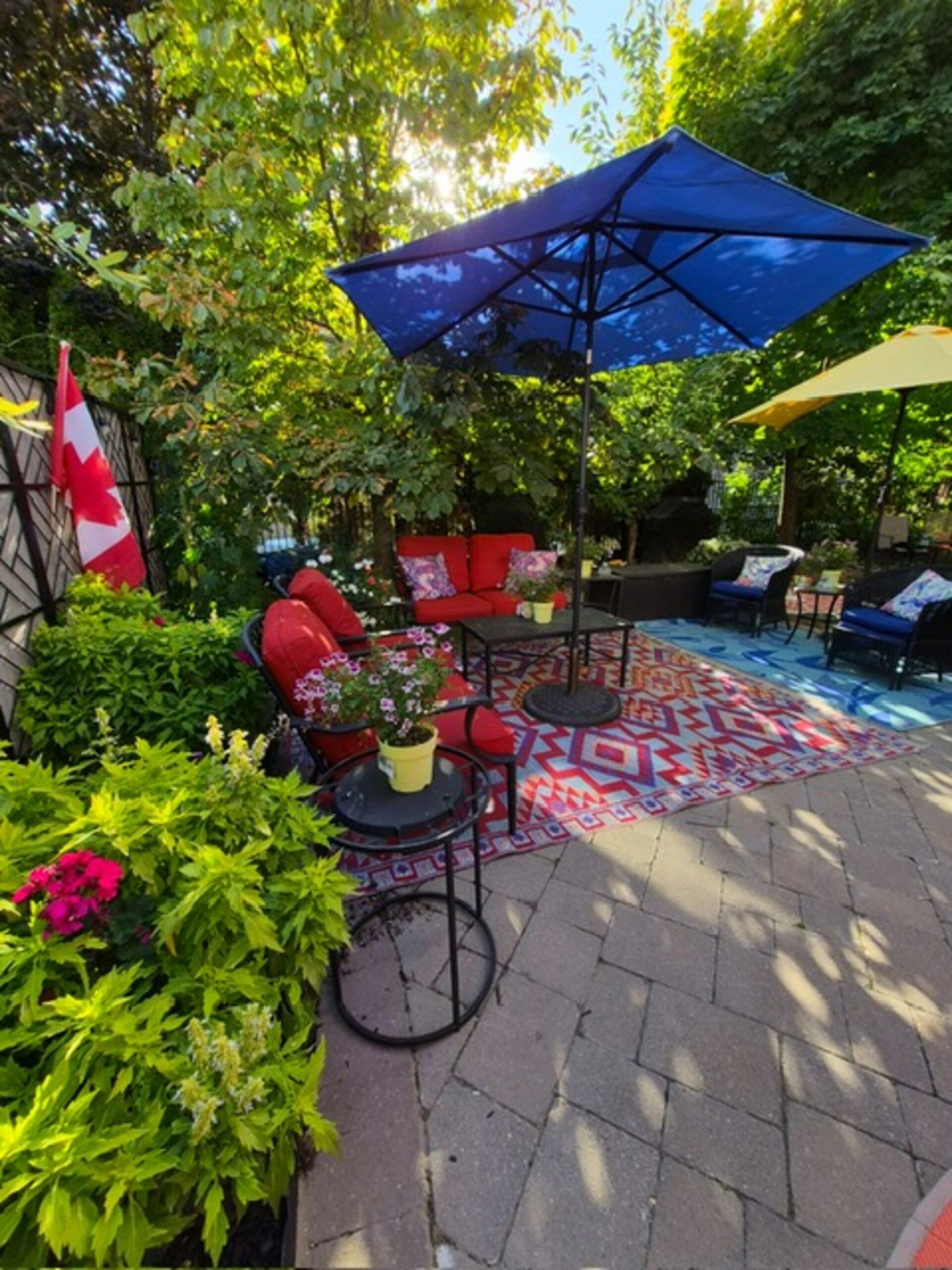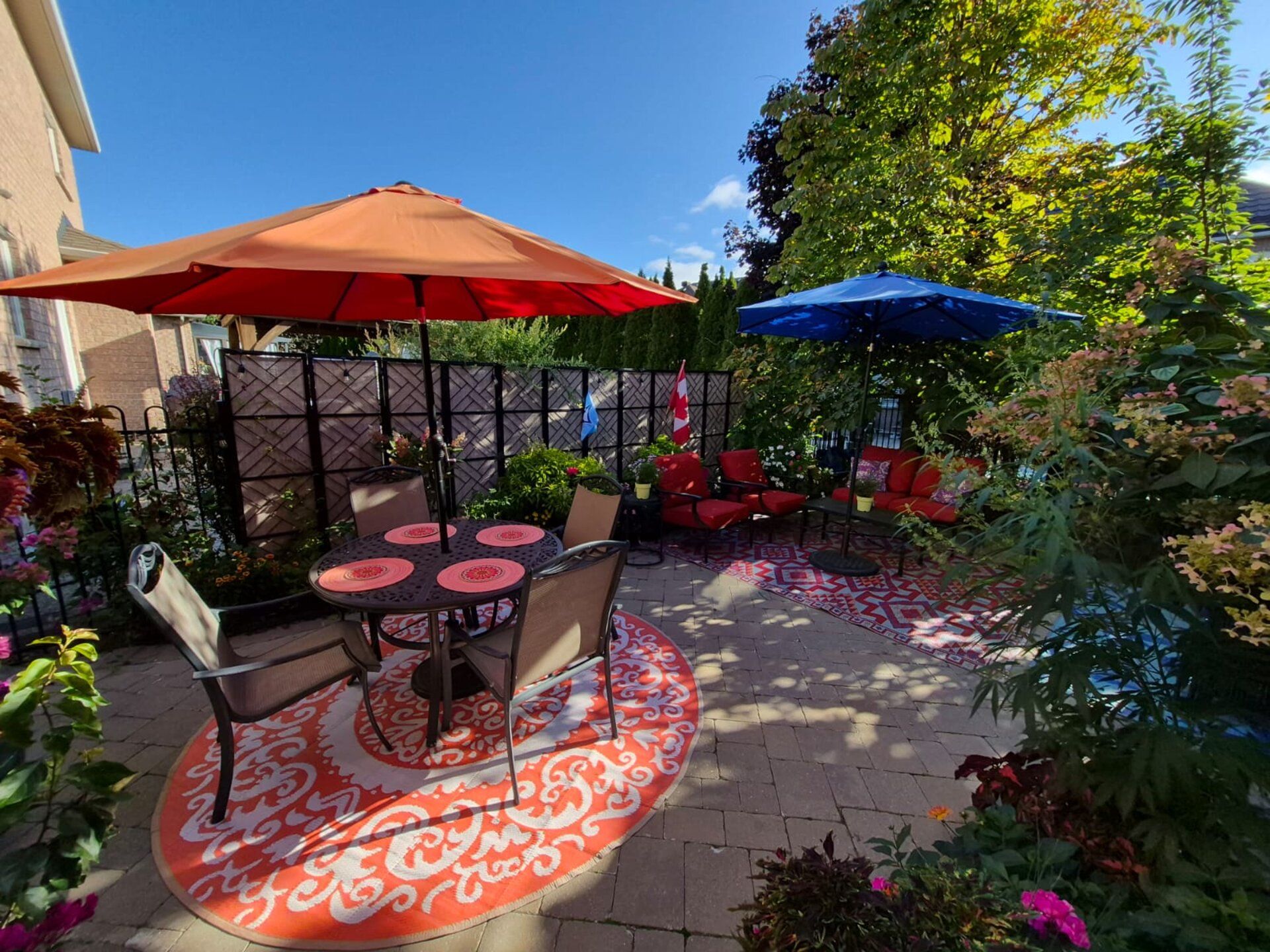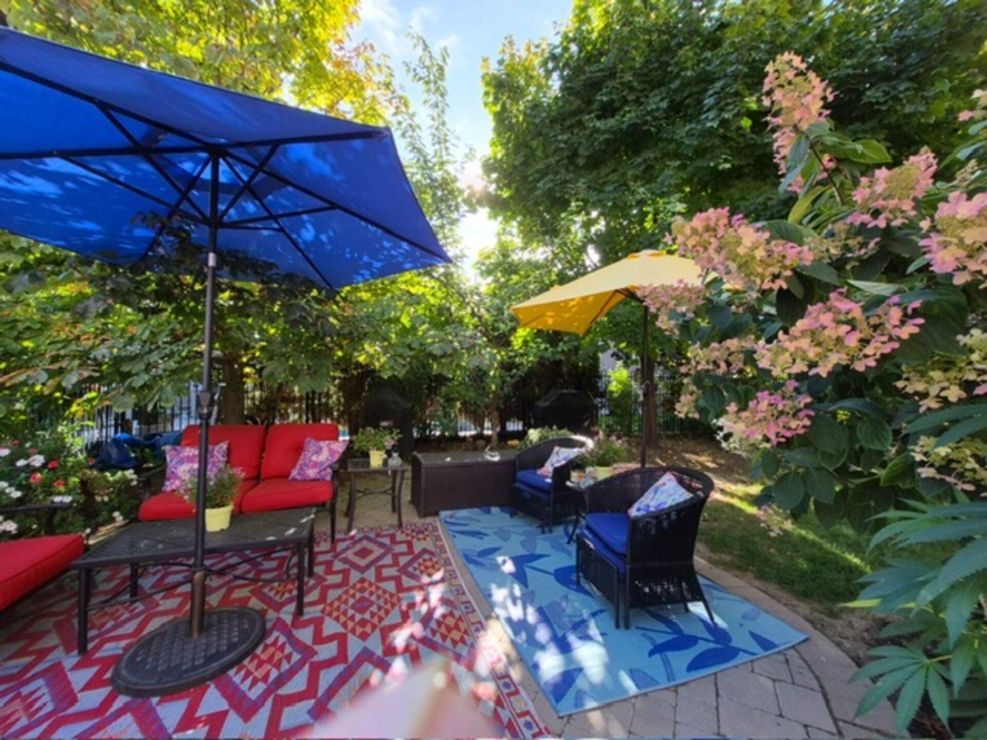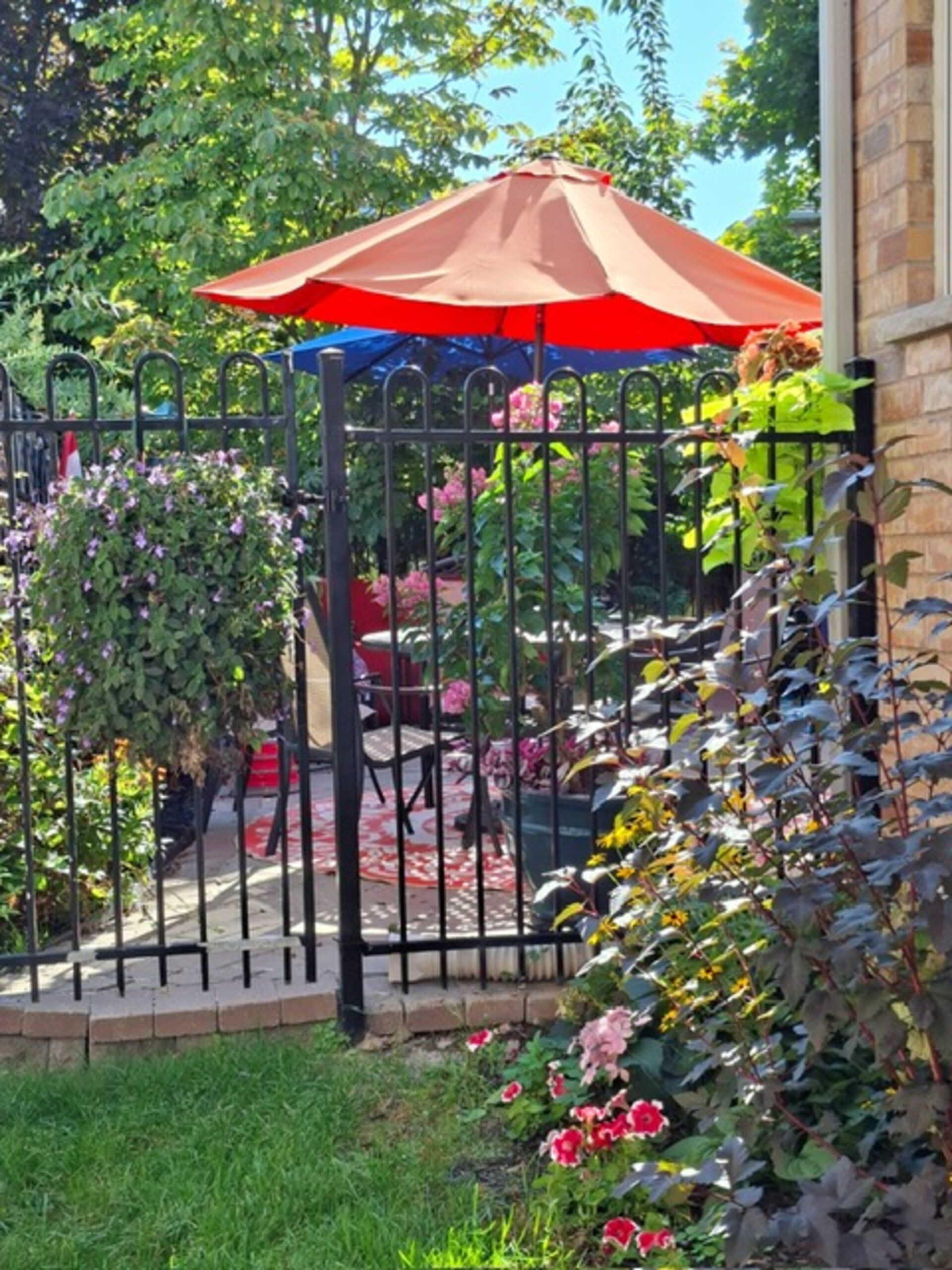 • Private backyard with perennial gardens, ideal for relaxation and gatherings.