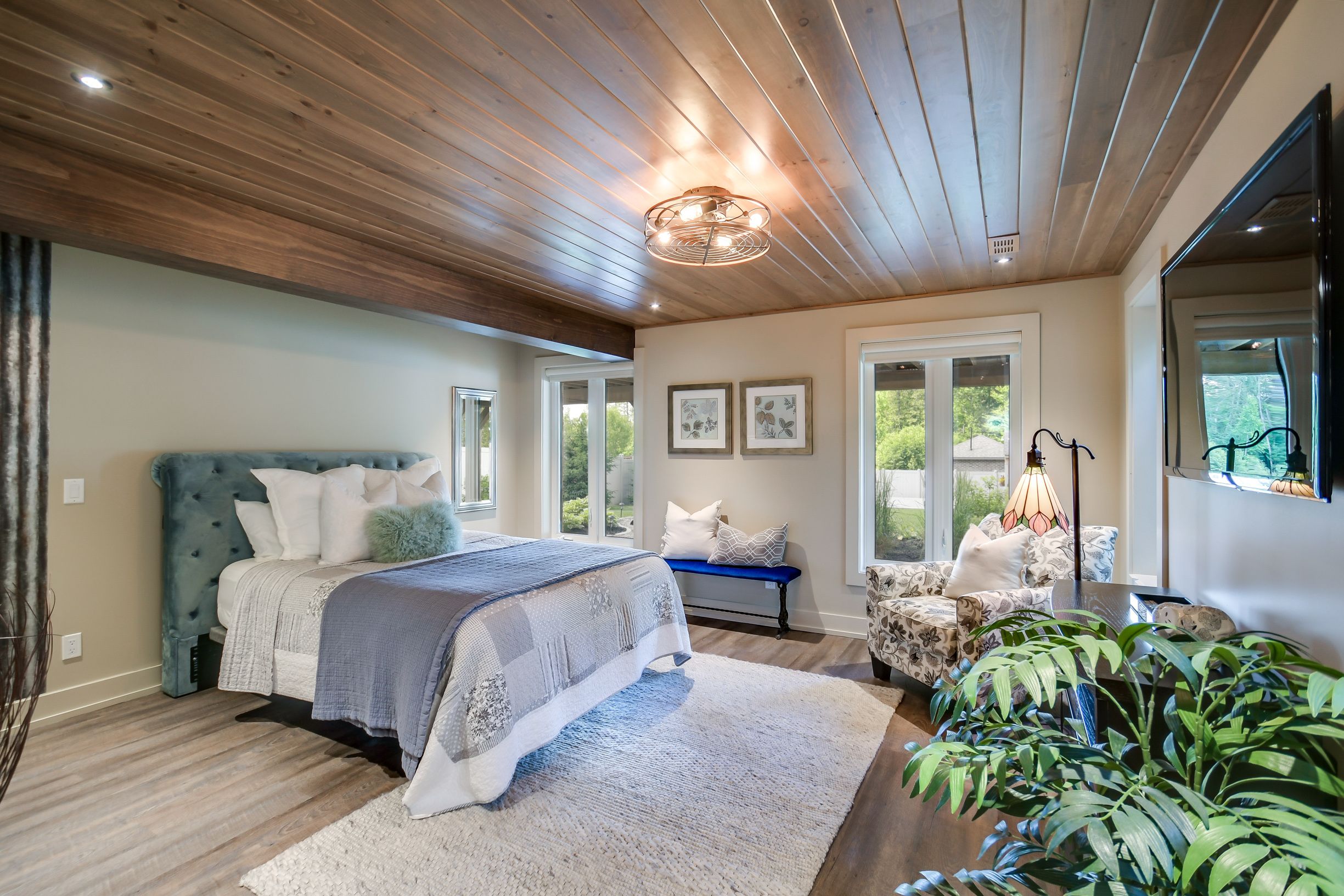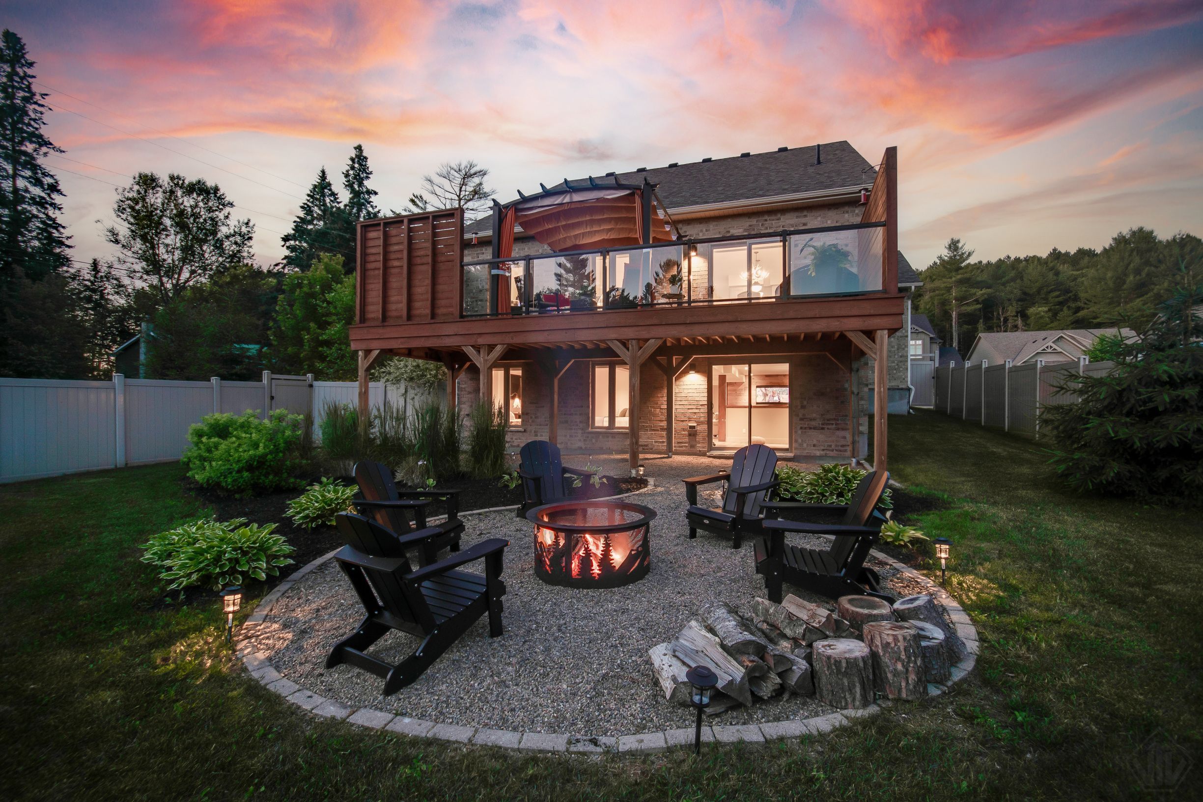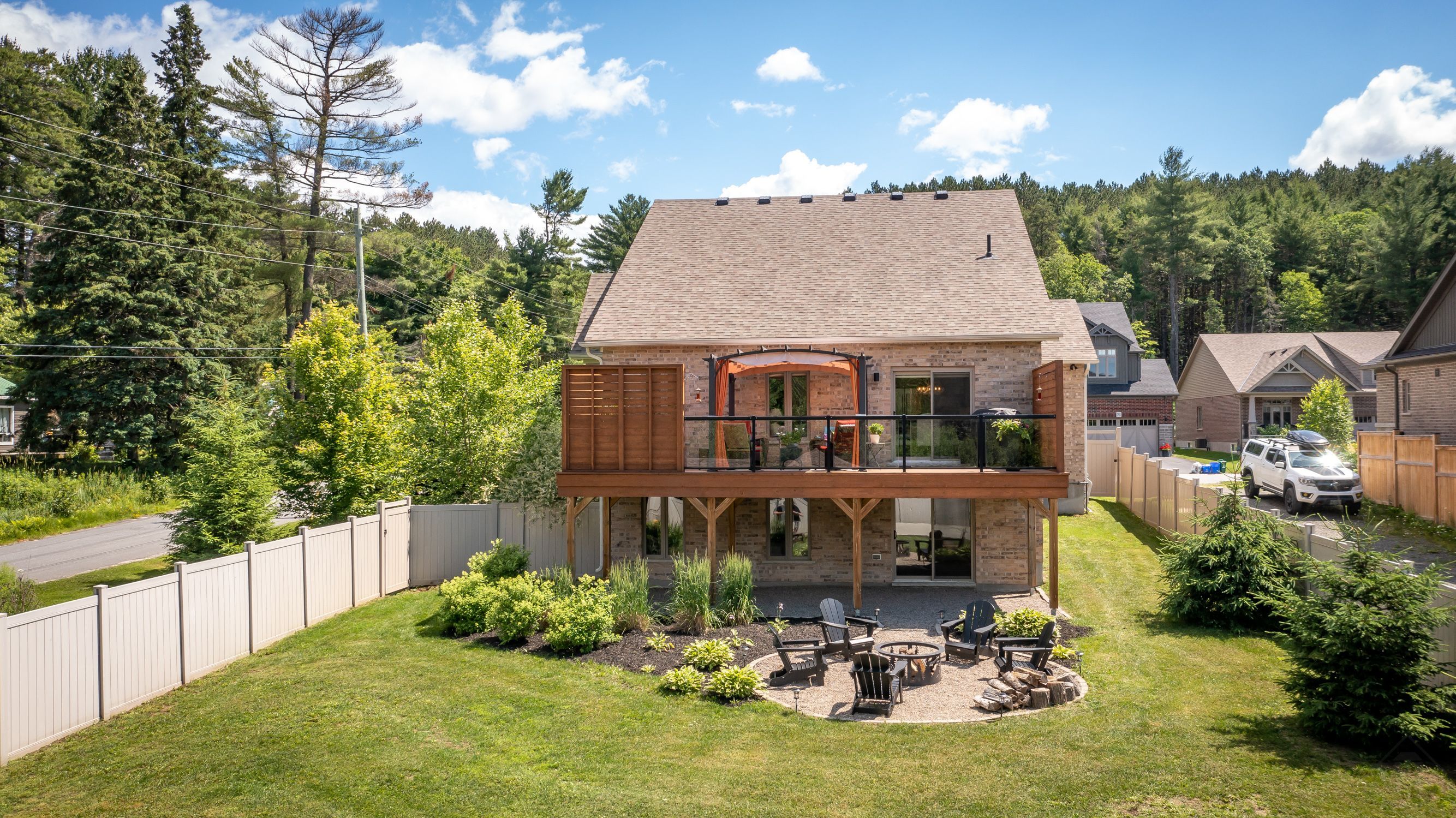 Discover this beautifully crafted all-brick bungalow offering timeless design, modern comfort, and a serene muskoka lifestyle. Perfectly positioned on a premium corner lot just steps from the huntsville golf & country club, this turn-key home blends the best of country tranquility and in-town convenience. Inside, a bright and open layout welcomes you with 9-foot ceilings, rich hardwood floors, and abundant natural light. The spacious main level features two bedrooms and 1 1/2 baths, including a primary suite with vaulted ceiling details and a clever laundry nook with folding ledge for everyday ease. At the heart of the home lies a custom chef's kitchen with granite countertops, a central island, premium kitchenaid appliances, and a gas hookup for the stove-a perfect space for cooking, gathering, and entertaining. The walkout lower level is fully finished, offering a versatile space ideal for guests, teens, or extended family. Complete with a full bathroom, oversized egress windows (56 x 24), and a 6-foot patio door, it's bright, inviting, and easily adaptable as a second living area or in-law suite. Thoughtful touches abound throughout-two gas fireplaces, 200-amp electrical service, gas bbq hookup, reverse osmosis system, exterior ring cameras, wireless keyless entry add everyday comfort and convenience. Step outside to your professionally landscaped, pool-ready backyard featuring a 32 x 15 cedar deck, custom basketball court, irrigation system, and garden shed, all enclosed by a low-maintenance vinyl fence. The charming wraparound front porch offers the perfect vantage point for morning coffee or sunset views along peaceful golf course road. With quick highway access, modern upgrades, and top-tier craftsmanship, this home offers a complete move-in-ready lifestyle-combining luxury, functionality, and muskoka charm in one stunning package.