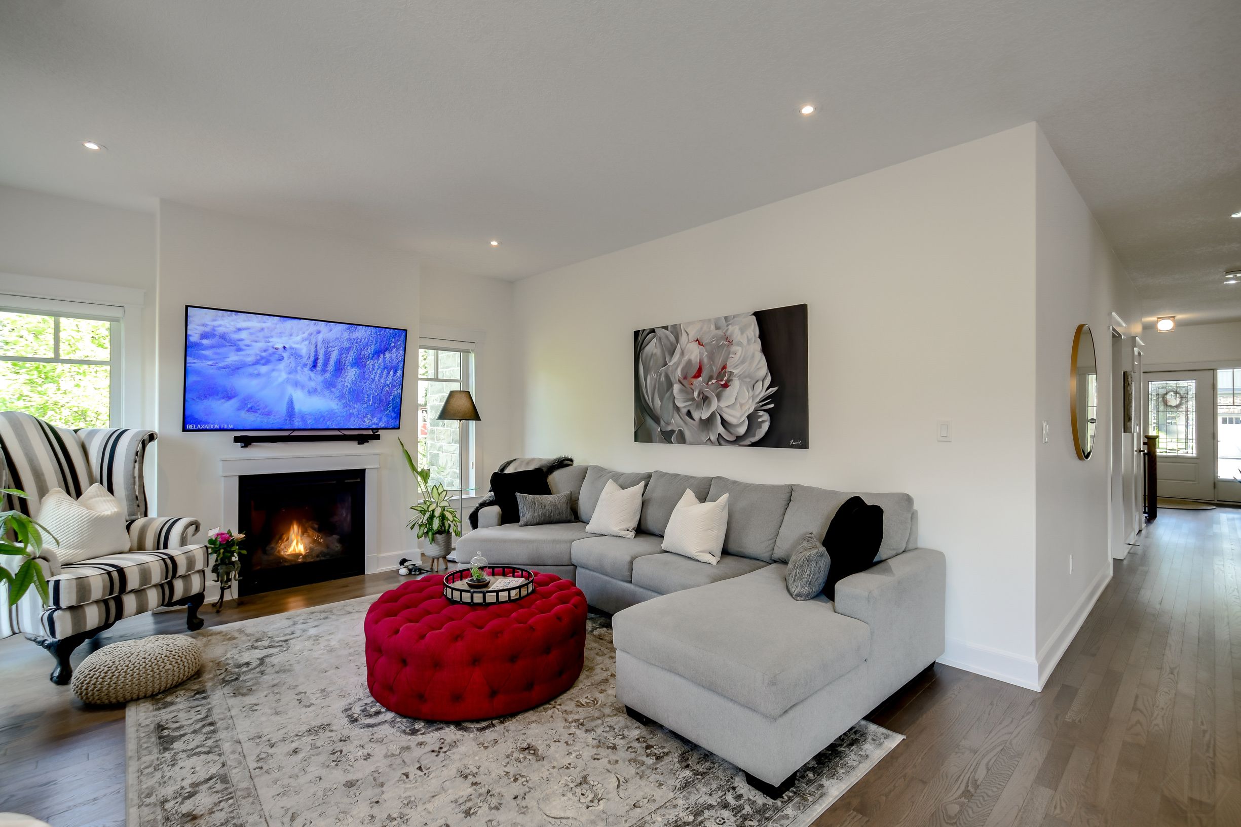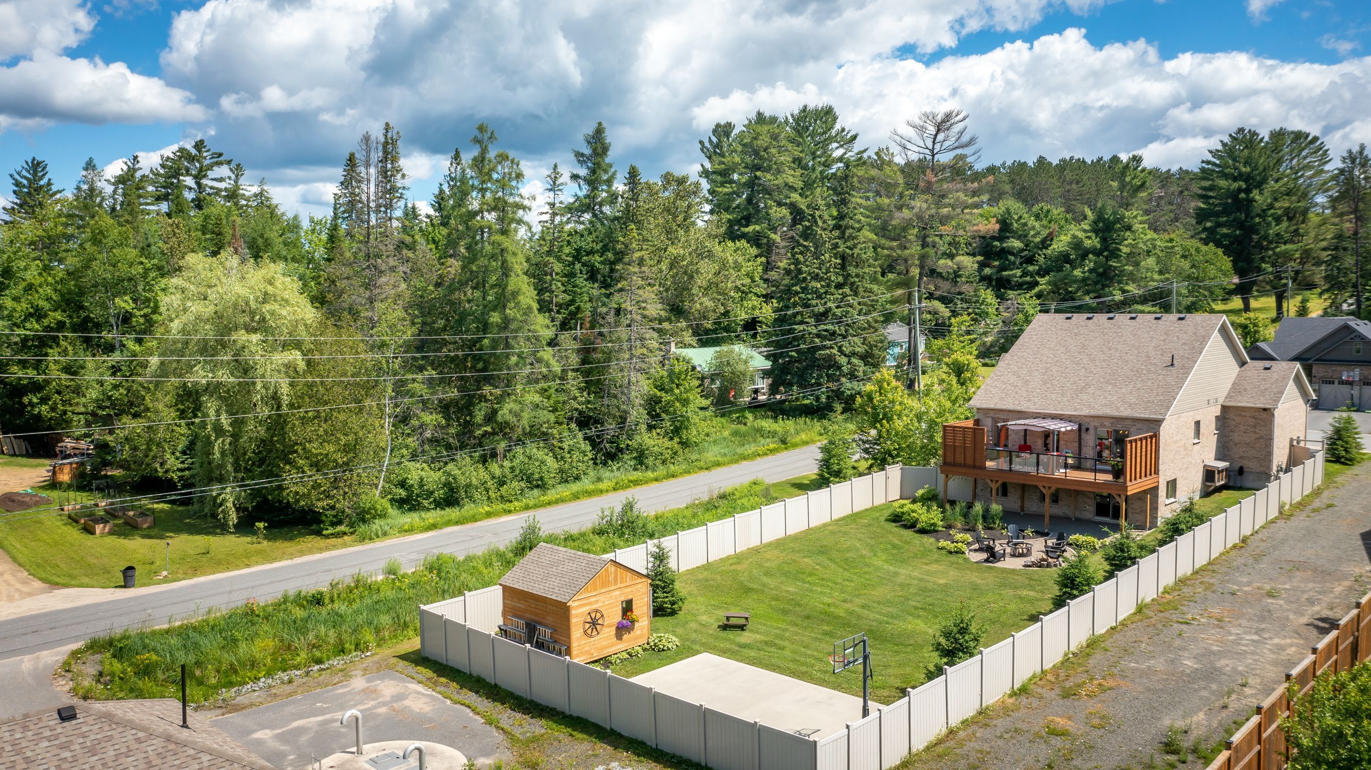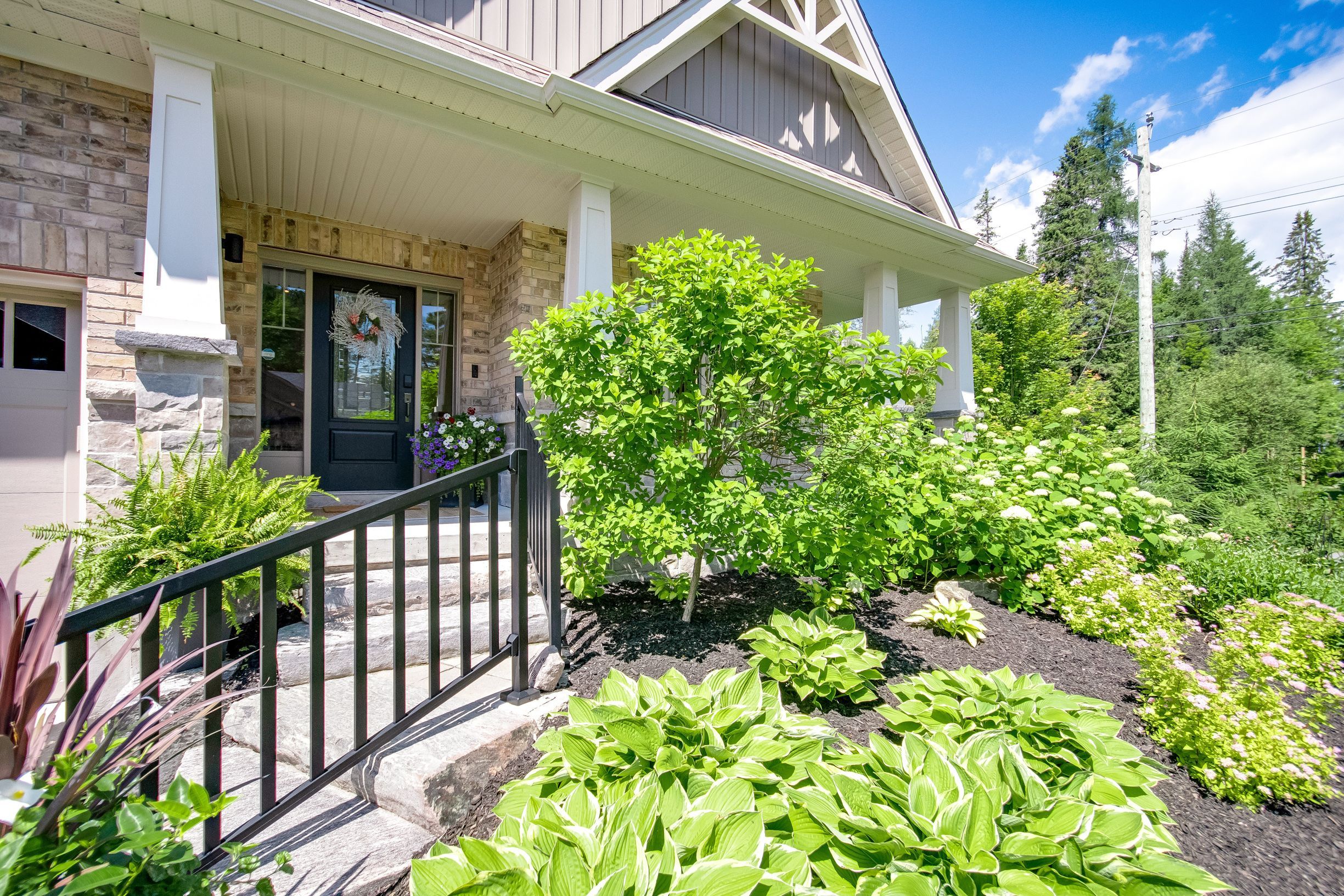 Discover this beautifully crafted all-brick bungalow offering timeless design, modern comfort, and a serene muskoka lifestyle. Perfectly positioned on a premium corner lot just steps from the huntsville golf & country club, this turn-key home blends the best of country tranquility and in-town convenience. Inside, a bright and open layout welcomes you with 9-foot ceilings, rich hardwood floors, and abundant natural light. The spacious main level features two bedrooms and 1 1/2 baths, including a primary suite with vaulted ceiling details and a clever laundry nook with folding ledge for everyday ease. At the heart of the home lies a custom chef's kitchen with granite countertops, a central island, premium kitchenaid appliances, and a gas hookup for the stove-a perfect space for cooking, gathering, and entertaining. The walkout lower level is fully finished, offering a versatile space ideal for guests, teens, or extended family. Complete with a full bathroom, oversized egress windows (56 x 24), and a 6-foot patio door, it's bright, inviting, and easily adaptable as a second living area or in-law suite. Thoughtful touches abound throughout-two gas fireplaces, 200-amp electrical service, gas bbq hookup, reverse osmosis system, exterior ring cameras, wireless keyless entry add everyday comfort and convenience. Step outside to your professionally landscaped, pool-ready backyard featuring a 32 x 15 cedar deck, custom basketball court, irrigation system, and garden shed, all enclosed by a low-maintenance vinyl fence. The charming wraparound front porch offers the perfect vantage point for morning coffee or sunset views along peaceful golf course road. With quick highway access, modern upgrades, and top-tier craftsmanship, this home offers a complete move-in-ready lifestyle-combining luxury, functionality, and muskoka charm in one stunning package.