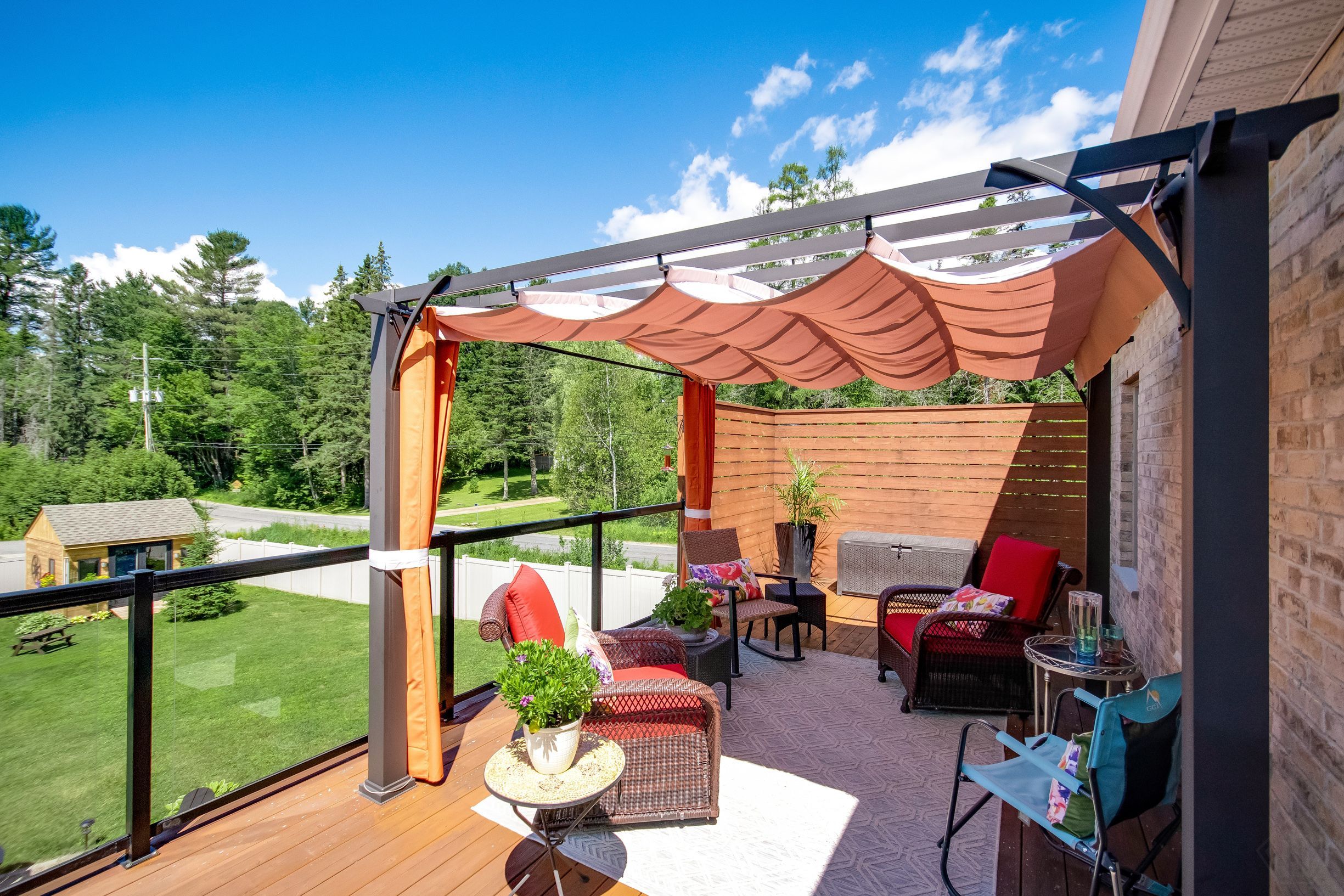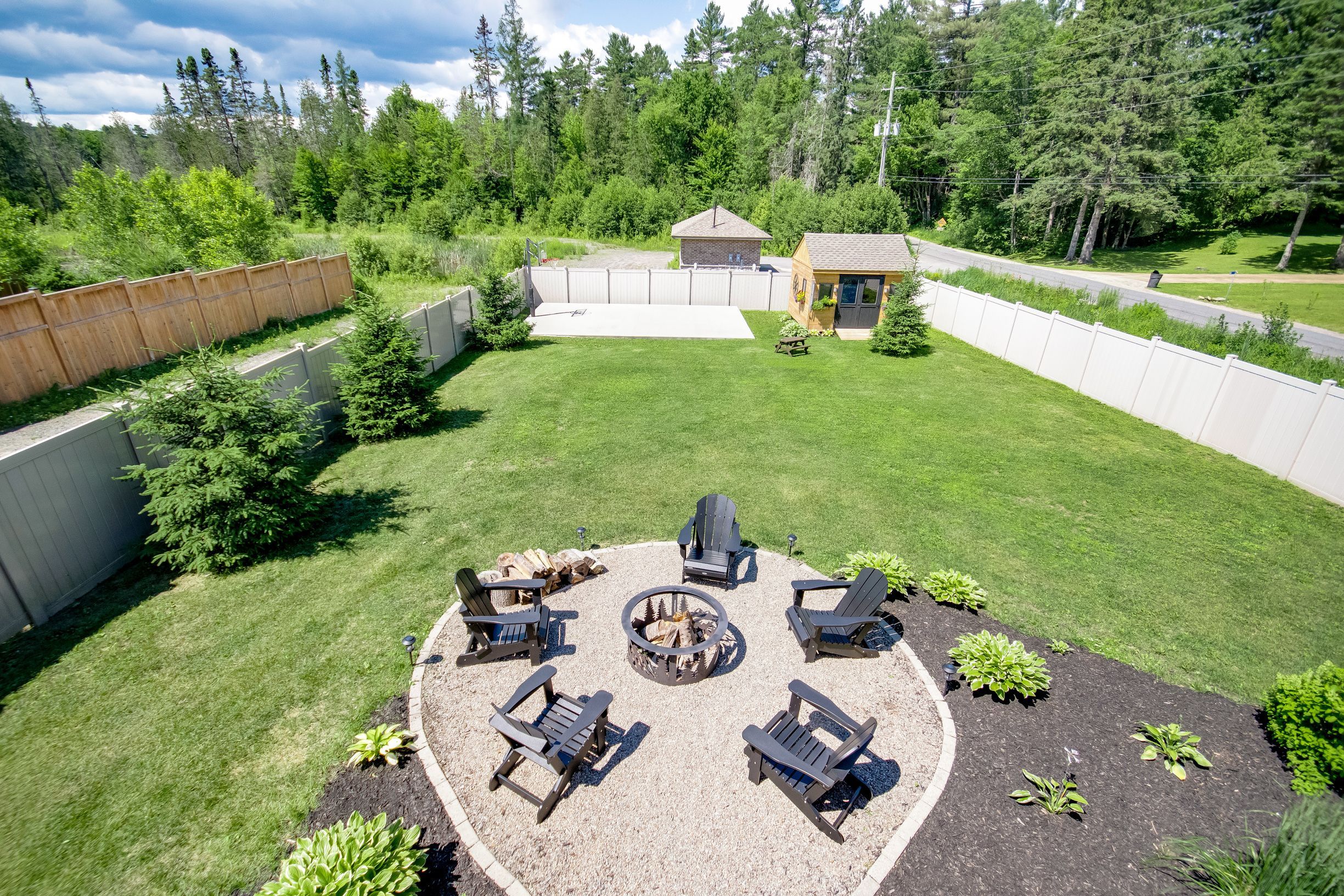 • Professionally landscaped backyard with a cedar deck and custom basketball court.
