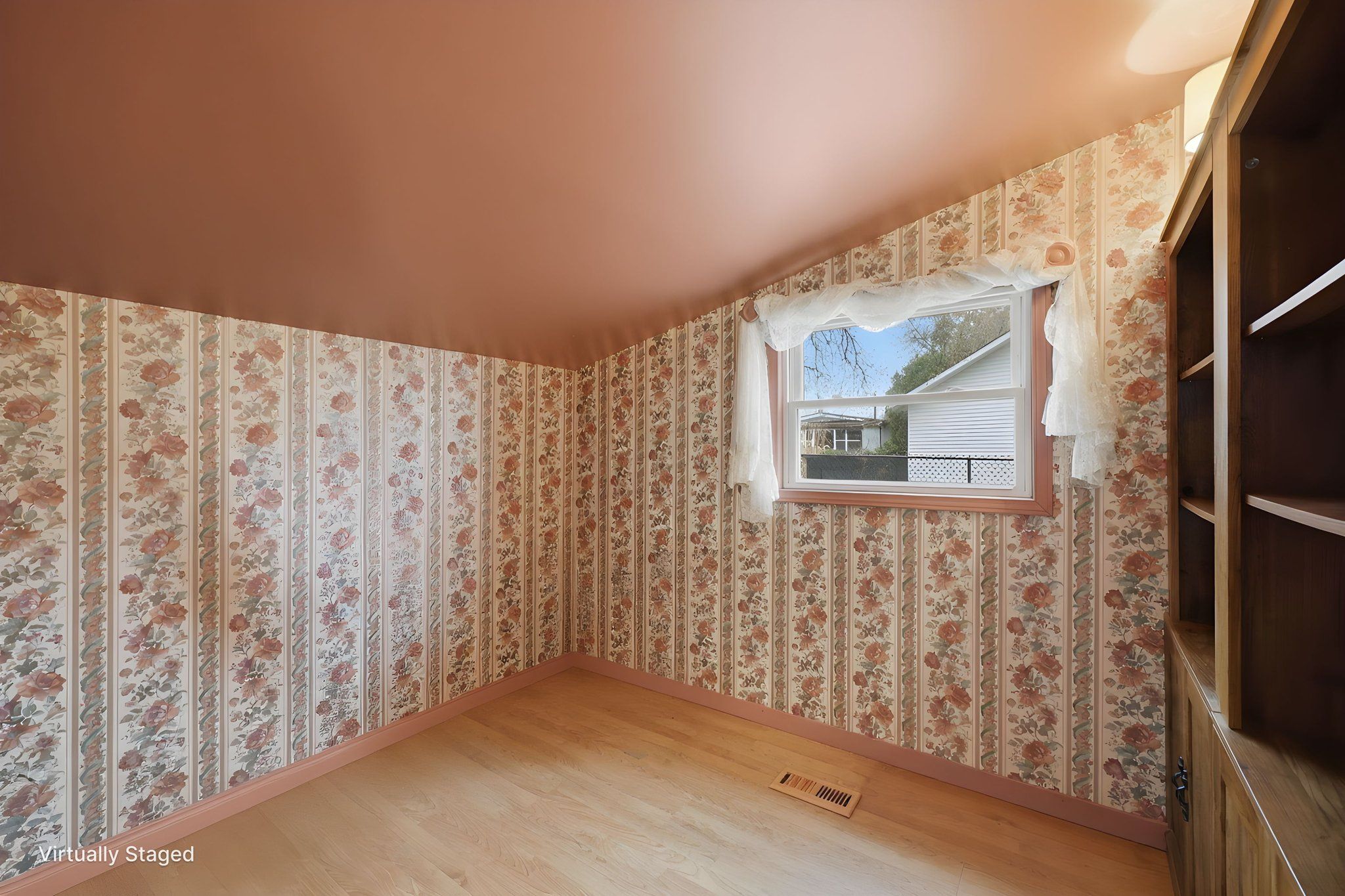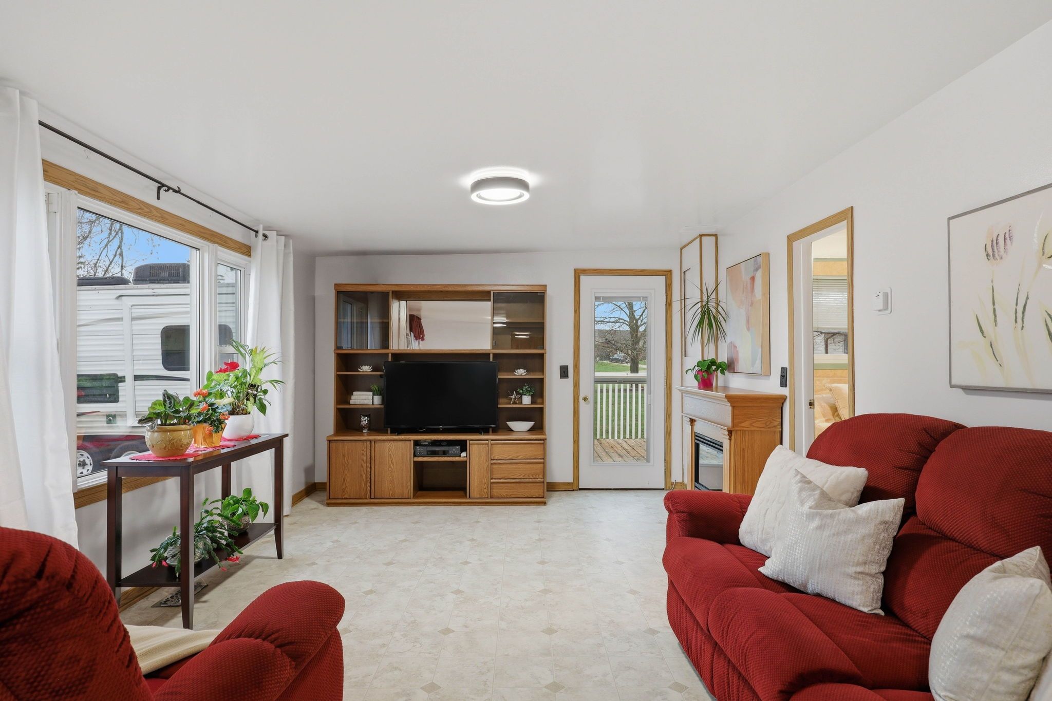 • Bright living room with a large bay window for natural light.
