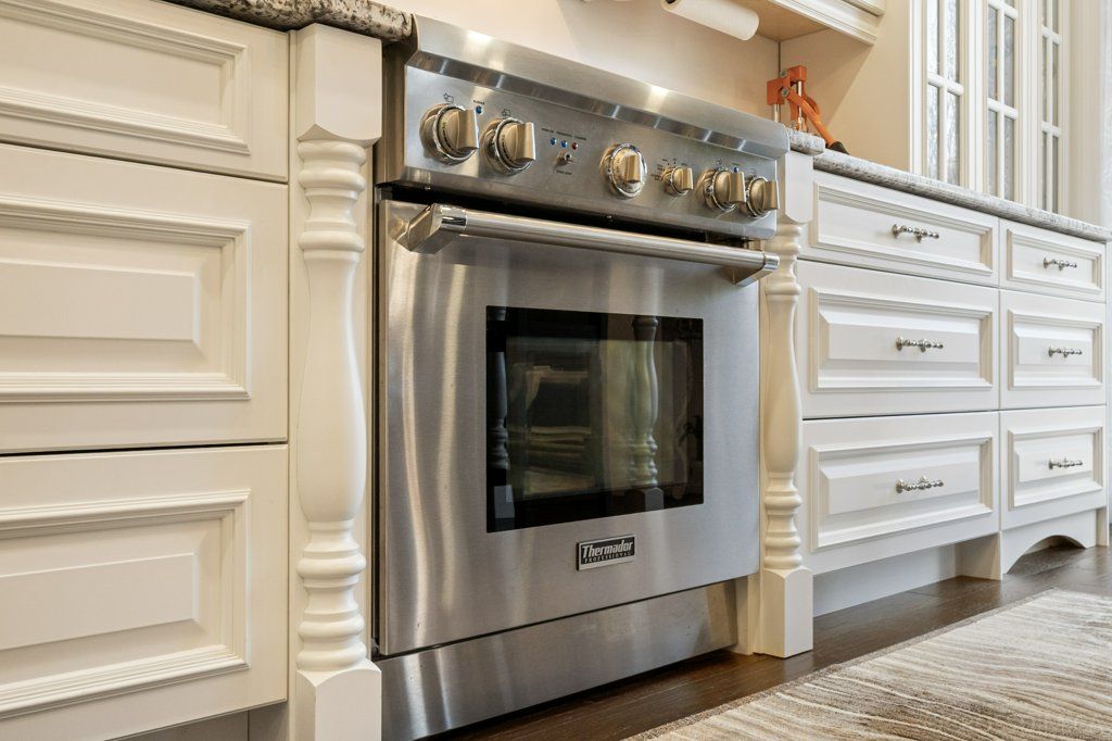 • Spacious gourmet kitchen with stainless steel appliances and center island.