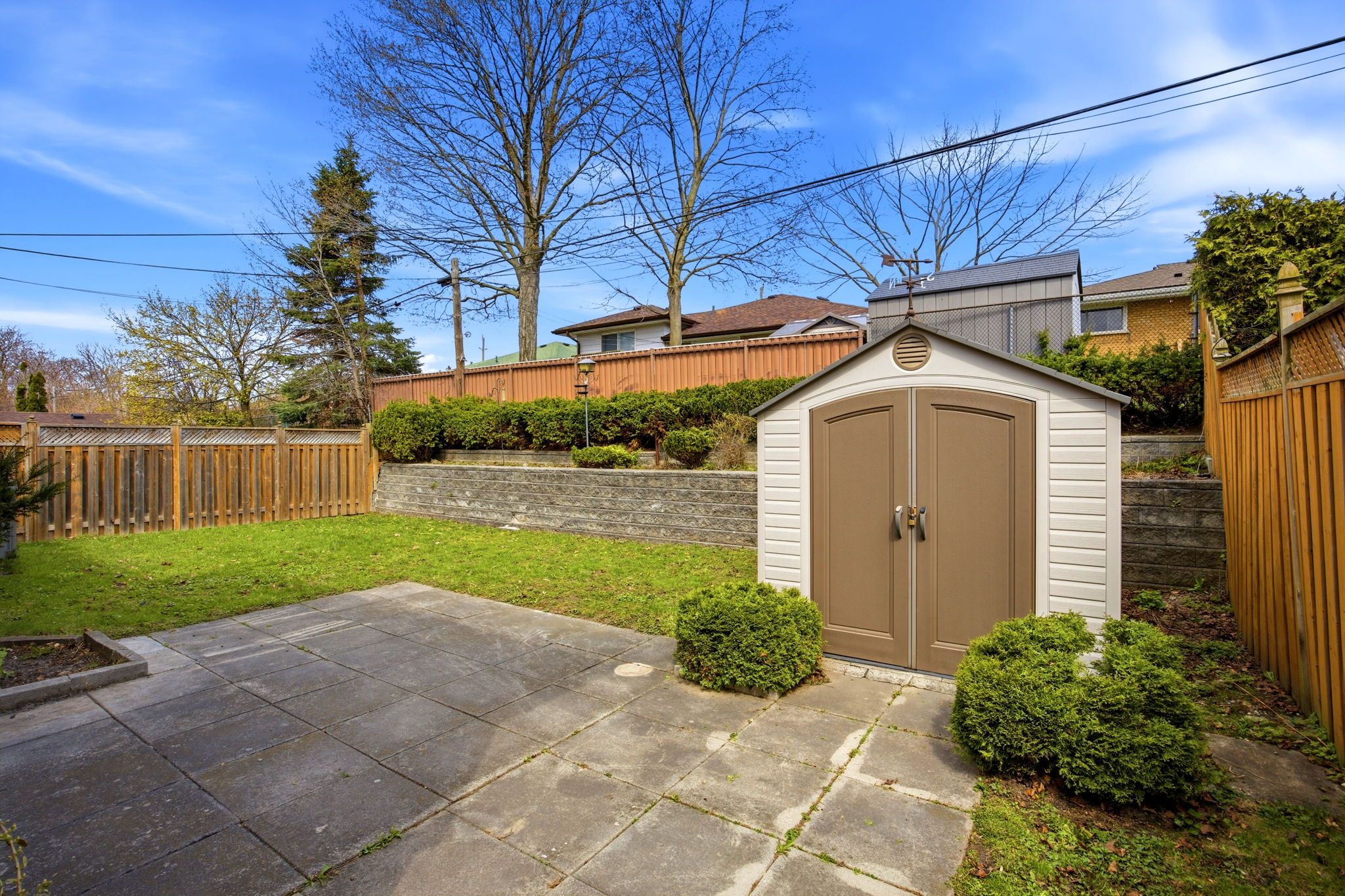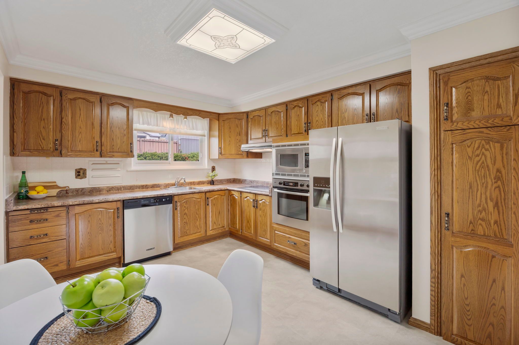 Fantastic 4-level side-split located in the highly desirable east oshawa mackenzie park neighbourhood! This well-maintained home offers exceptional convenience-just steps to parks, schools, transit, shopping, restaurants, and everyday amenities. Commuters will love the quick access to highway #2 (king st.) and highway 401 via harmony rd. S. Step inside to a bright and spacious layout designed for comfortable family living and entertaining. The open-concept l-shaped living and dining area is filled with natural light via a large bow window and offers a warm, inviting space for gatherings. Hardwood flooring lies beneath the broadloom, providing excellent future potential. The eat-in kitchen features crown mouldings, ceramic tile backsplash, and stainless-steel appliances including a vented cooktop, built-in double wall ovens, dishwasher, and fridge. The main floor family room offers a cozy retreat with hardwood floors and a convenient walk-out to a private patio and backyard-perfect for relaxing or hosting summer get-togethers. The yard also includes a garden shed for added storage. A main floor powder room and direct interior access to the garage add to the home's everyday functionality. Upstairs, you'll find well-sized bedrooms, all with hardwood flooring, providing comfort and durability. The finished lower level boasts a bright recreation room with large windows and built-in bookcases-ideal for movie nights, a playroom, gym, yoga room, home office, or gaming space. Additional highlights include a spacious laundry room with large windows, ceramic tile flooring, washer, dryer, laundry sink, and a separate shower stall. A crawl space offers ample extra storage. Lovingly cared for over the years, this home is move-in ready with a flexible closing available. A fantastic opportunity to own in a sought-after family-friendly neighbourhood!