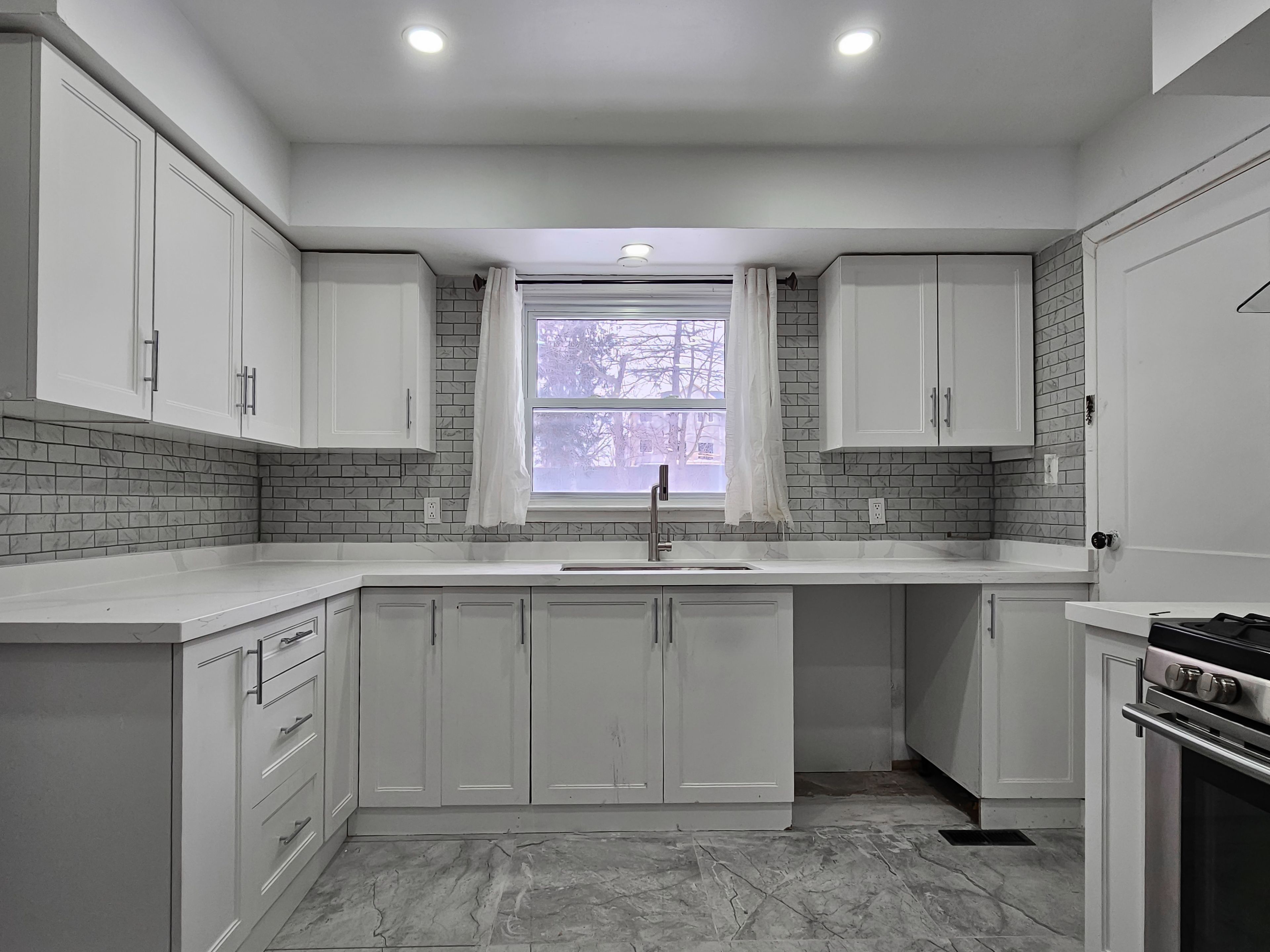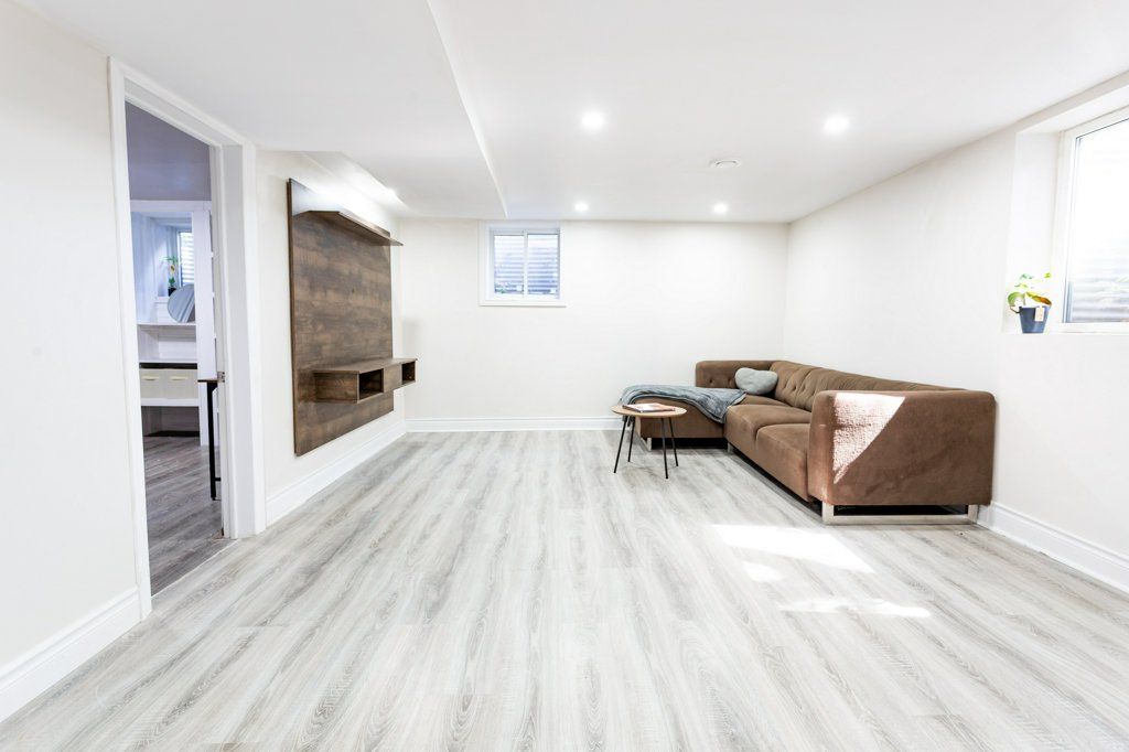 • Lower-level apartment offers two bedrooms and bright egress windows.