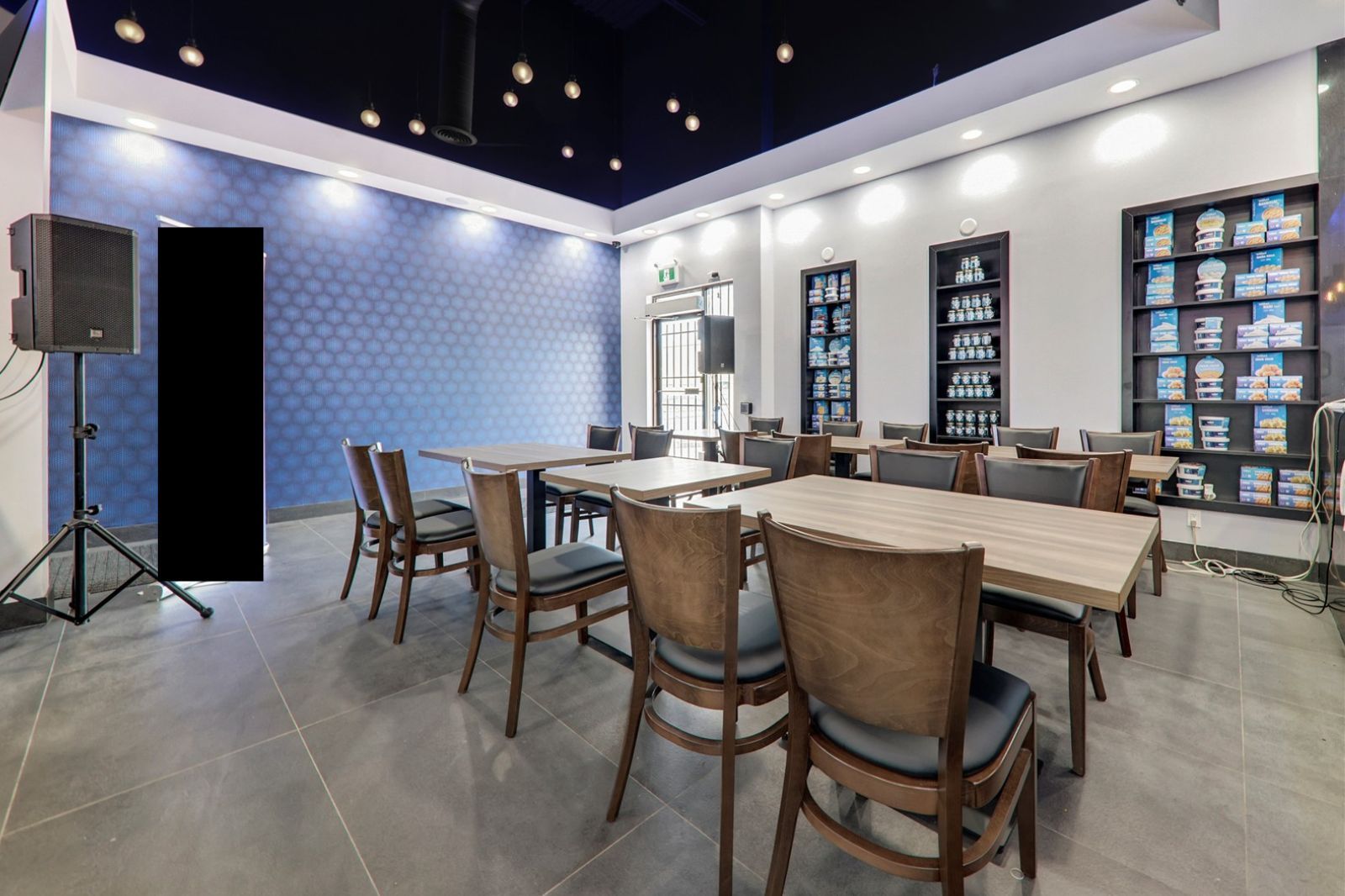 • Newly renovated restaurant space with modern kitchen and stylish dining area.