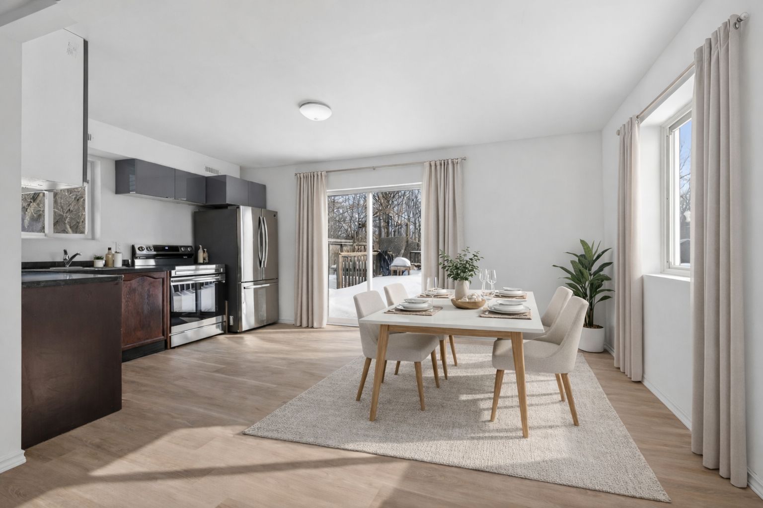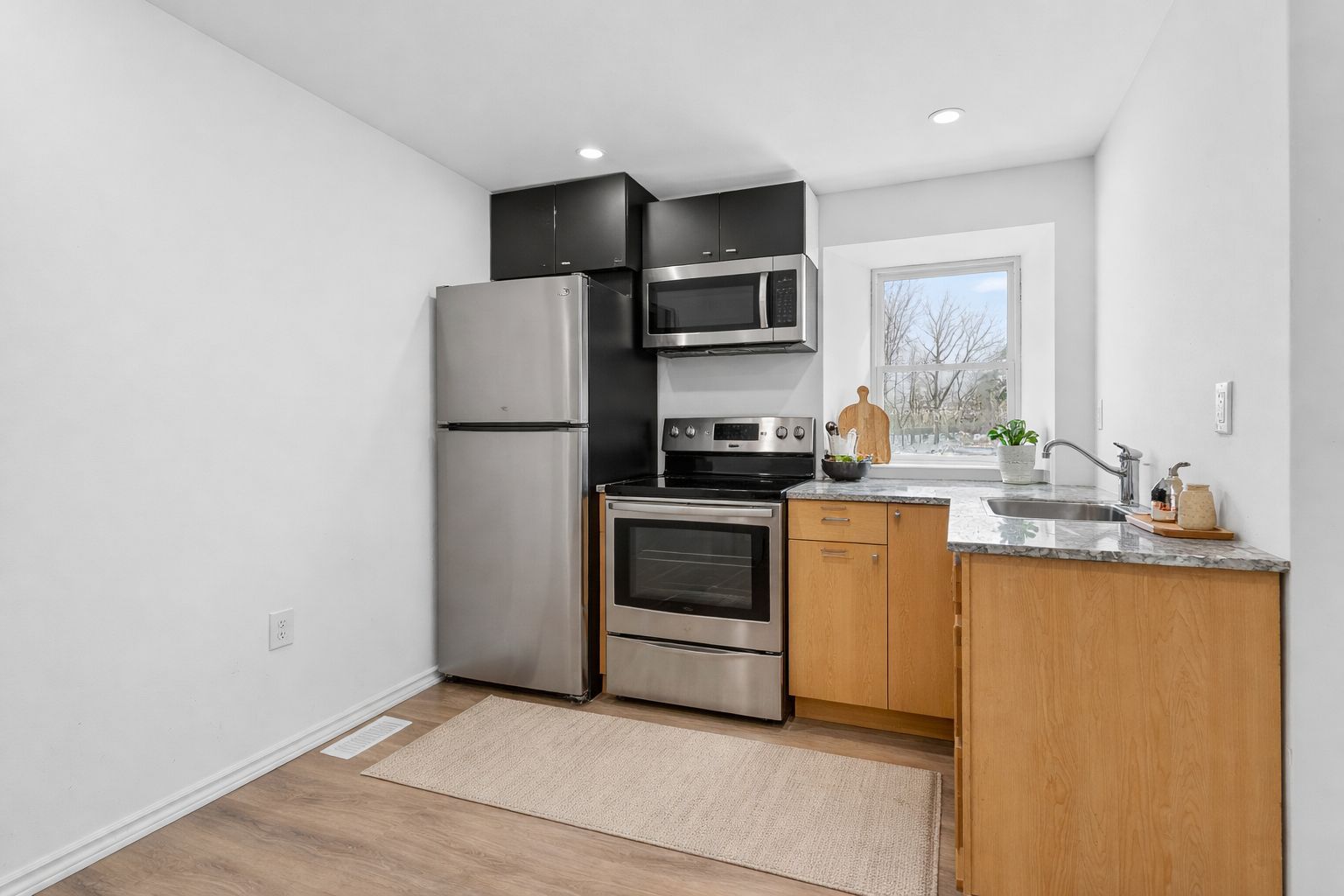 • Renovated home with updated flooring, walls, and new appliances.