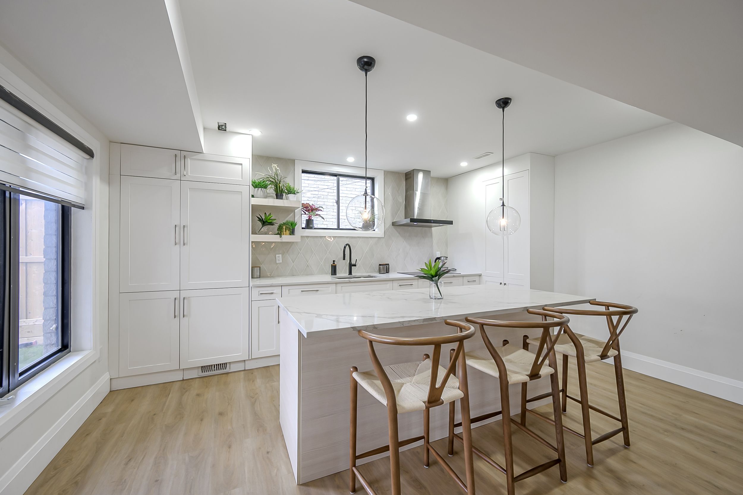 • Spacious kitchen/great room with dual islands and abundant natural light.