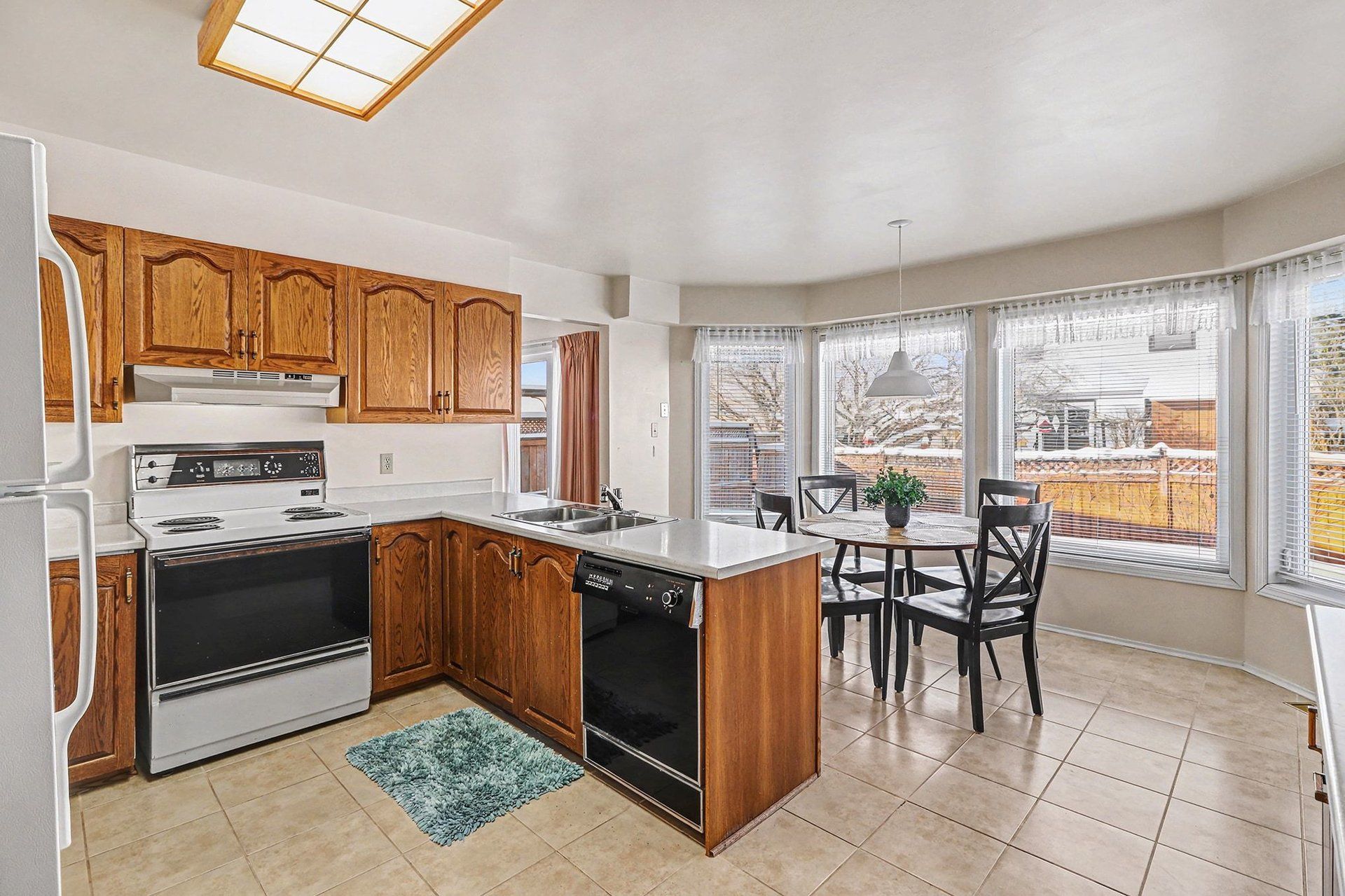 • Large kitchen with plenty of cabinetry and big windows.