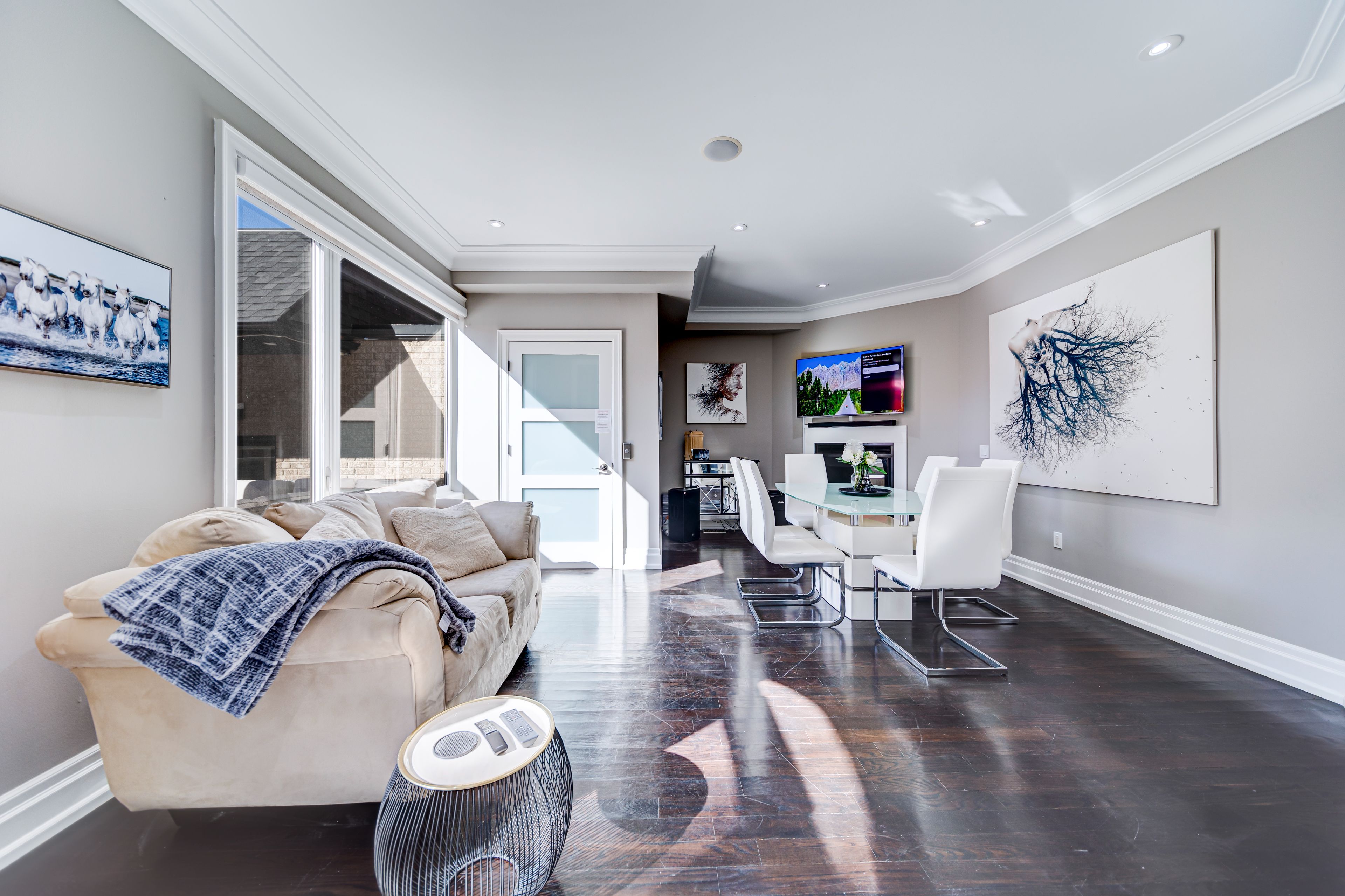 • Heated indoor pool, gym, sauna, and smart home features included.