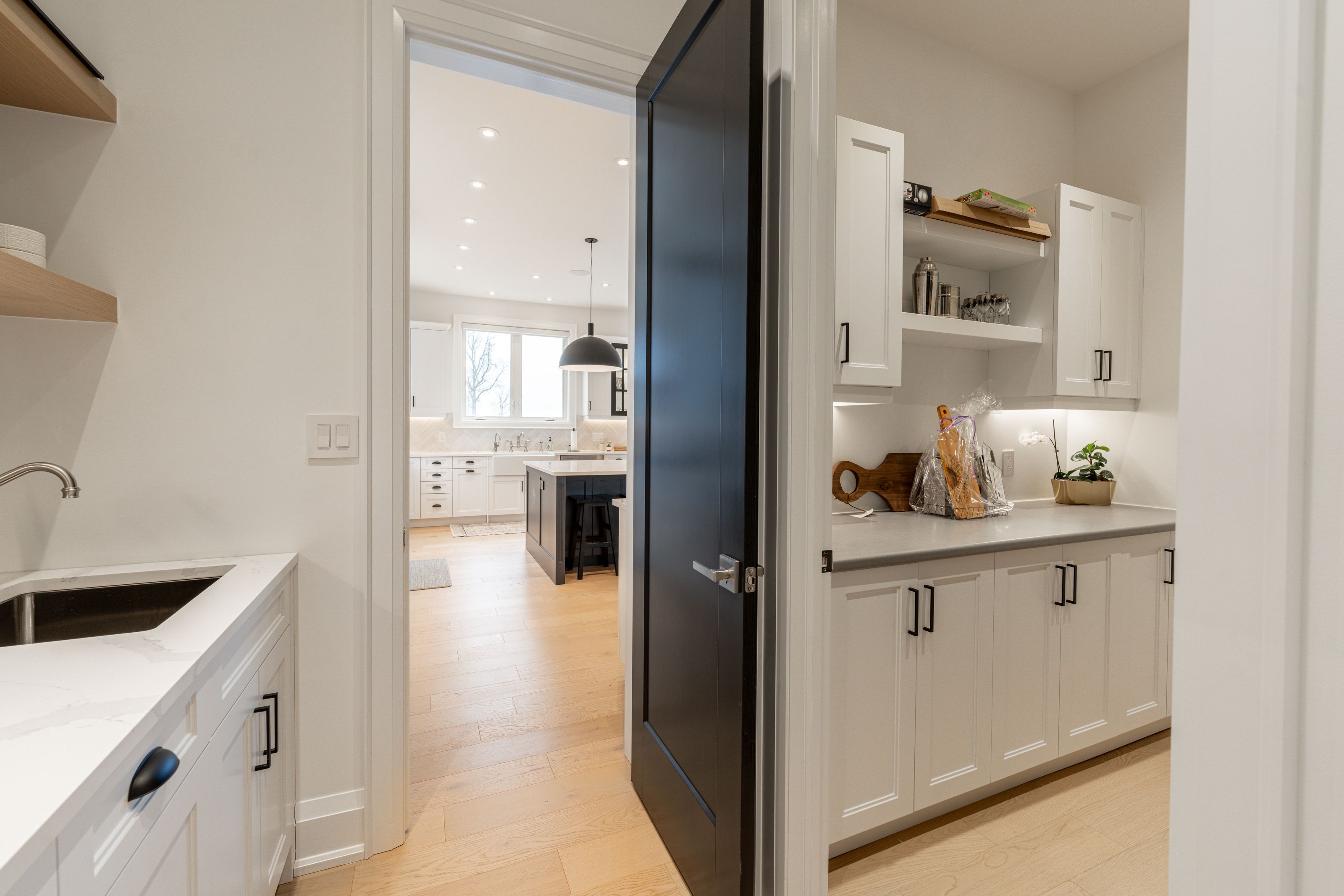 • Chef's kitchen featuring a large island, built-in appliances, and butler's pantry.