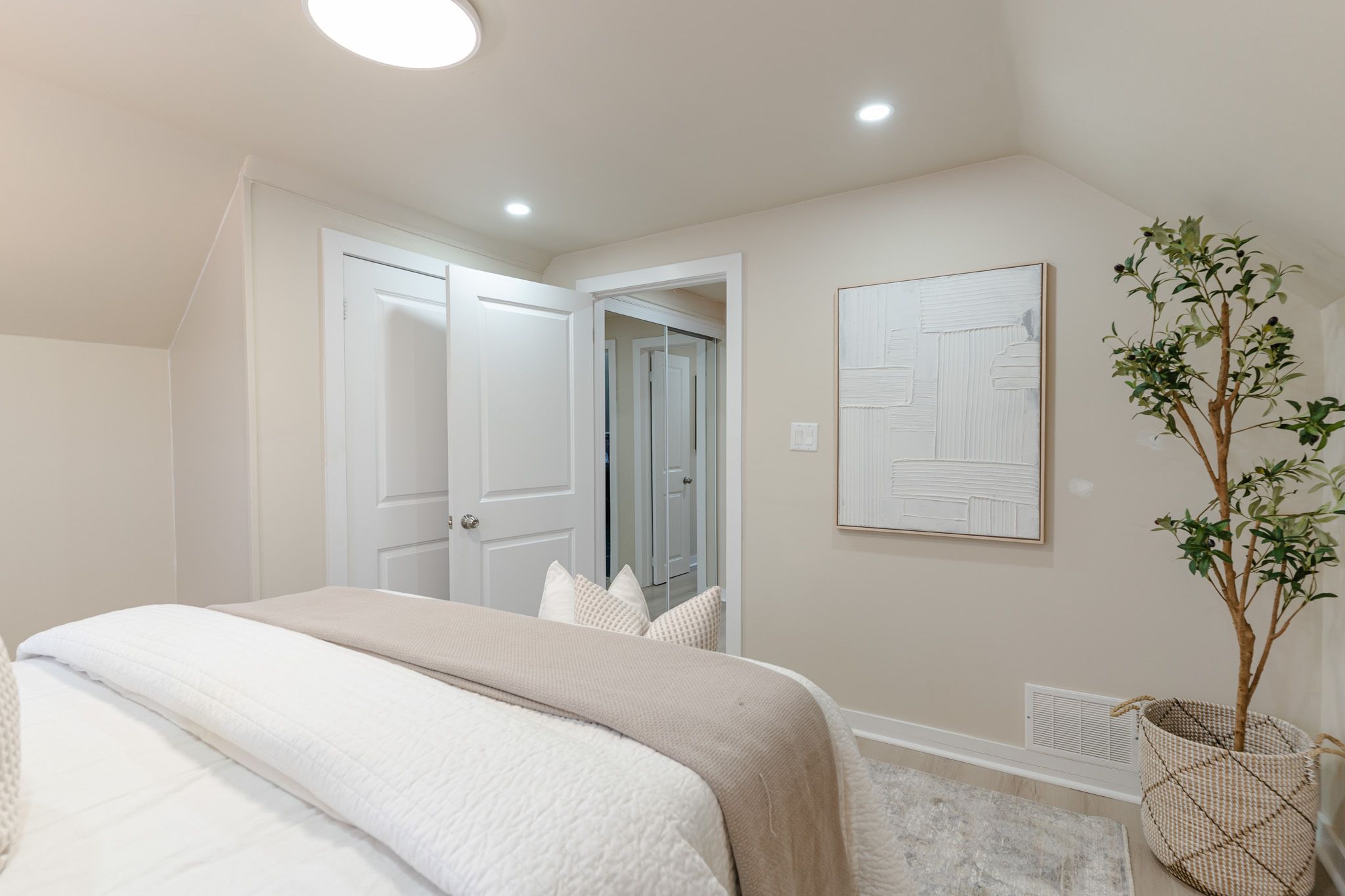 Get ready to fall in love. This jaw-dropping 1. 5-storey, 3-bedroom, 3-bathroom home is the total package, polished, powerful, and packed with upgrades. Stunning front landscaping and ample parking welcome you in, along with a detached garage offering incredible flexibility. Inside, the main floor steals the show, with laminate flooring and pot lights throughout, a designer kitchen featuring quartz counters and backsplash, a beverage fridge, and a gas range. The spacious living and dining areas flow effortlessly and walk out to a covered deck built for unforgettable gatherings. A main floor bedroom adds versatility for guests or home office needs. Upstairs, two bright bedrooms with laminate flooring and pot lights are complemented by a spa-inspired 3-piece bath. The finished basement extends the living space with vinyl flooring and pot lights throughout, and a new wet bar. The detached garage includes car charger, 200 amp panel & unfinished space with exciting potential. See the attached for list of upgrades & adu possibilities info. Close to schools, shopping, transit, and all amenities.