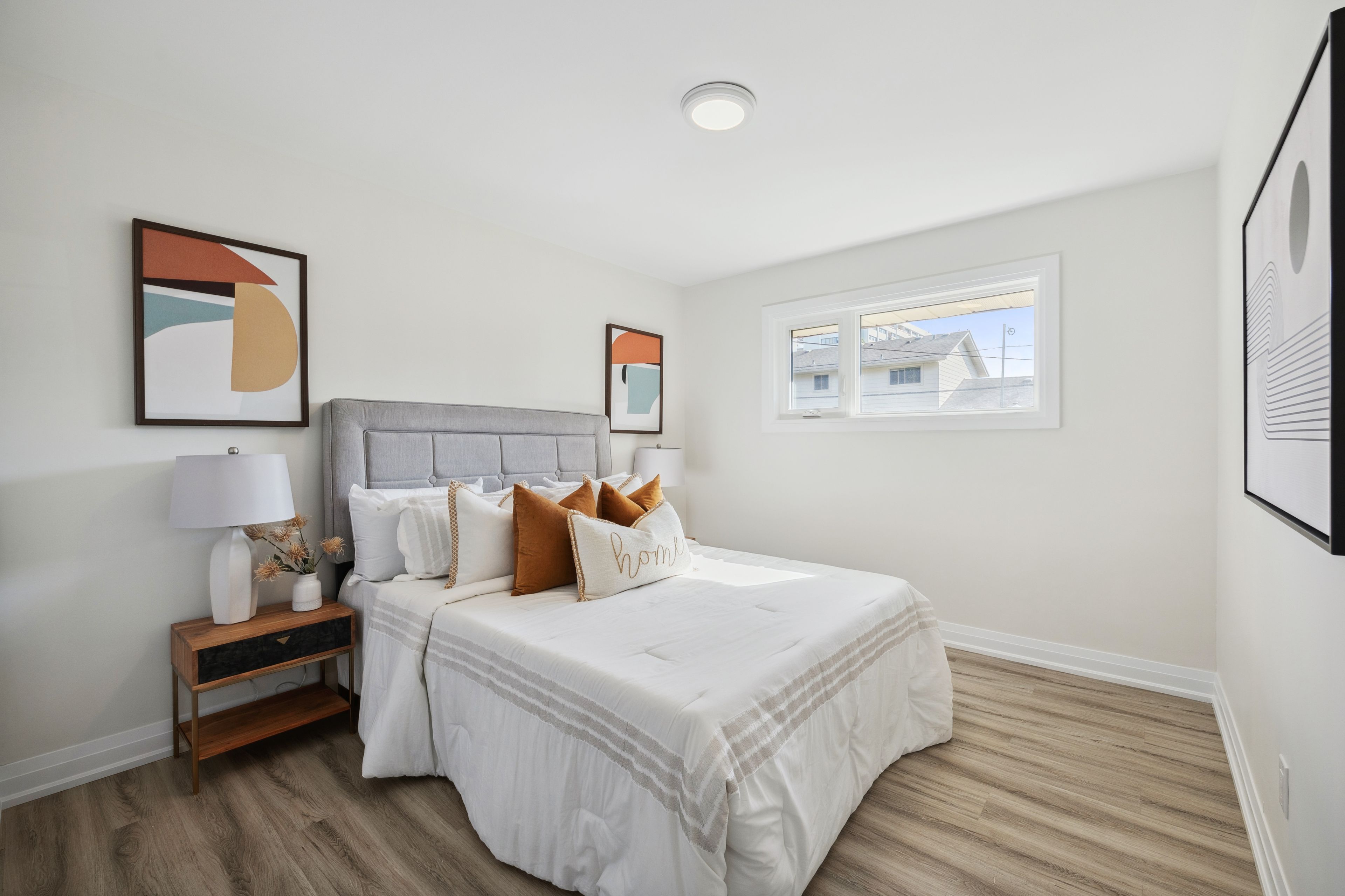 Welcome to this beautifully renovated home in the highly desirable neighborhood of the glens, known for its mature trees, quiet streets, and strong sense of community. Every inch of this home has been meticulously updated with quality craftsmanship and modern finishes, offering a perfect blend of comfort, style, and function. Step into the stunning kitchen featuring sleek quartz countertops, modern cabinetry, a stylish backsplash, and stainless steel appliances - a space designed for both everyday living and entertaining. The home showcases brand-new flooring throughout, new windows, and elegant light fixtures, creating a bright and inviting atmosphere in every room. The bathroom has been completely transformed with elegant tilework, premium fixtures, and a quartz vanity that brings a touch of luxury to your daily routine. Each bedroom offers generous space and natural light, while the neutral tones throughout provide a warm and timeless feel. The finished basement is a versatile extension of the home, featuring high ceilings, a separate entrance, and excellent potential for an in-law suite or future income unit. Whether you're looking for added living space or an investment opportunity, this area offers endless possibilities. Outside, you'll find a freshly landscaped yard, brand-new interlock walkway, and a private backyard perfect for relaxing, entertaining, or gardening. With potential to create a legal duplex, this property is ideal for families, multi-generational living, or investors seeking long-term value. Located close to parks, schools, shopping, and all major amenities, this home truly has it all - turnkey comfort in one of the most sought-after neighborhoods in the region.