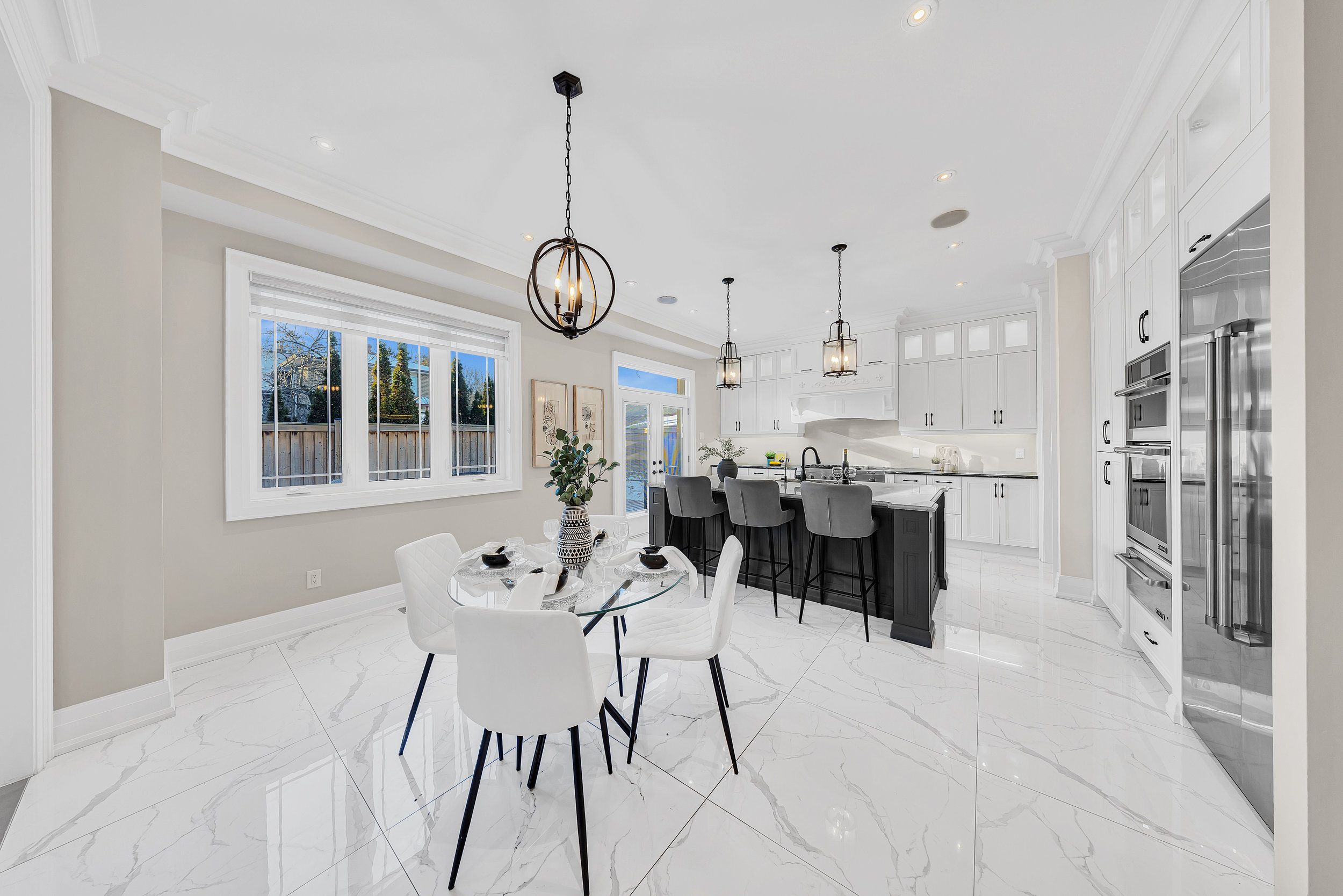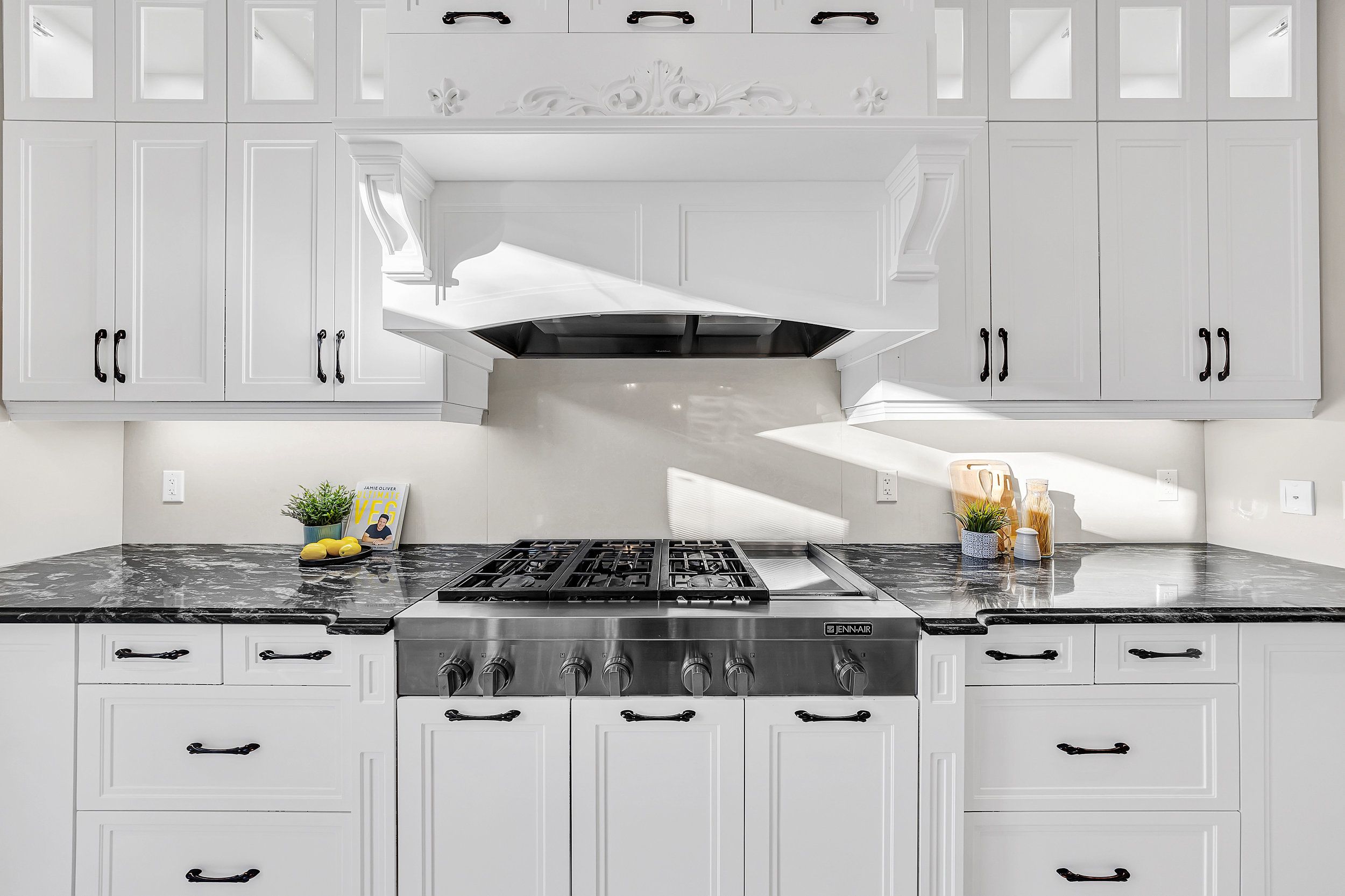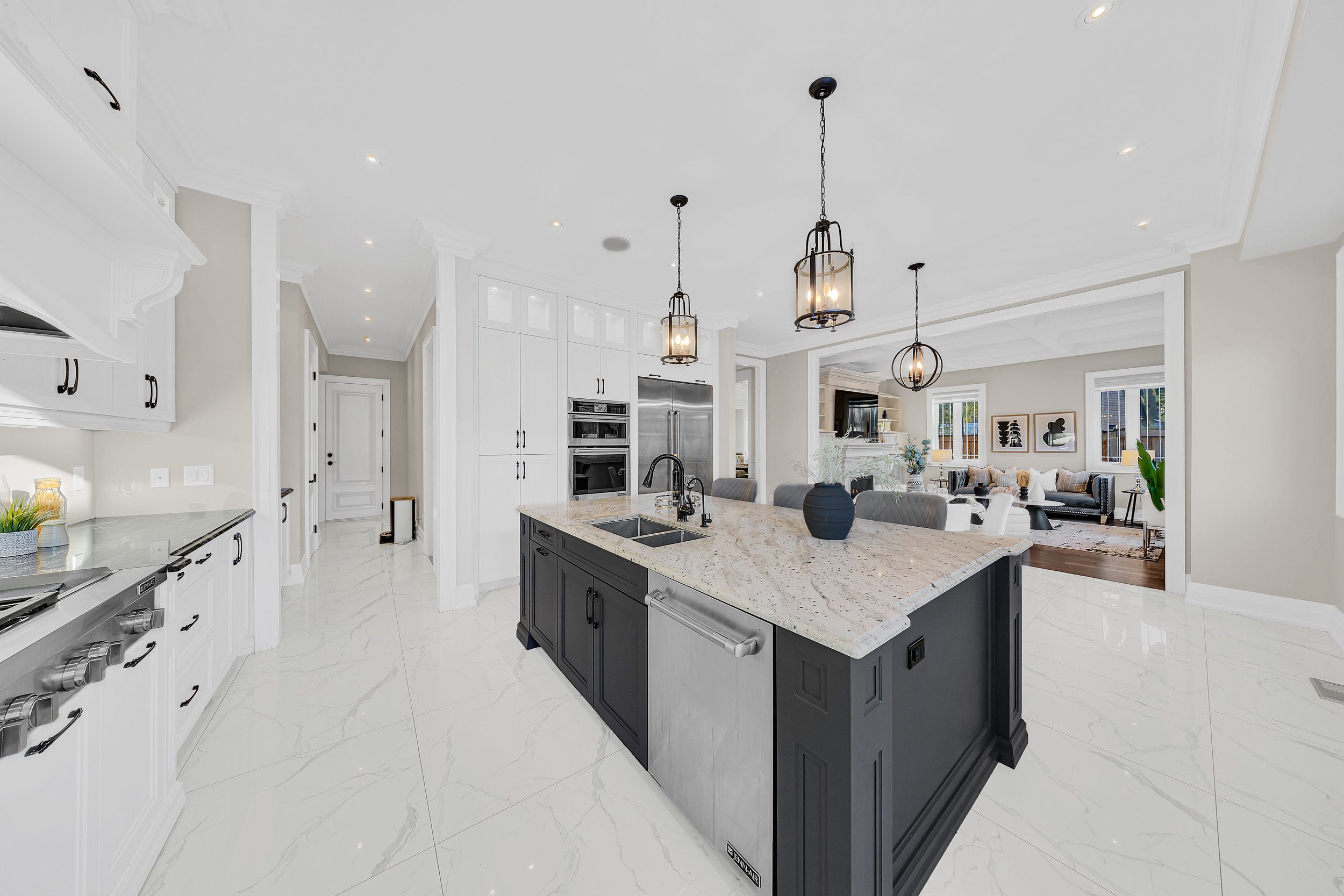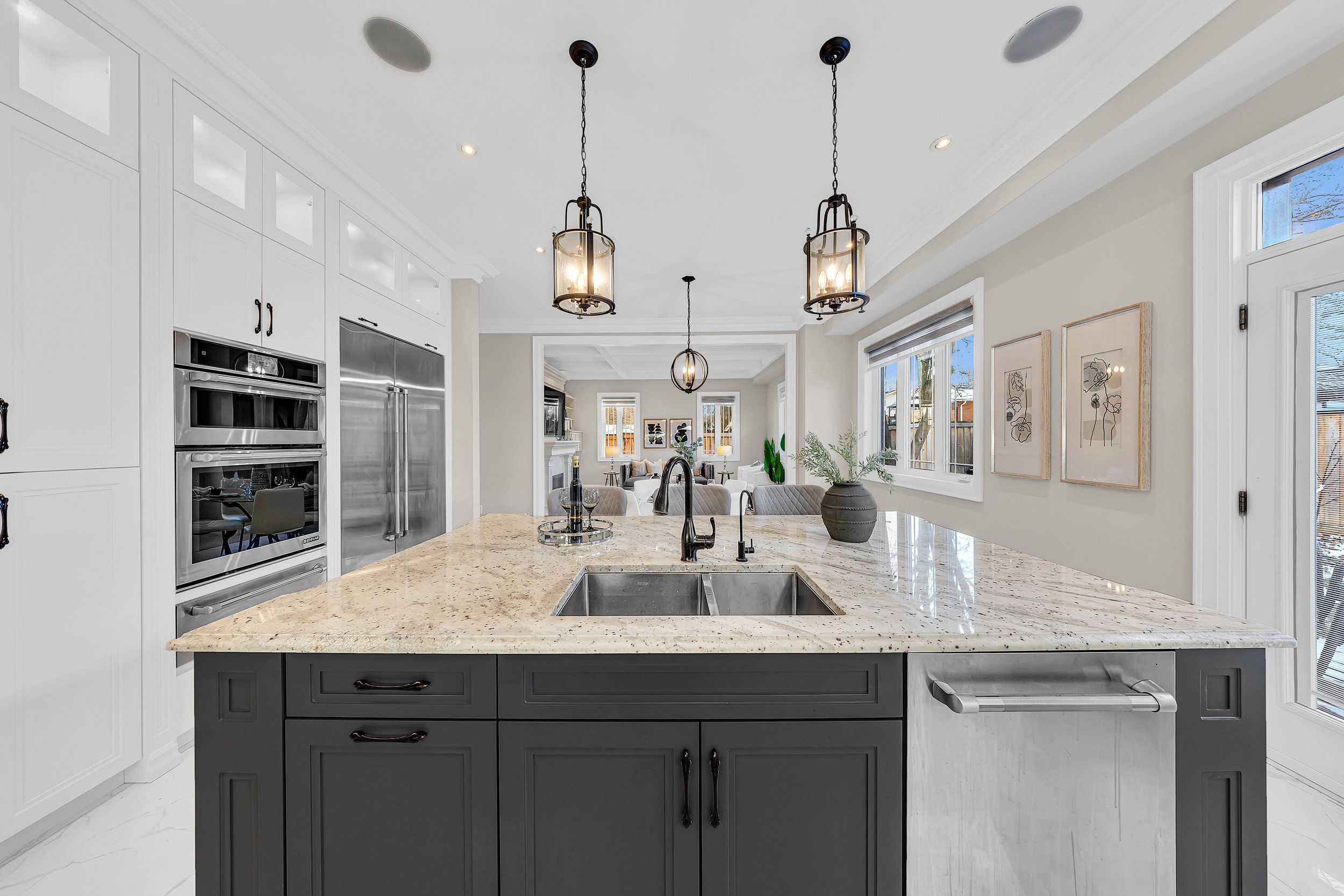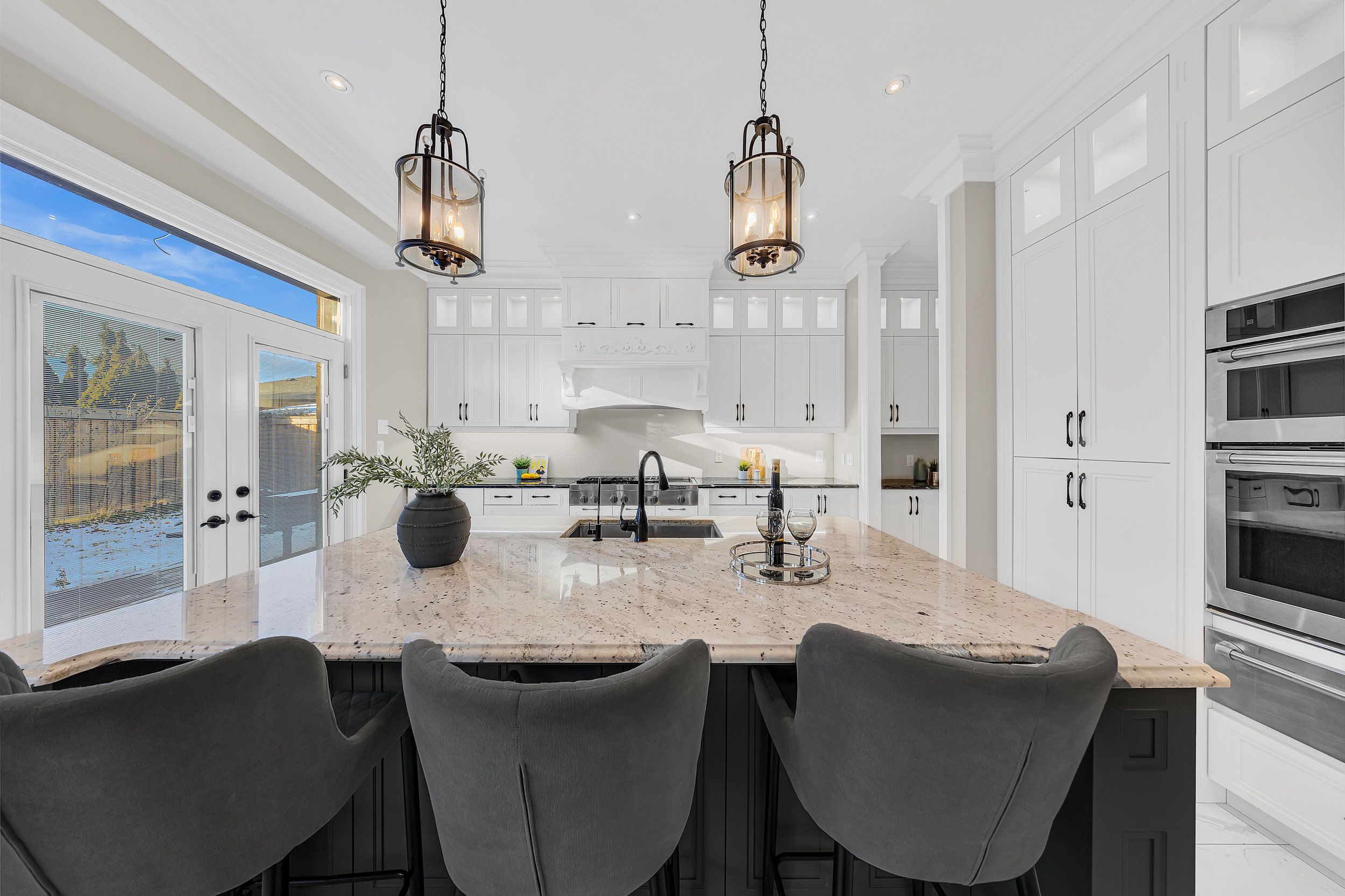 • Well-equipped chef's kitchen with granite countertops and spacious island.