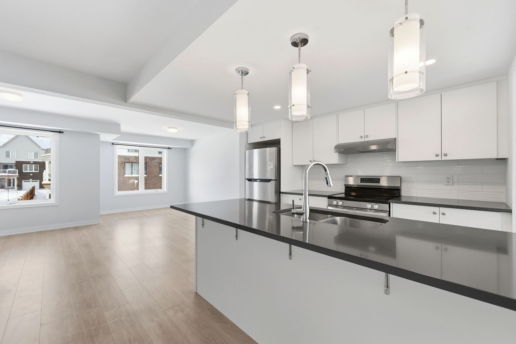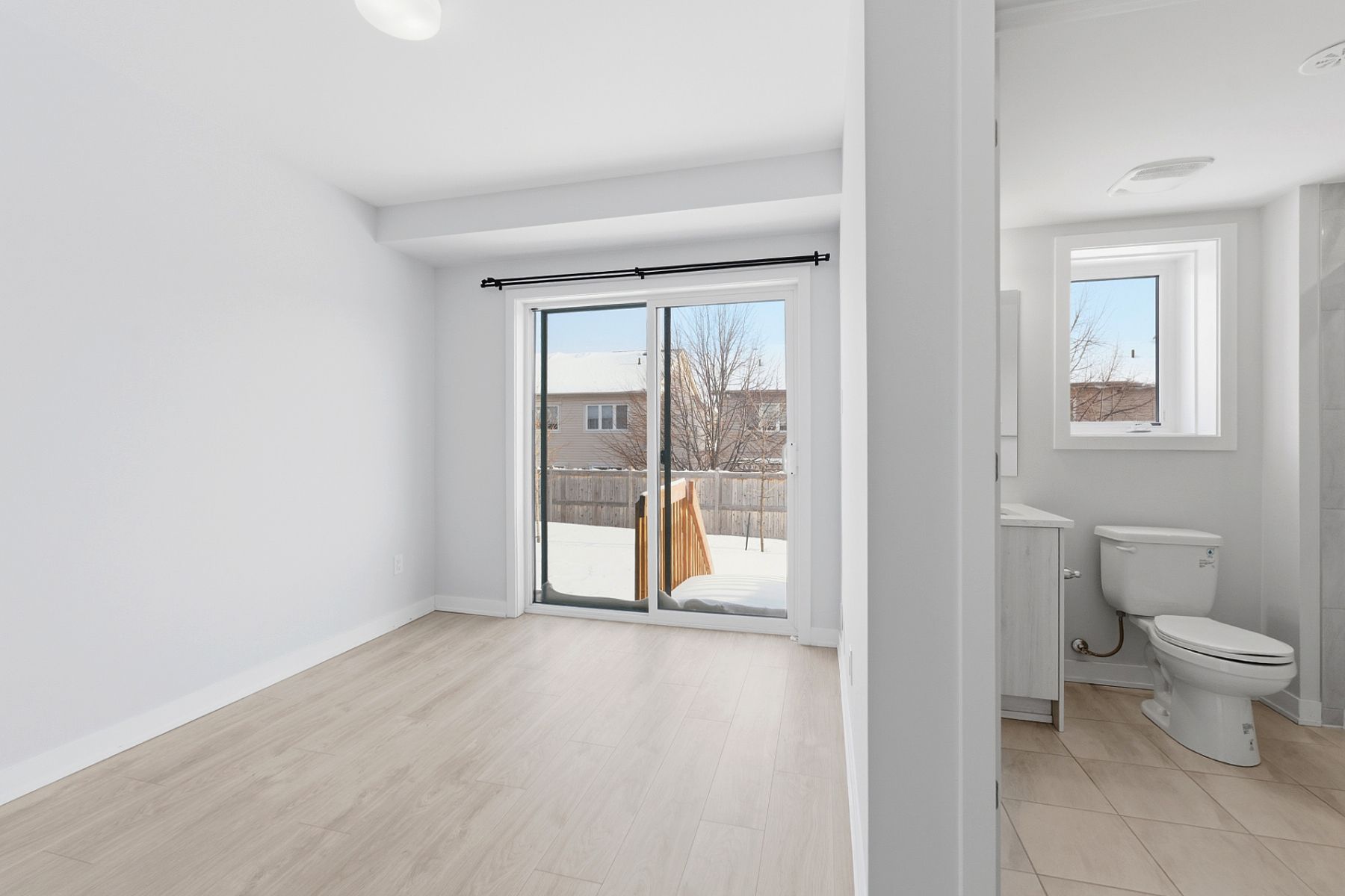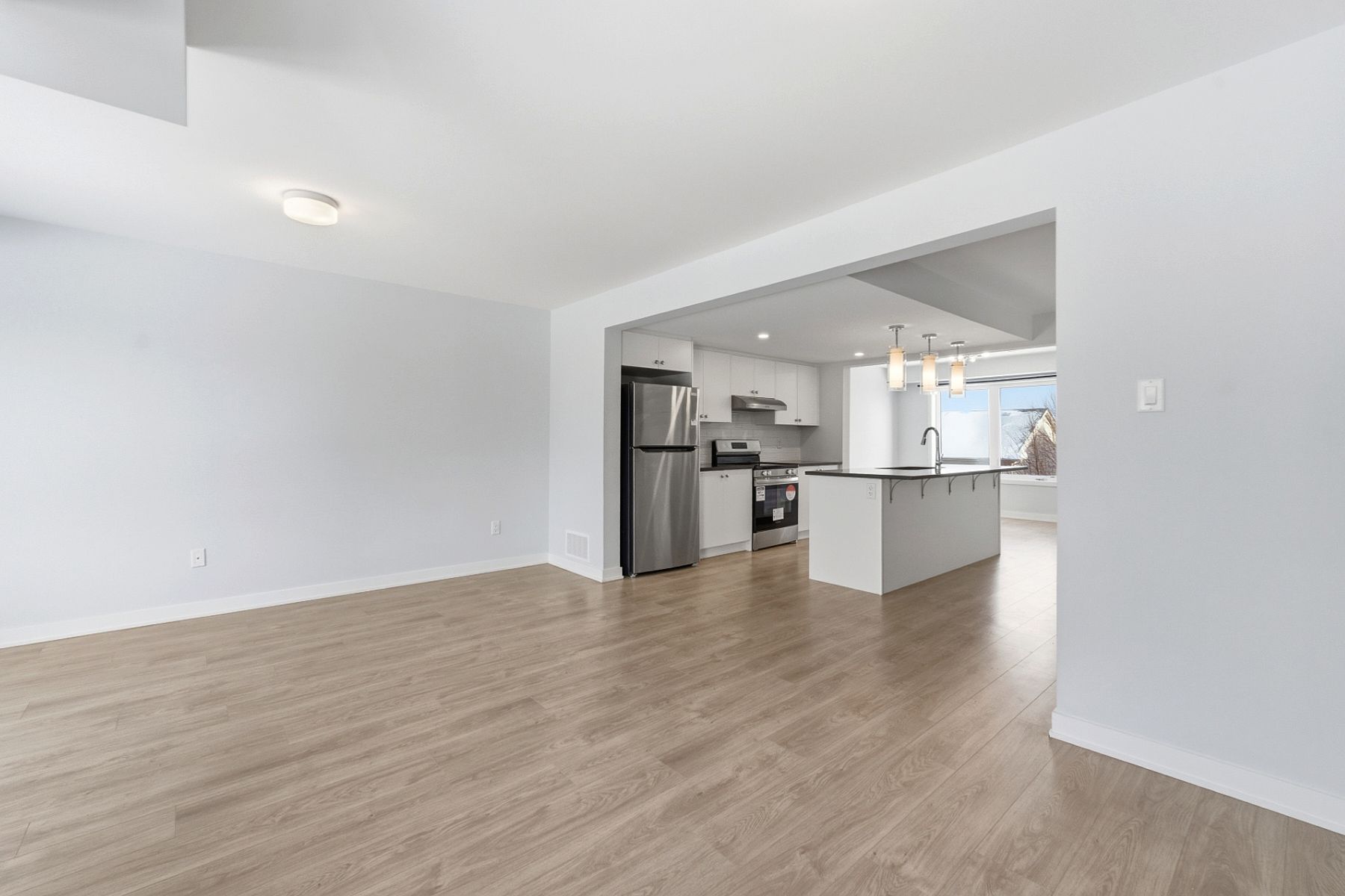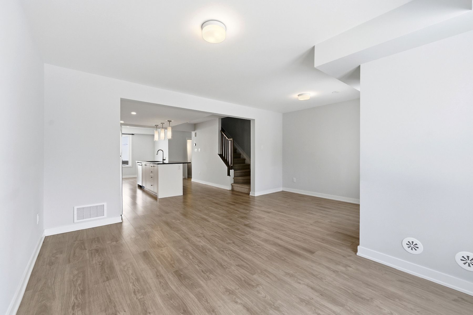 Stunning two-year-new three-storey townhouse offers 4 bedrooms, 4 bathrooms, single garage, and private backyard in the stittsville north community. Loaded with both design and structural upgrades, the home features an exceptionally bright and airy open-concept layout filled with natural light throughout the day. The ground floor includes a versatile guest suite complete with a full bathroom and patio door access to the backyard-ideal for guests, in-laws, or home office. The second level showcases an inviting open-concept living and dining area with southwest exposure, providing warm afternoon sunlight. The modern kitchen is beautifully appointed with quartz countertops, upgraded cabinetry and pot lights. The dining area is conveniently located at the rear of the home, just off the kitchen, and a two-piece powder room completes this level. The third floor features a spacious primary bedroom with a walk-in closet and private ensuite bathroom, offering a quiet retreat. Additional bedrooms are well sized and designed for comfort and privacy. A convenient upper-level laundry area adds everyday ease. With two parking spaces-one garage and one exterior driveway. Built in 2024, it includes the remainder of the tarion new home warranty, providing peace of mind for years to come. Set on a quiet street in a family-friendly and growing community, residents will enjoy nearby walking paths, green spaces, and parks. Ideally located close to highway 417, tanger outlets, kanata centrum, and the kanata tech park, and within walking distance to parks and public transit, this home offers outstanding convenience and a welcoming community atmosphere. Assoc/potl fee of $119 covers snow removal, insurance & maintenance of common areas. Hwt is owned.