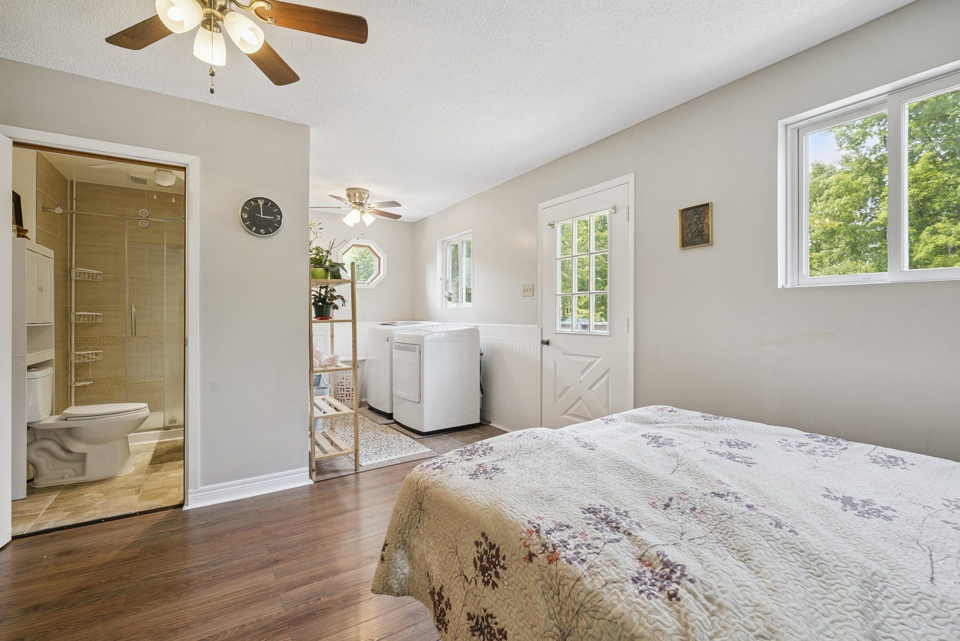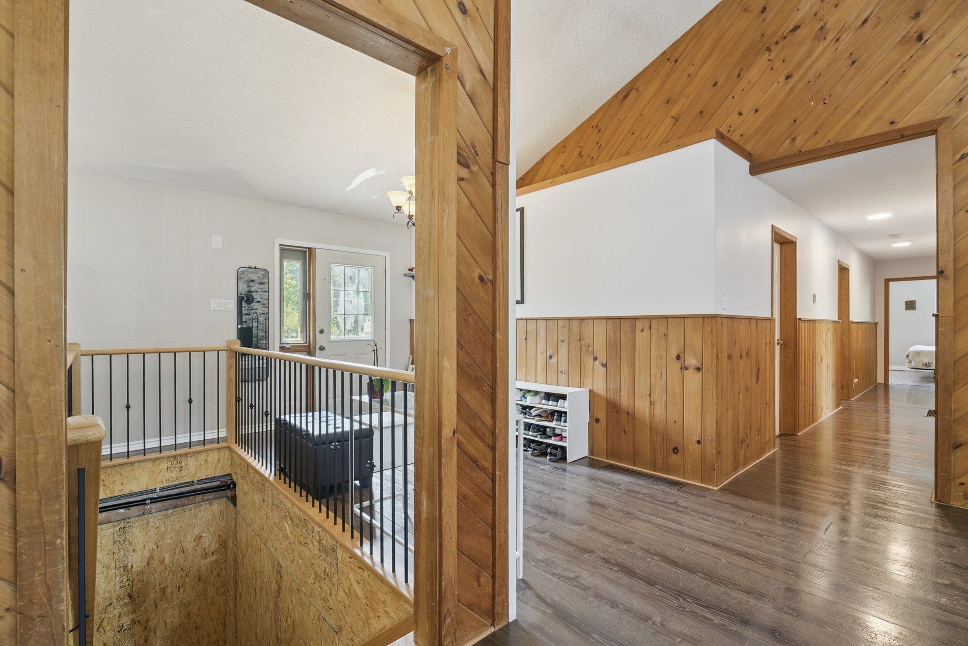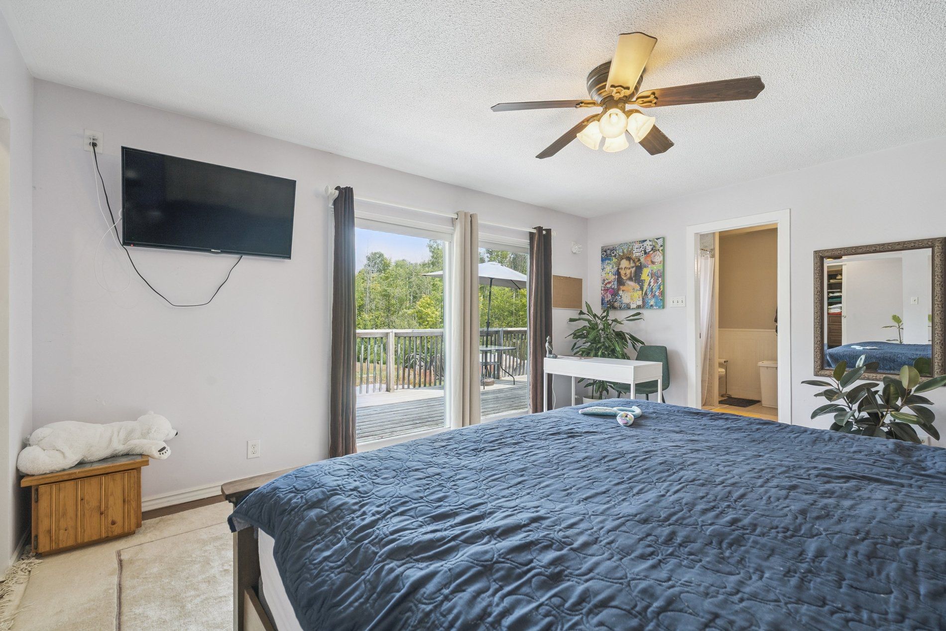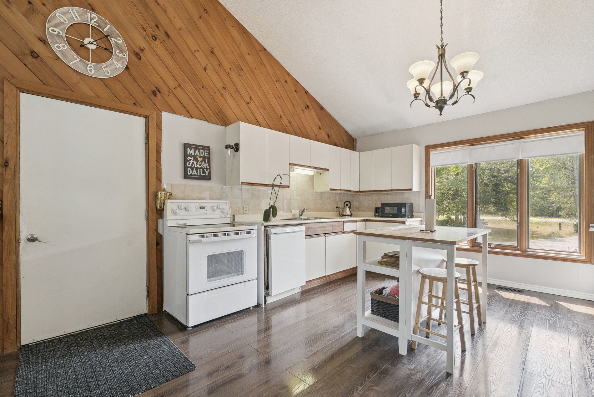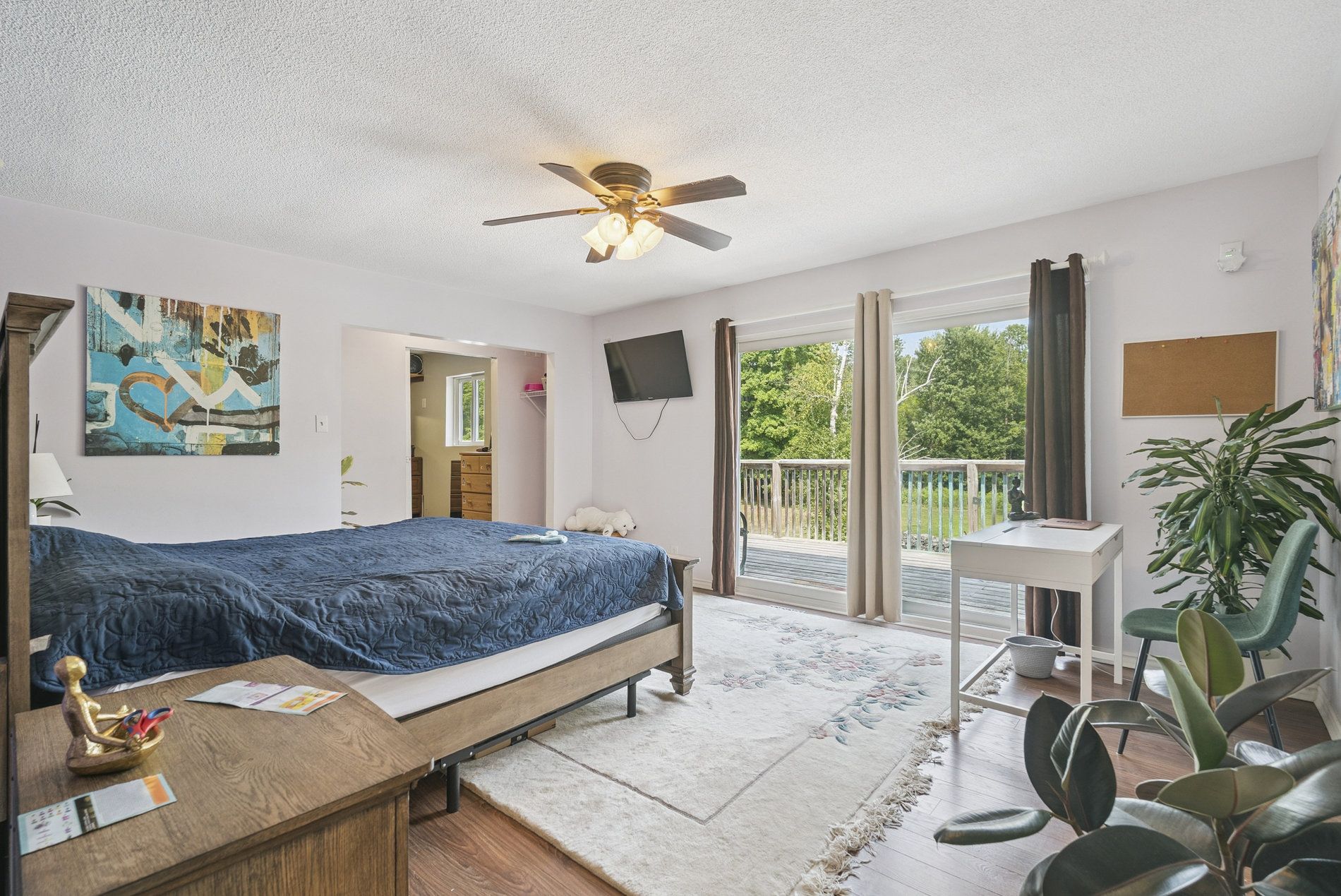Rare 1. 84-acre bungalow offering space, privacy, and outstanding future potentialset on a sprawling 200 x 400 ft lot in the heart of peaceful essa township, this exceptional property delivers the kind of space and opportunity that is increasingly hard to find. Enjoy the freedom of nearly two acres of land while remaining just minutes to schools, hospital, shopping, golf, and the scenic nottawasaga river trail. Surrounded by mature trees, the home offers a private, estate-like setting with an expansive wrap-around deck ideal for entertaining, family gatherings, or quiet evenings outdoors. An extra-wide driveway, metal roof, and oversized two-car garage with loft or lift potential provide practicality and room to grow. Inside, the open-concept main floor features vaulted ceilings, warm wood accents, laminate flooring, and a cozy wood-burning fireplace that anchors the living space. The bright kitchen with eat-in area and enclosed porch walkout seamlessly connects indoor and outdoor living. The primary suite offers a walk-in closet, five-piece semi-ensuite, and a private deck walkout overlooking the grounds. Three additional bedrooms-including one with laundry and walkout-complete the level. The partially finished basement boasts approximately 10-foot ceilings, three separate entrances, and direct garage access-an ideal layout for an in-law suite, rental opportunity, or multi-generational living. With essa zoning allowing up to two additional residential units (arus), subject to municipal approvals, this property presents exceptional upside for those seeking to create value, expand living options, or invest in a versatile rural holding. A truly unique opportunity offering land, lifestyle, and long-term potential-all within easy reach of everyday amenities.
