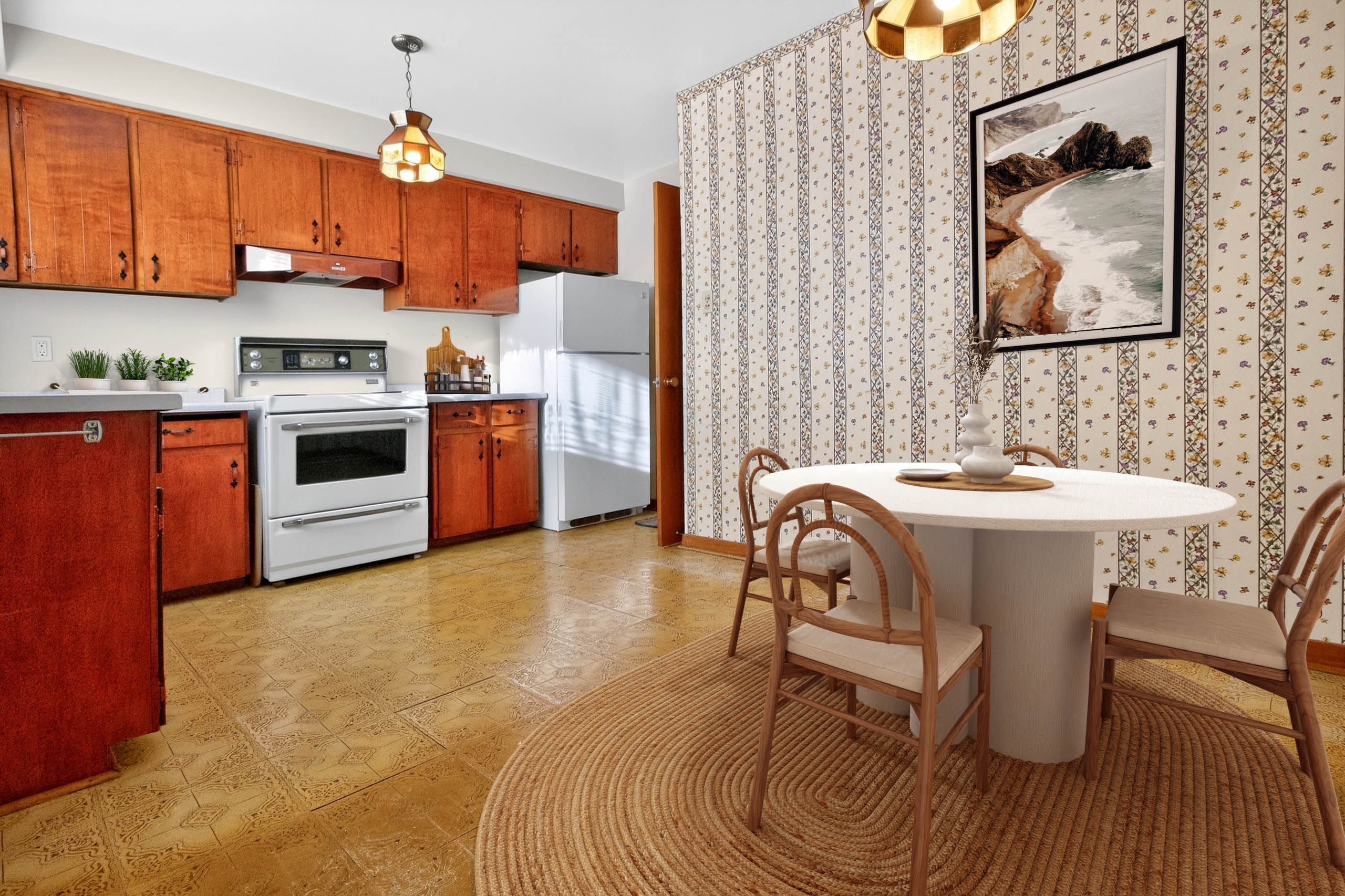 • Bright open-concept bungalow with a spacious eat-in kitchen.